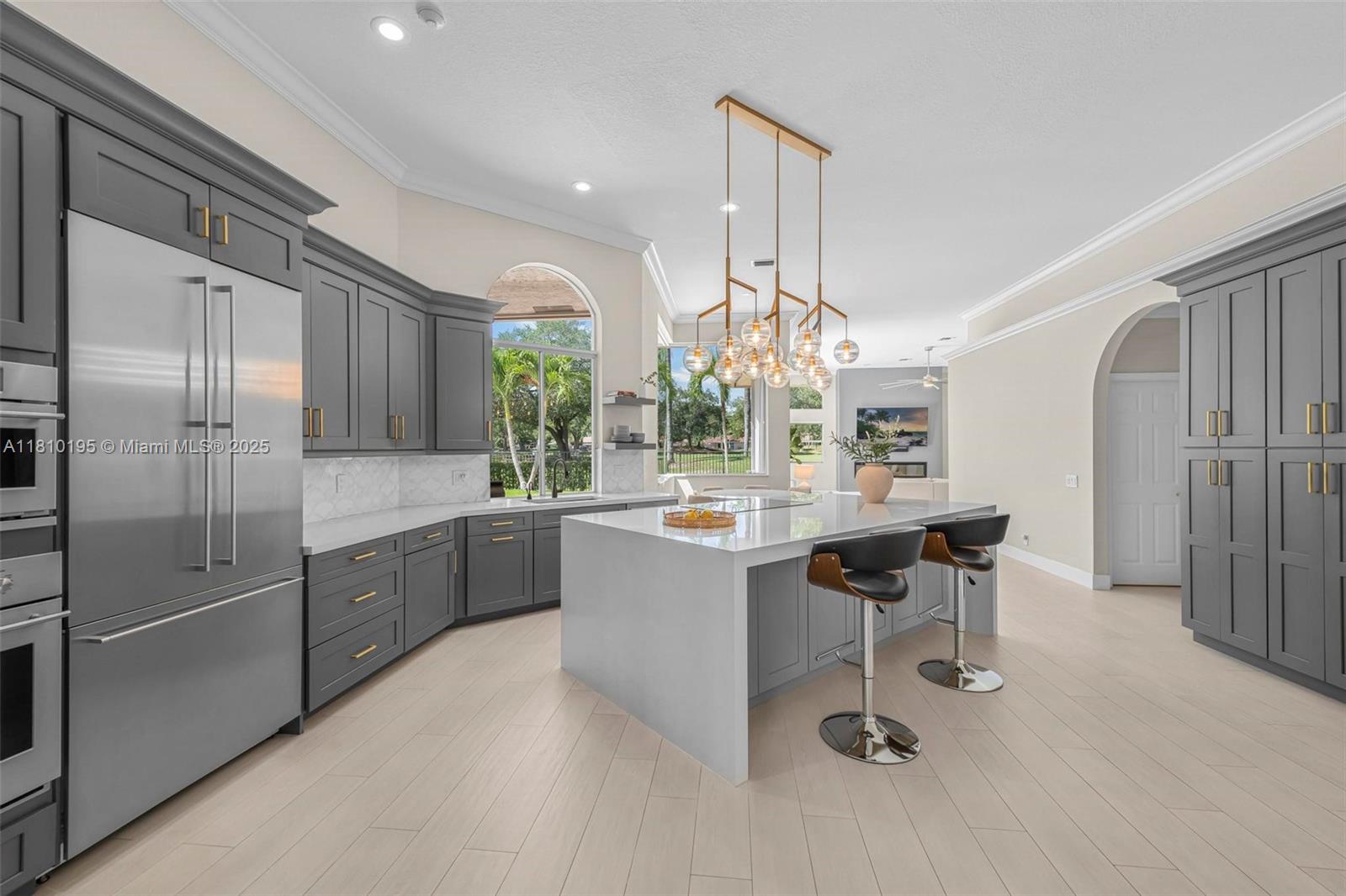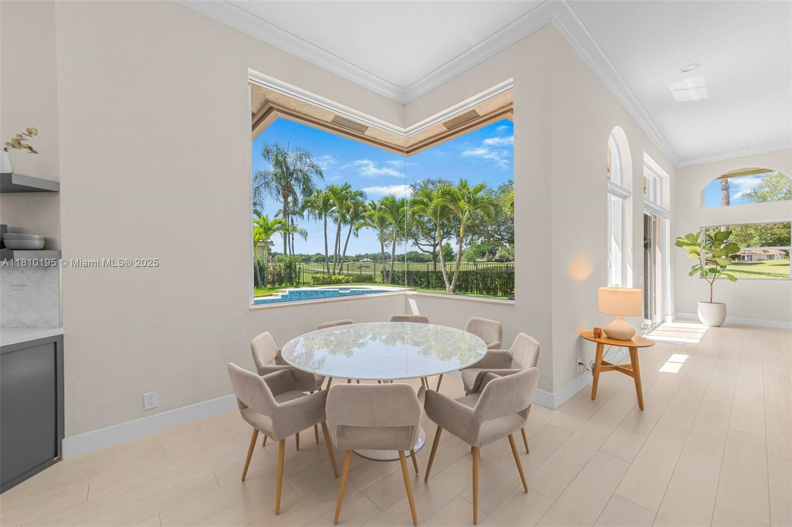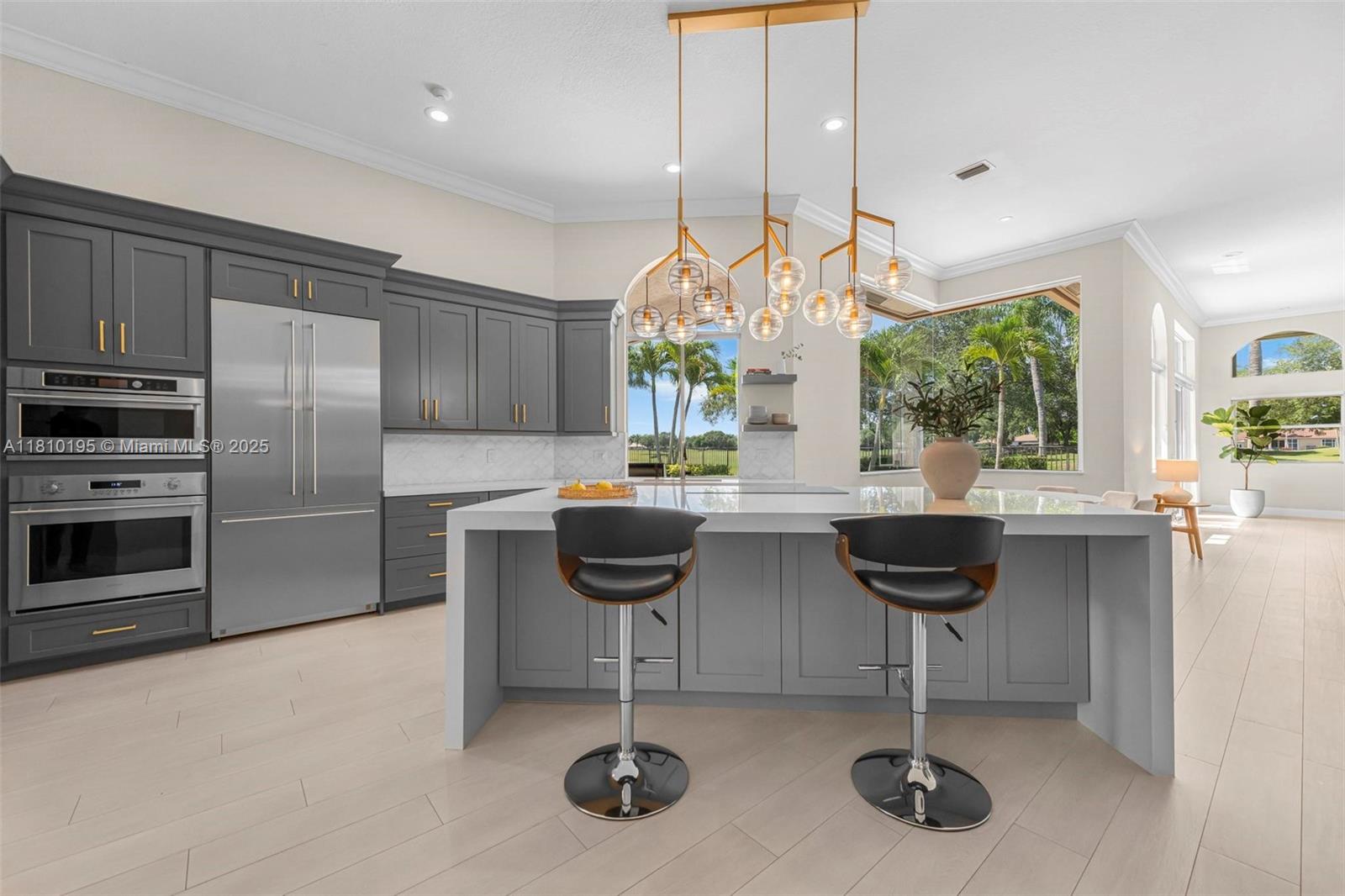 Luxury living awaits in this stunning one-story pool home on the golf course in Weston Hills Country Club. Featuring a brand new roof and 2-zone WiFi A/C, this home offers both style and peace of mind. Relax and enjoy the resurfaced pool & spa with an amazing salt water system and tranquil golf course views! The custom kitchen is truly a centerpiece and boasts quartz countertops, waterfall island, and premium Monogram & Gaggenau appliances. Enjoy expansive living spaces highlighted by updated flooring, a modern fireplace wall + freshly painted interior/exterior. The split 5-bedroom plan includes one room used as an office. The open layout boast natural lighting and space and is ideal for entertaining. 3-car garage! Excellent location with top-rated schools complete this exceptional home!