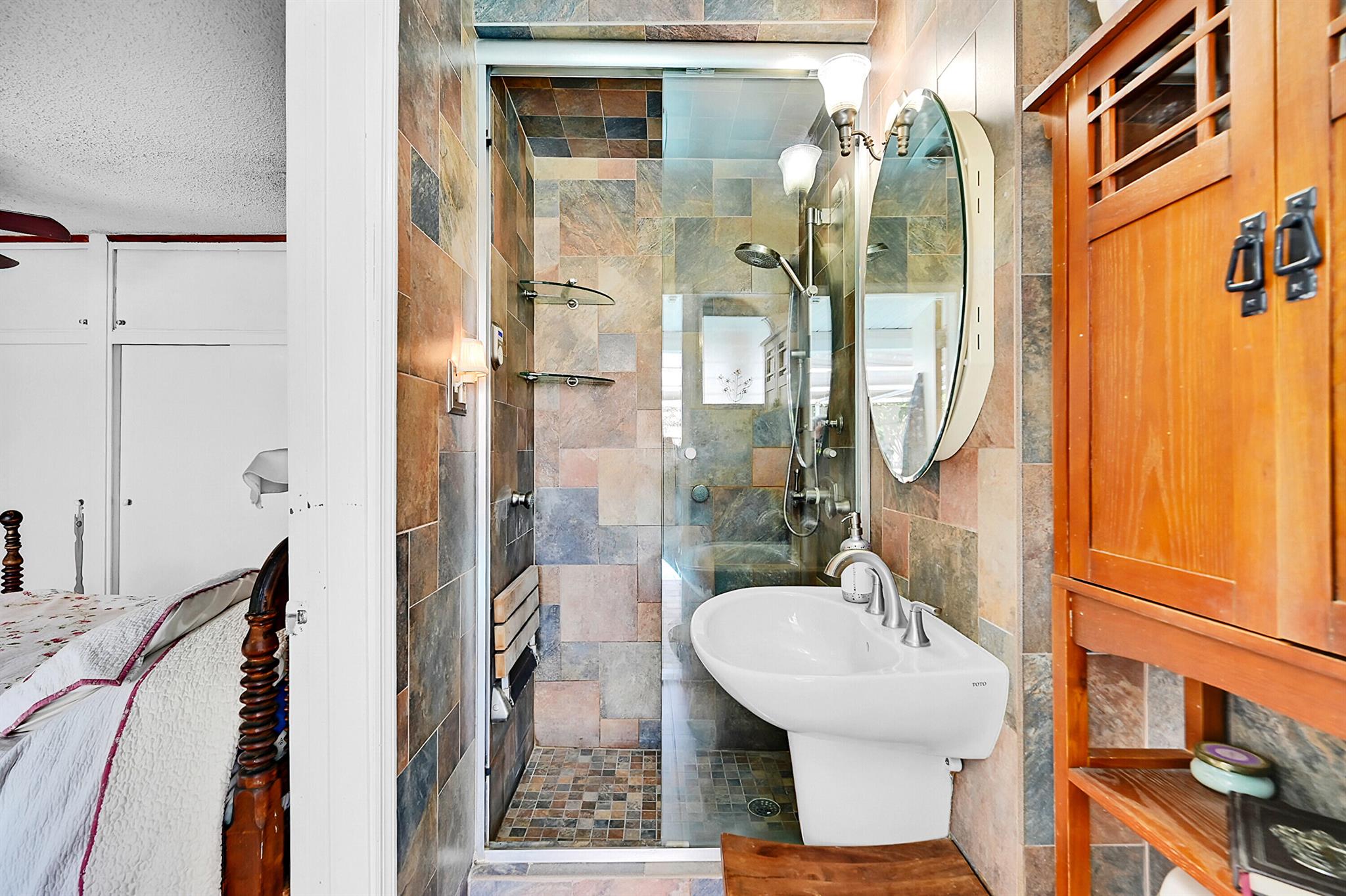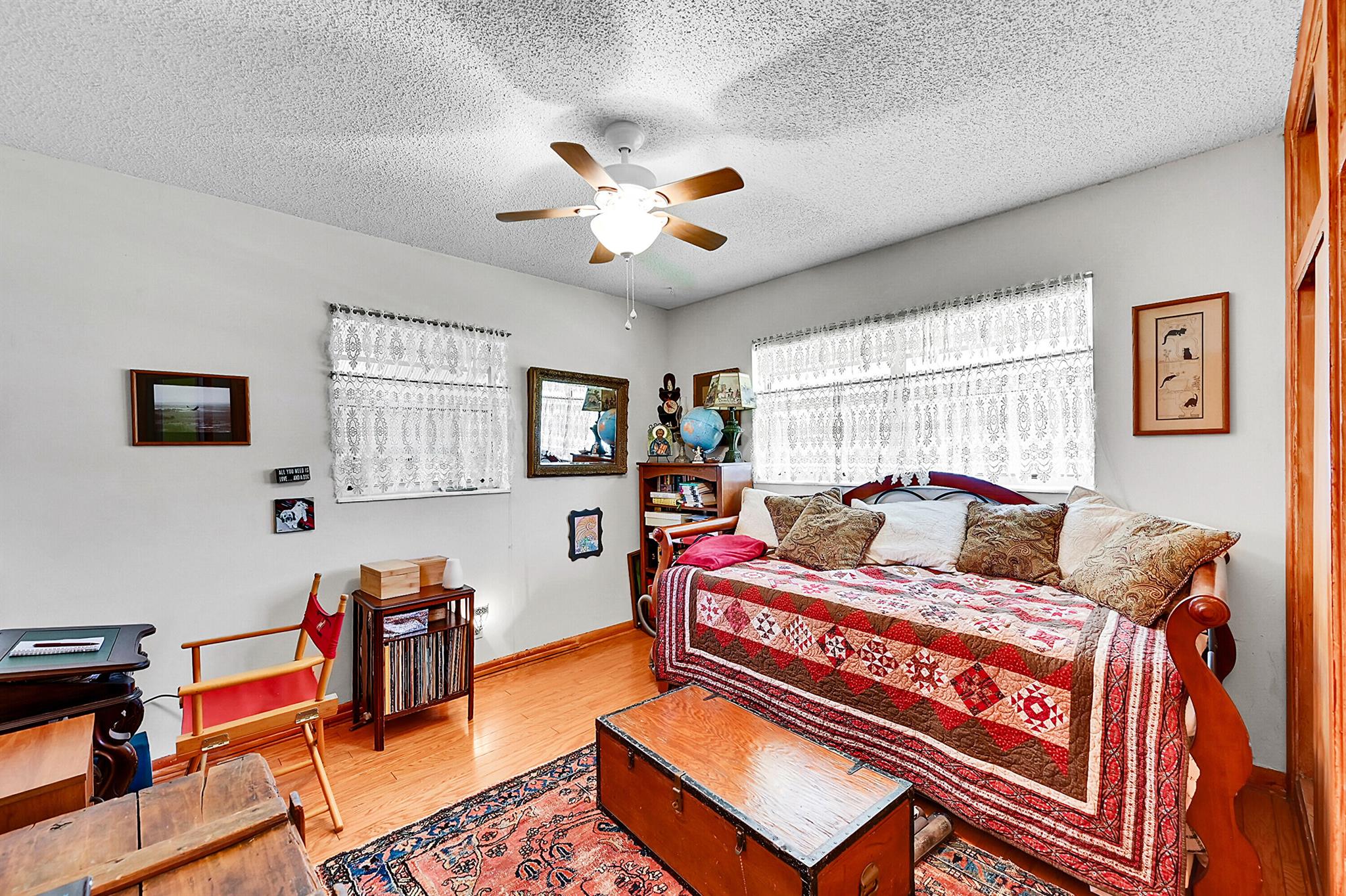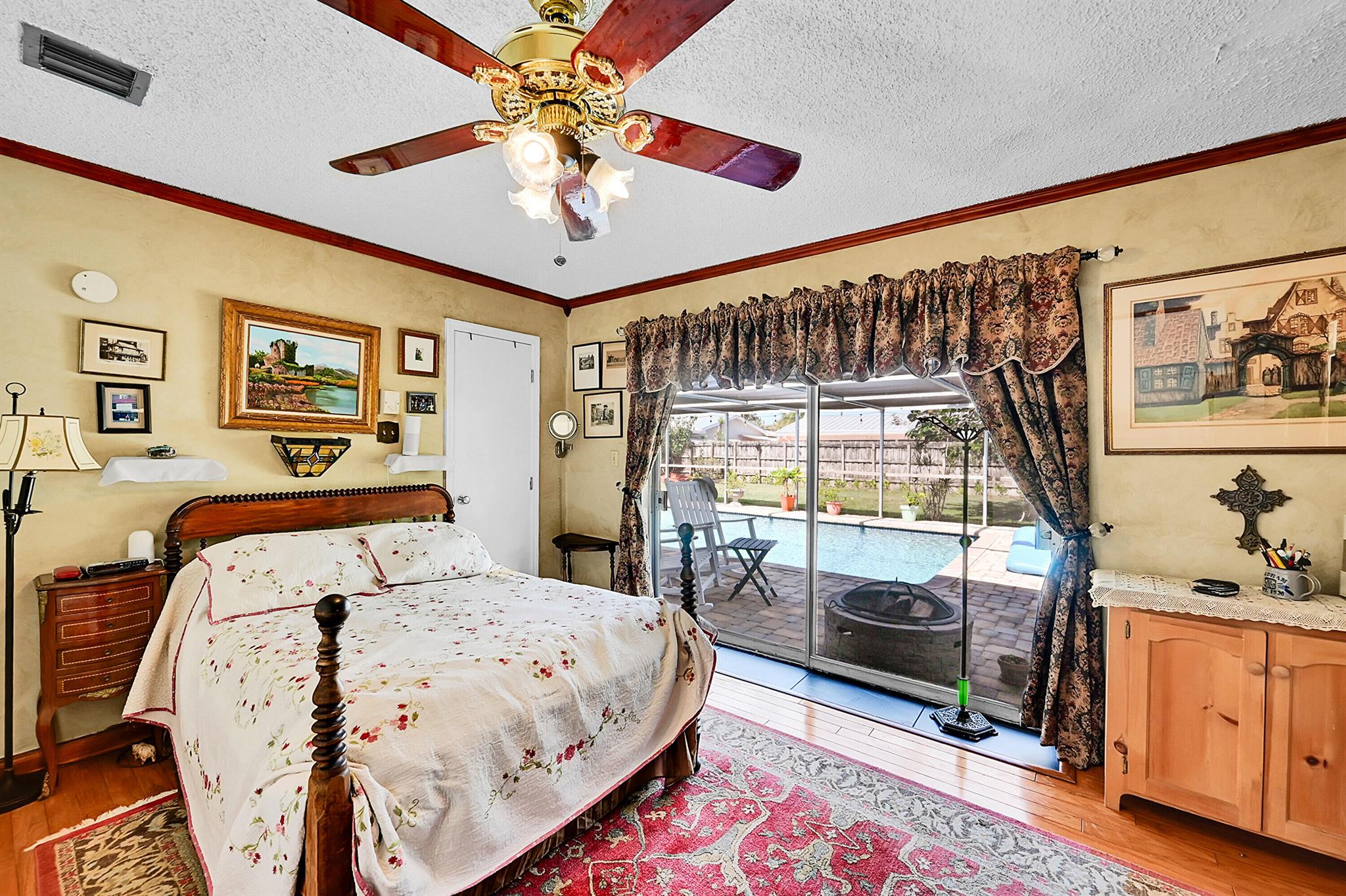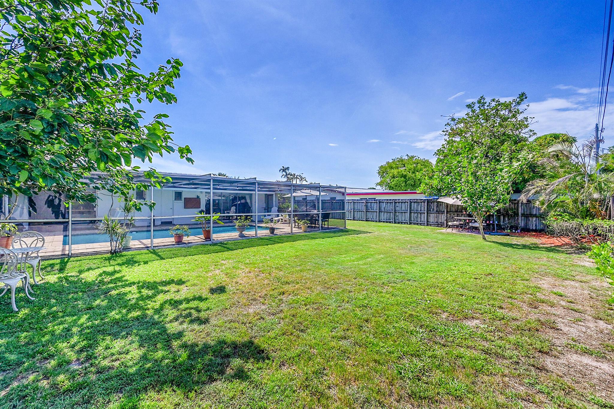 Discover this charming 3 bedroom 2 bathroom home in the sought-after East Deerfield neighborhood. Also, an additional music room which can be used as an office or additional sleeping quarters. This move-in-ready well maintained residence showcases numerous upgrades, including hard surface flooring throughout, kitchen w/gas cooking, updated bathrooms with steam shower and footed tub. Enjoy your morning coffee on the white picket fenced front porch that will also welcome your friends and family to your home. Enjoy peace of mind with full hurricane shutter protection, concrete roof and Plaster walls. The home features a heated screened pool with paver patio and an over-sized backyard. Conveniently located just minutes to the beach, restaurants & shopping. No HOA or Rental Restrictions