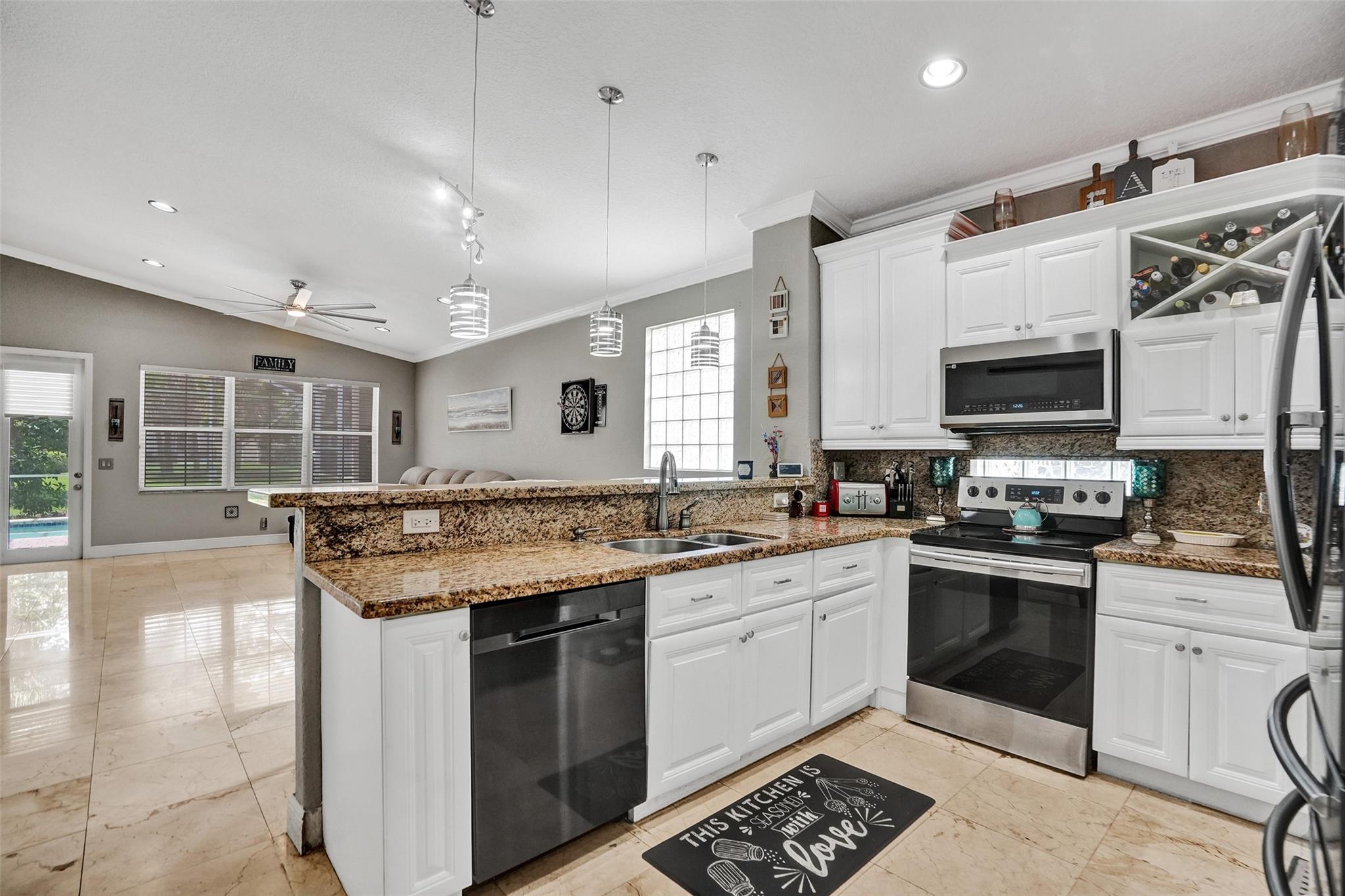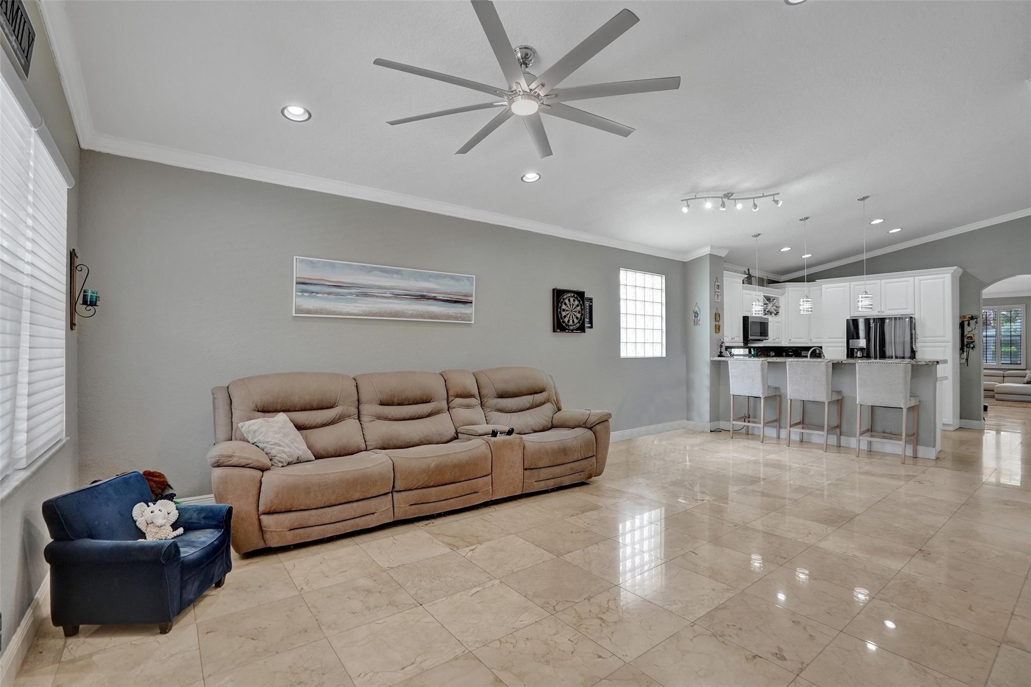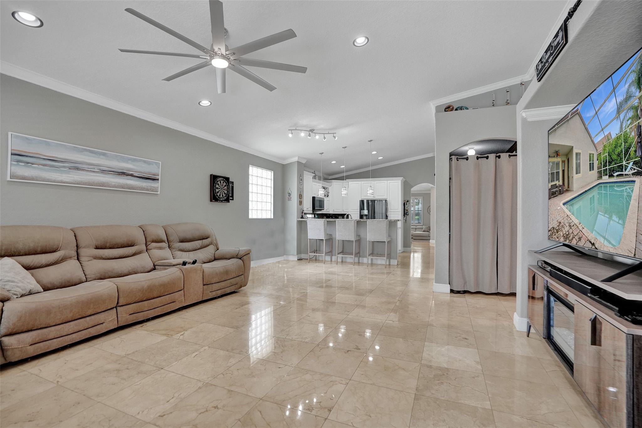 Coral Shores Perfection, Poolside Views & Polished Living. This 4-bedroom 2-bath residence offers a spacious, single-story layout featuring marble floors, rich wood bedroom finishes, and a private bonus office ideal for remote work. The chef-inspired kitchen boasts granite countertops, wood cabinetry, stainless steel appliances, and a generous walk-in pantry. Vaulted ceilings, custom closets, and a dedicated laundry room add to the home’s elevated feel. Enjoy serene lake views from the screened-in patio with a private pool, perfect for entertaining. A gated and safe community adds peace of mind. Nestled near top-rated schools and just minutes from the Sawgrass Expressway and major highways, this home is the total package of style, comfort, and convenience.
