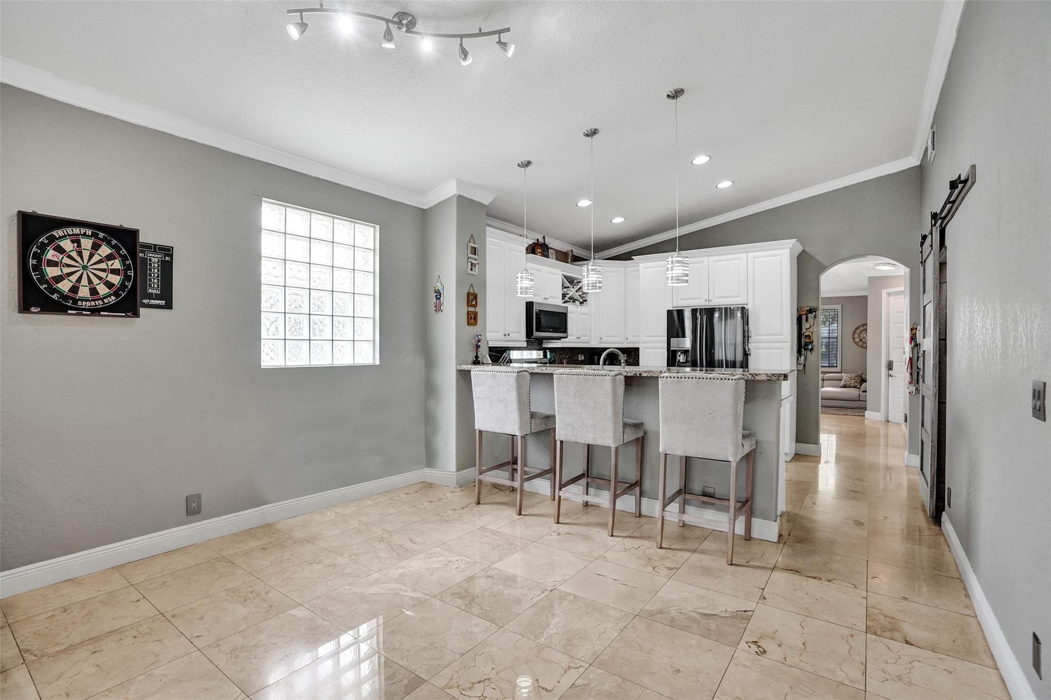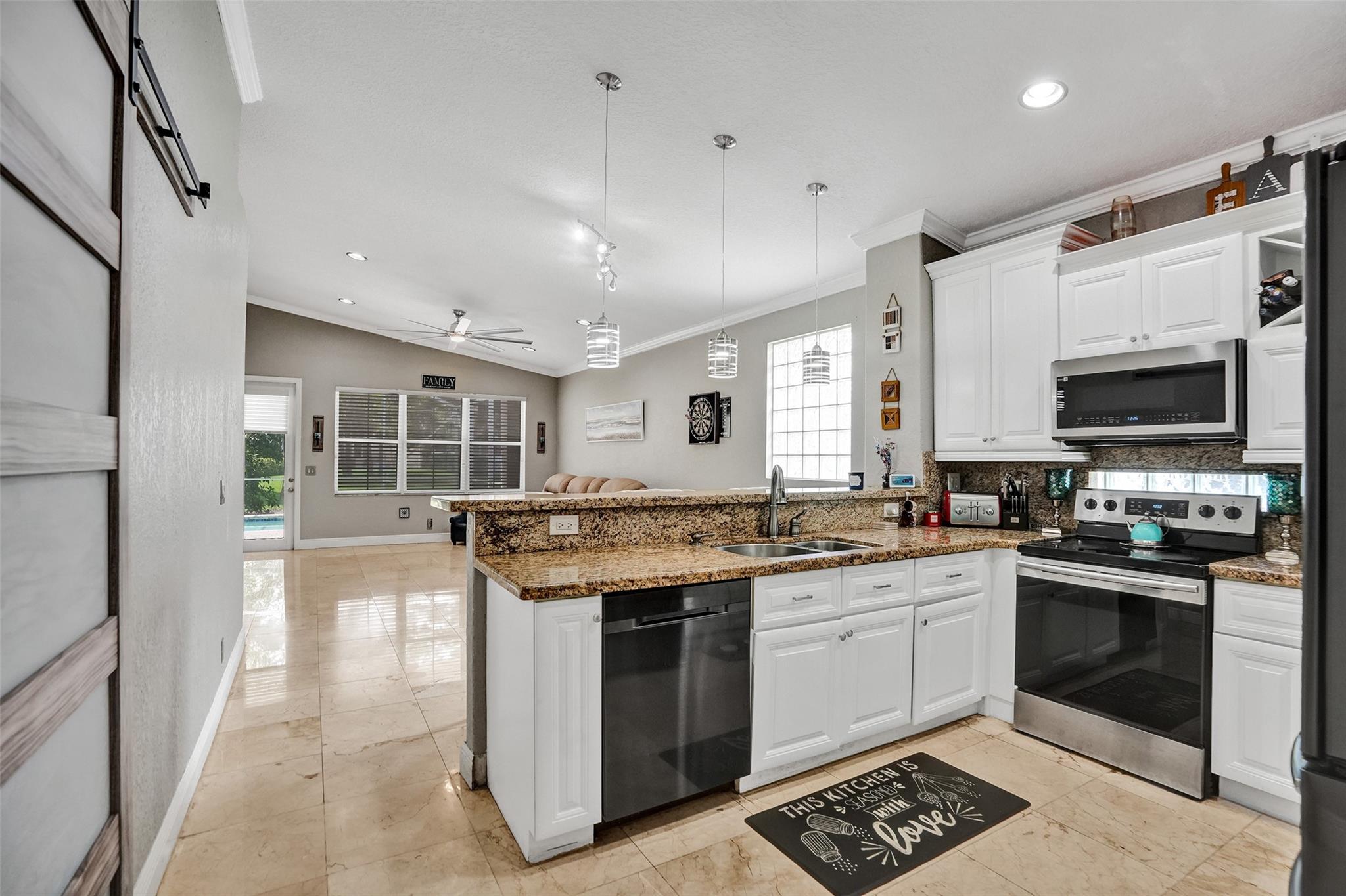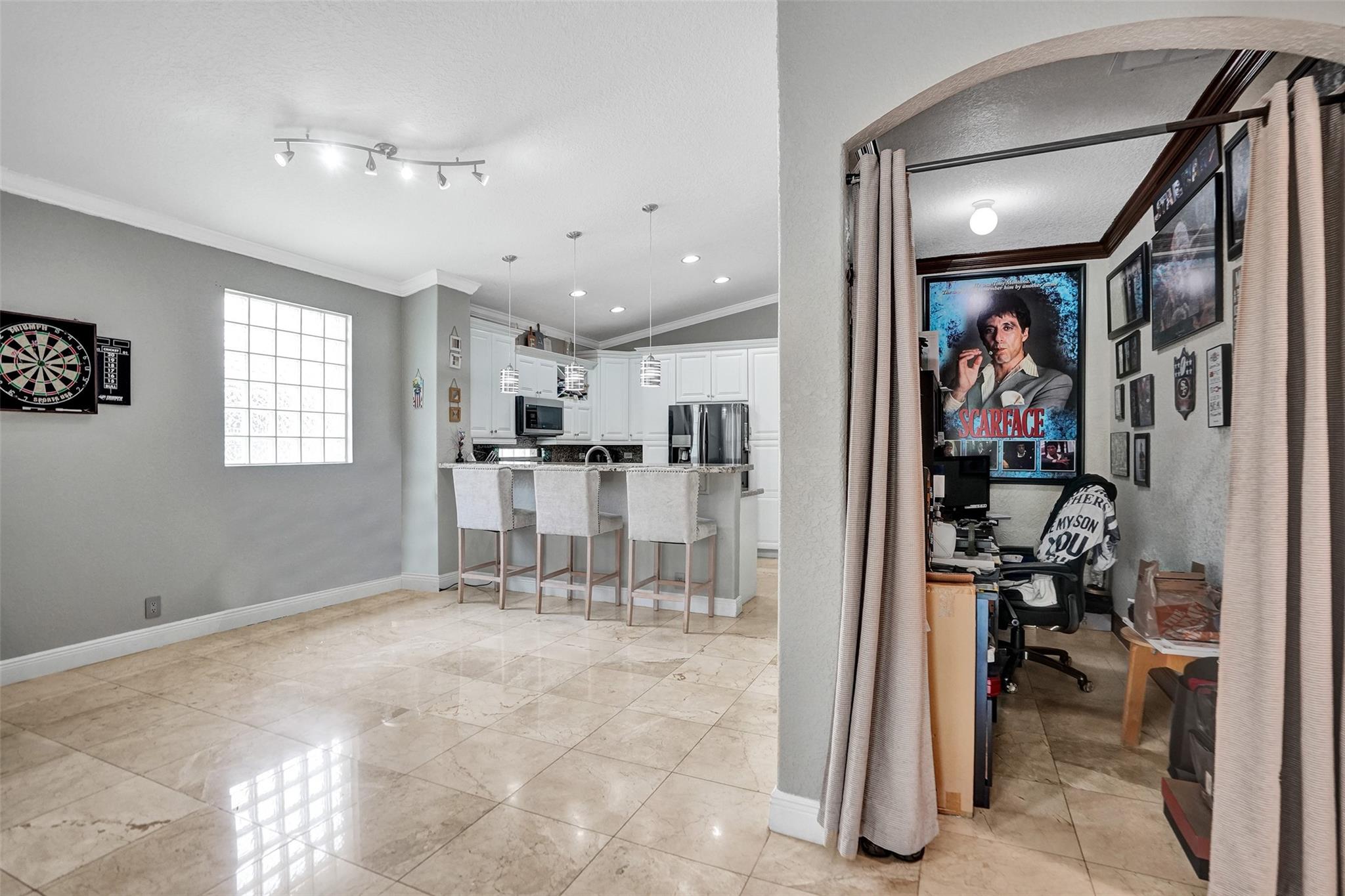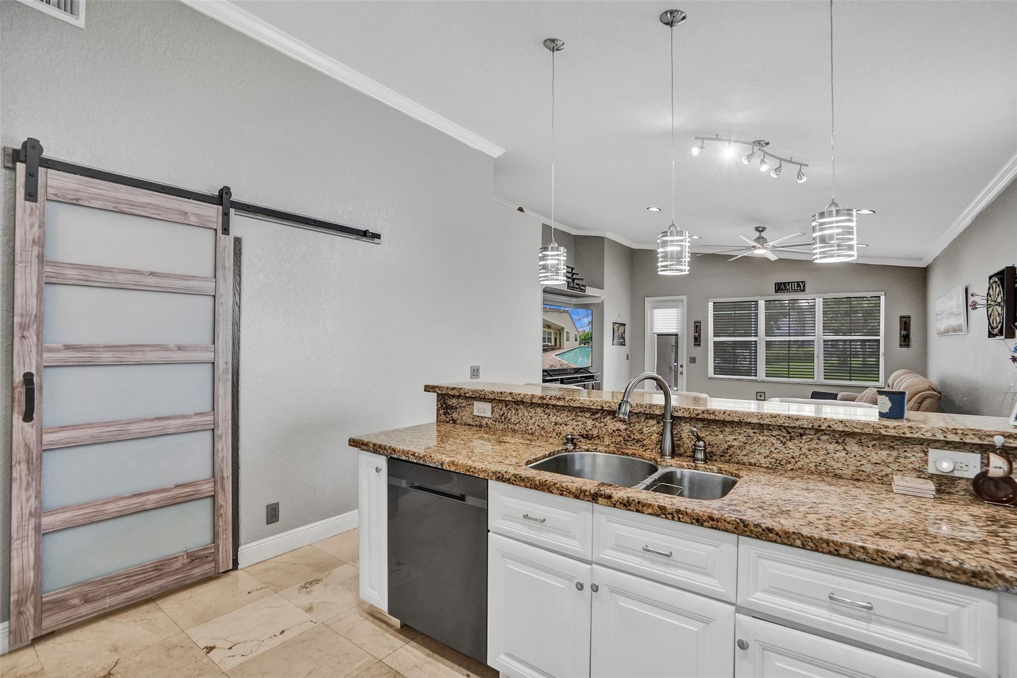 Coral Shores Perfection, Poolside Views & Polished Living. This 4-bedroom 2-bath residence offers a spacious, single-story layout featuring marble floors, rich wood bedroom finishes, and a private bonus office ideal for remote work. The chef-inspired kitchen boasts granite countertops, wood cabinetry, stainless steel appliances, and a generous walk-in pantry. Vaulted ceilings, custom closets, and a dedicated laundry room add to the home’s elevated feel. Enjoy serene lake views from the screened-in patio with a private pool, perfect for entertaining. A gated and safe community adds peace of mind. Nestled near top-rated schools and just minutes from the Sawgrass Expressway and major highways, this home is the total package of style, comfort, and convenience.