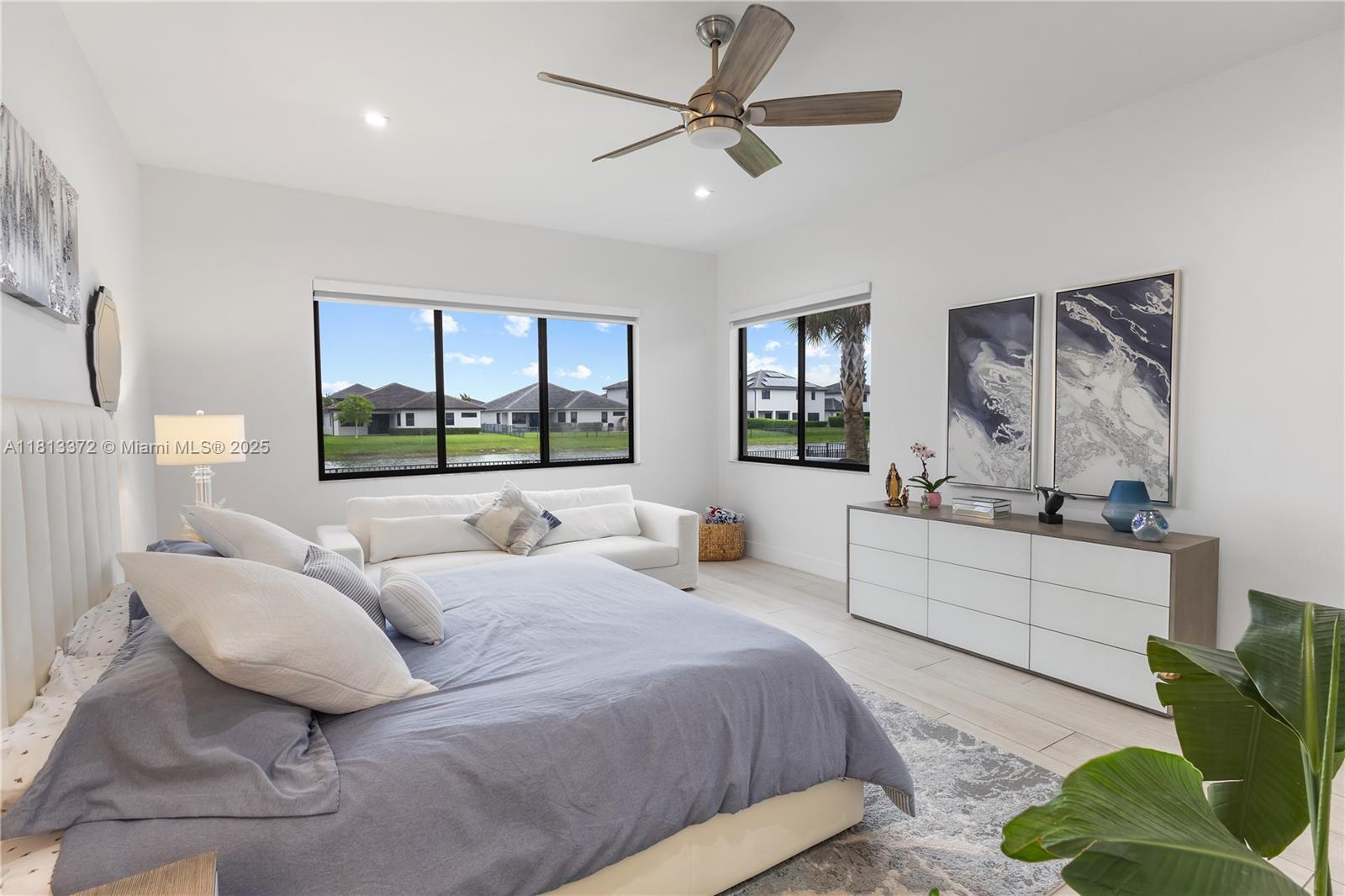 Experience luxury living in this impeccable 5BD/4BA lakefront home in Marbella, built by CC Homes on a 9,100 SF lot. Over $200K in upgrades: impact windows/doors, steel staircase, upgraded showers, wet bar, quartz countertops, and built-in summer kitchen. Open floor plan with stunning lake views from the moment you walk in. Primary suite + guest/in-law room on 1st floor. Upstairs: 2 bedrooms with a Jack & Jill bath, full suite, loft, and wet bar. 10-ft ceilings, abundant natural light, 2 A/C units, tile & laminate floors, and professional landscaping. Spacious backyard ready for your dream pool and outdoor living. Gated community with clubhouse, gym, pool, playground, and easy access to major highways. Schedule your private tour today—start your next chapter here.