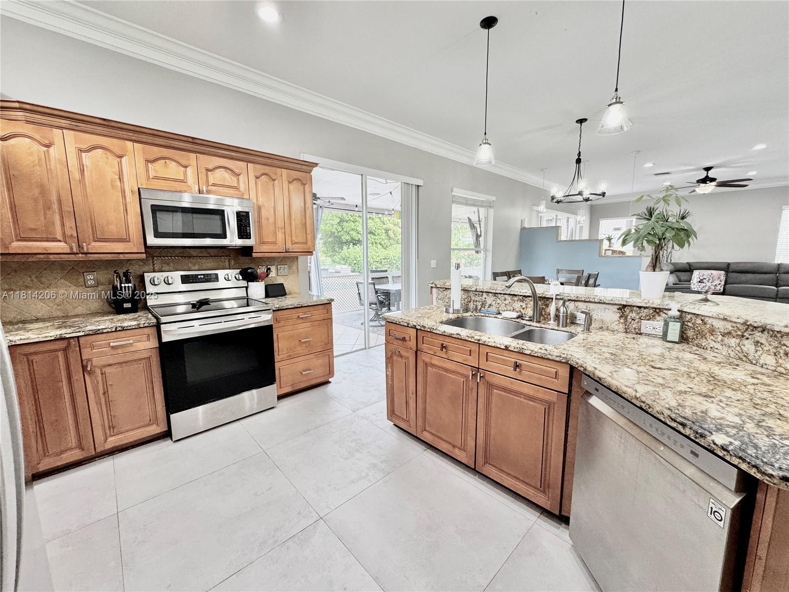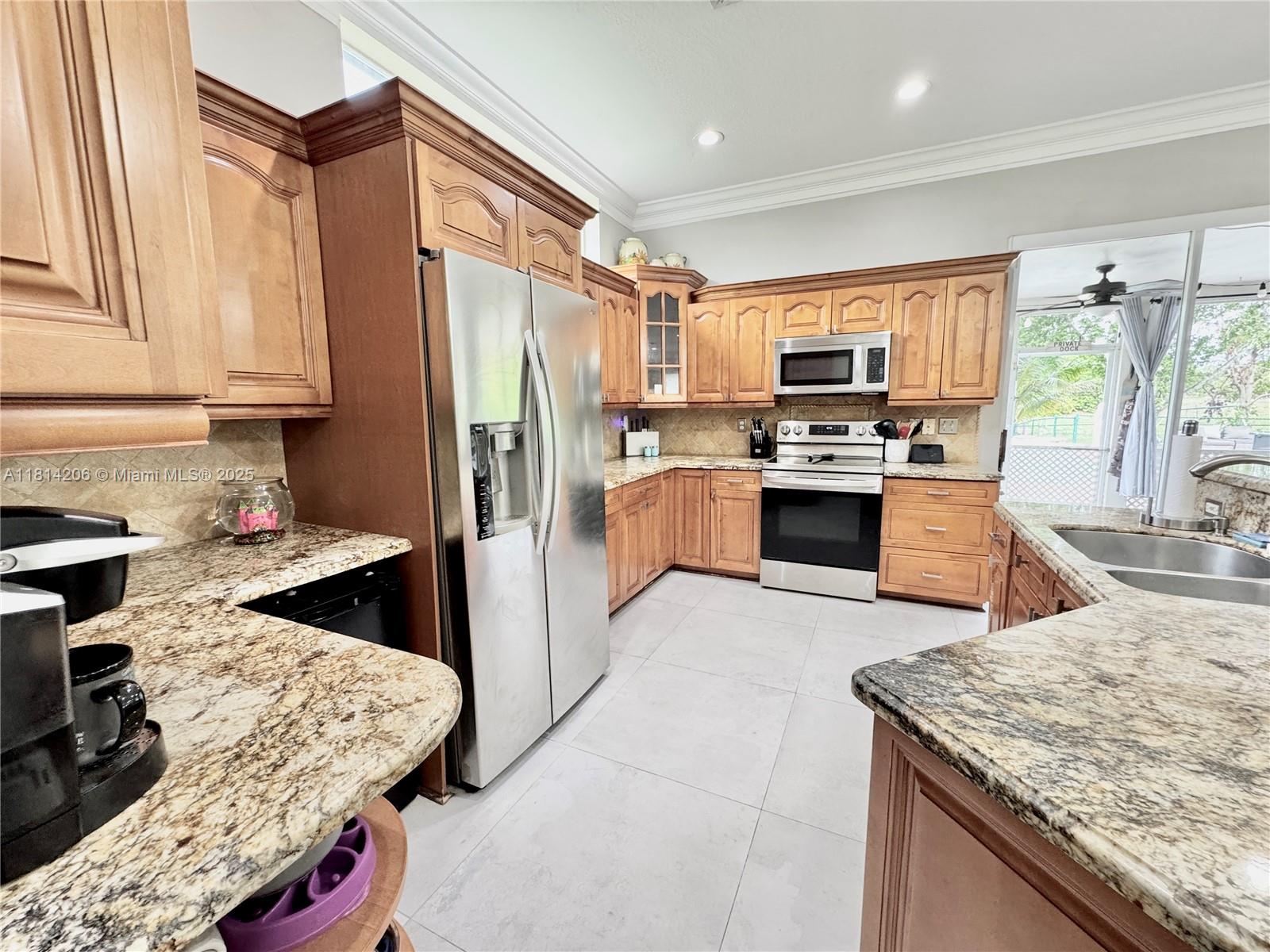 NO HOA! Stunning & Upgraded 5-Bedroom, 3.5-Bath Pool Home on a Quiet Cul-de-Sac This beautifully maintained home features a circular driveway, lush landscaping, and a huge fenced yard with scenic lake views and no rear neighbors. Enjoy an upgraded gourmet kitchen with granite countertops and a walk-in pantry. Interior highlights include extensive crown molding, tastefully upgraded bathrooms, and a spacious layout perfect for entertaining. Step outside to your paved pool patio with a partial screen enclosure. Your private retreat awaits. Located near top-rated schools, shopping, and dining.