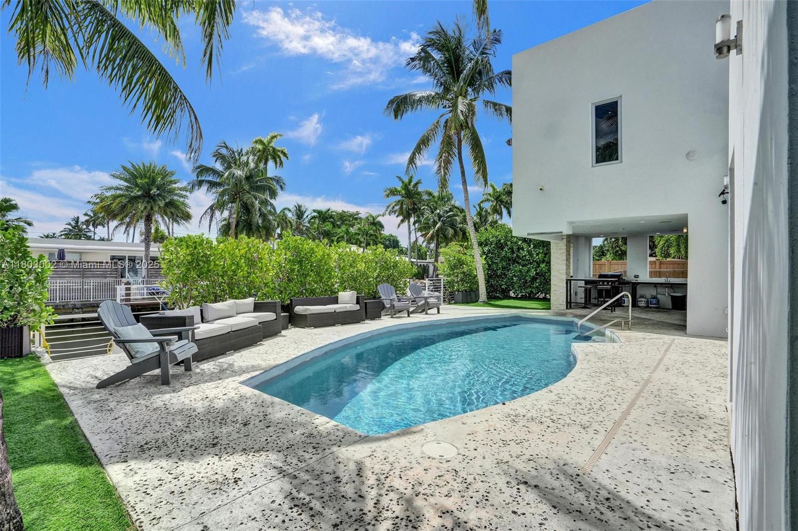 Experience luxury waterfront living in this stunning 6-bedroom, 5-bath home offering over 3,500 sqft built in 2015. Located on an ocean-access lot with no fixed bridges, this property boasts 65ft of water frontage with seawall—perfect for boating enthusiasts. The resort-style backyard is an entertainer’s dream, featuring a heated pool, lush landscaping, and ample space to relax or host guests. Inside, the home is beautifully appointed with spacious living areas and high-end finishes throughout. The kitchen is a Chef's Dream with high-end appliances, cabinetry, & counter tops. Home can be offered fully furnished as well, making it ideal as a primary residence, vacation home, or income-producing property. This home truly has it all!