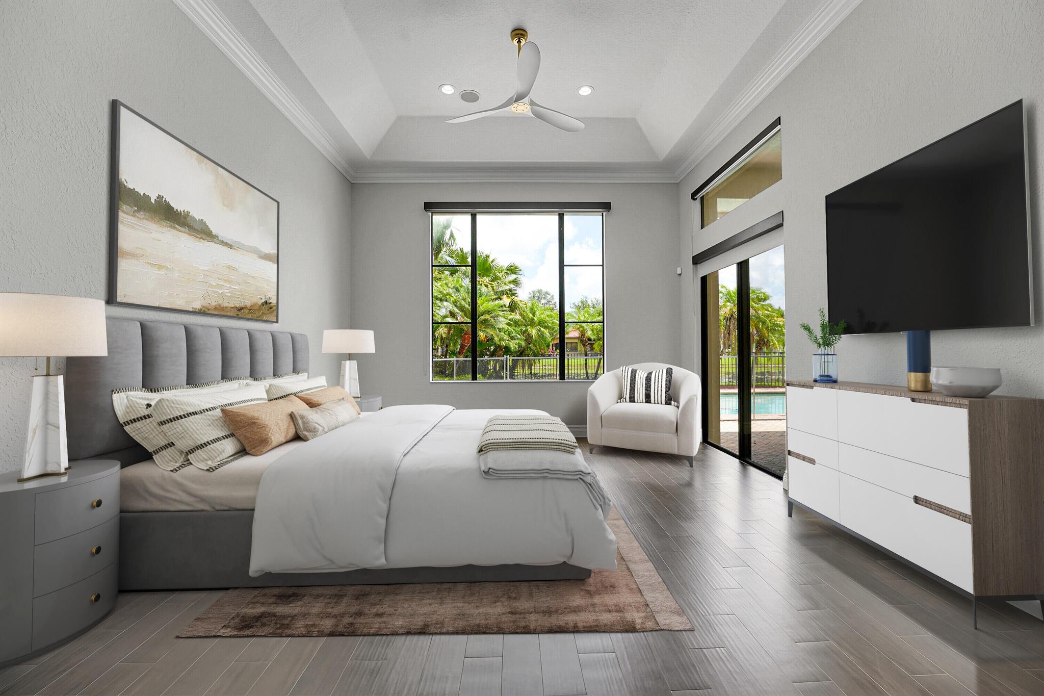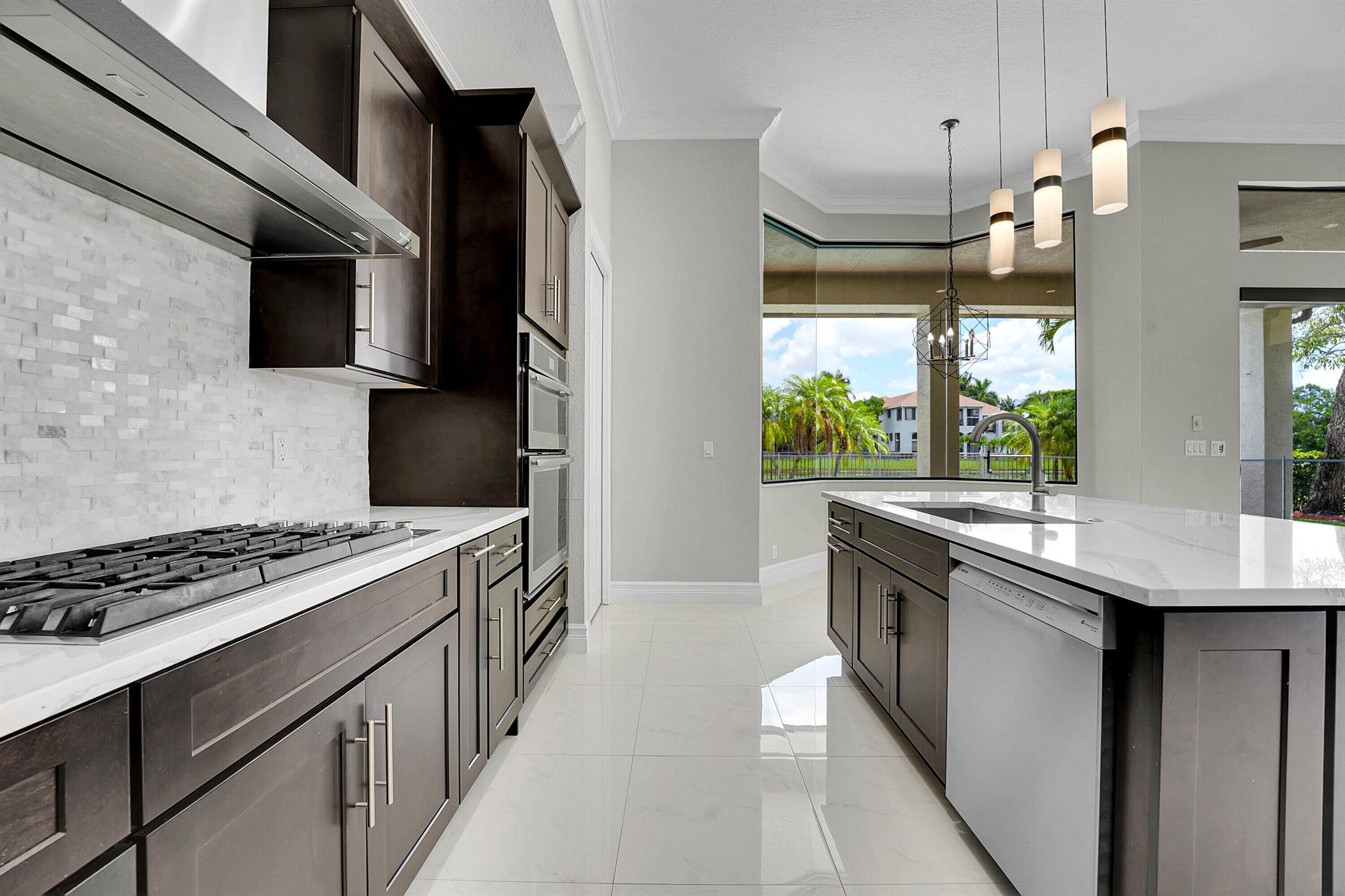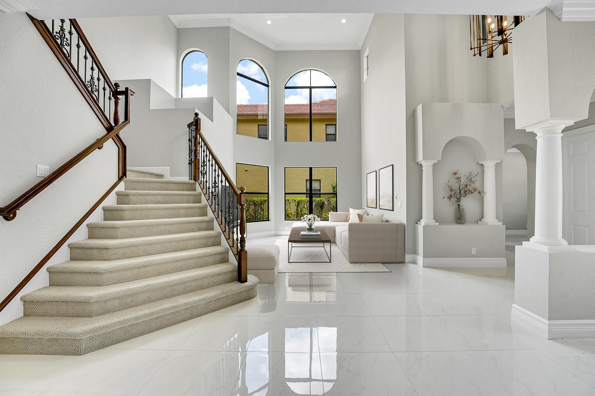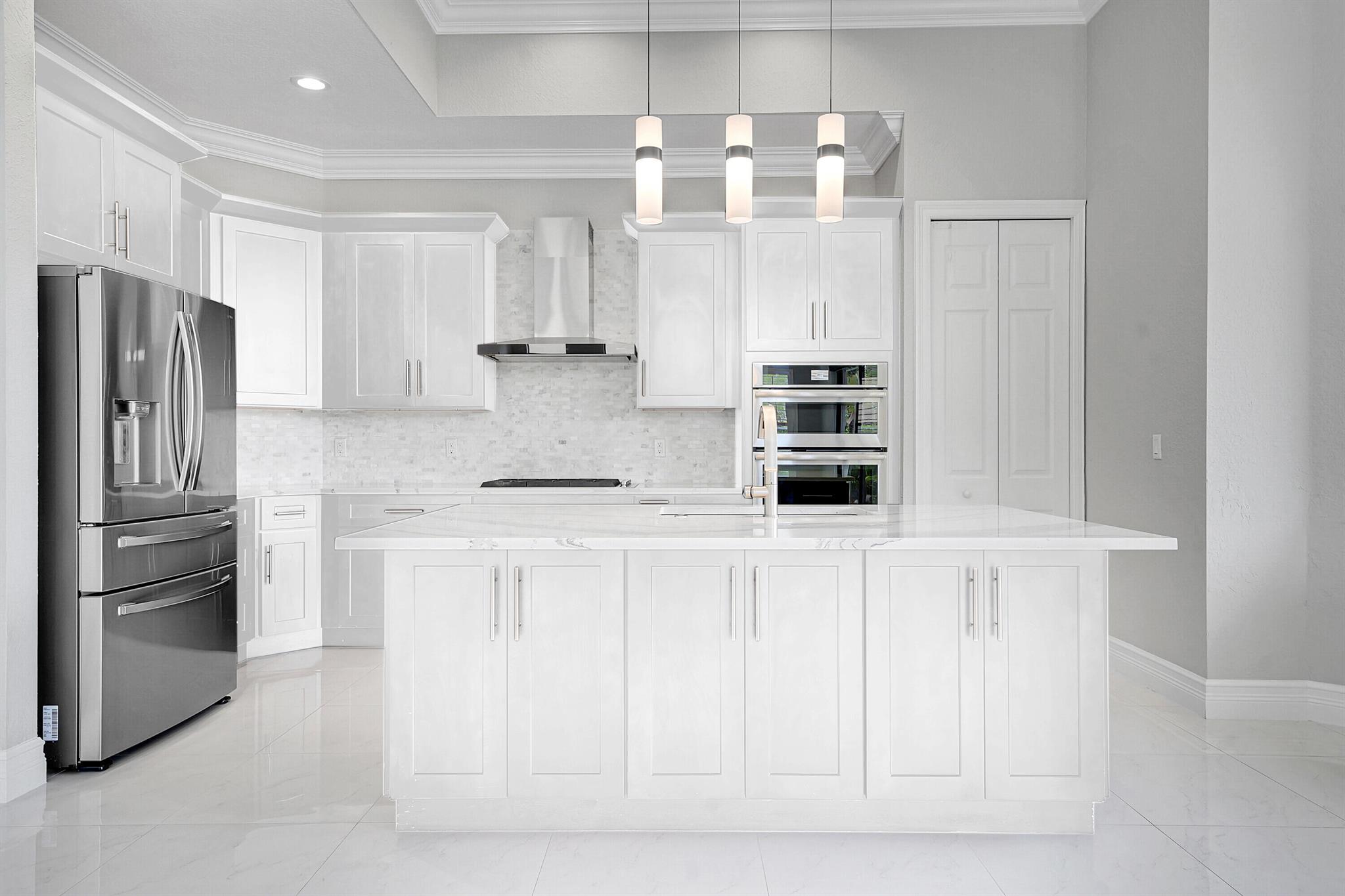 Step into timeless elegance with this meticulously maintained 5-bedroom, 5.5 bath lake-view residence with a spacious loft, located in the prestigious gated community of Versailles in Wellington.This stunning home boasts extensive upgrades including a new roof (2024), exterior repaint (2025), and a permitted renovation (2018) featuring Cambria quartz countertops, a marble backsplash, and premium appliances such as a new Samsung refrigerator, Jenn-Air oven/microwave combo, Bosch kitchen hood, and dishwasher. The open-concept kitchen centers around a large custom islanda"perfect for entertaining.