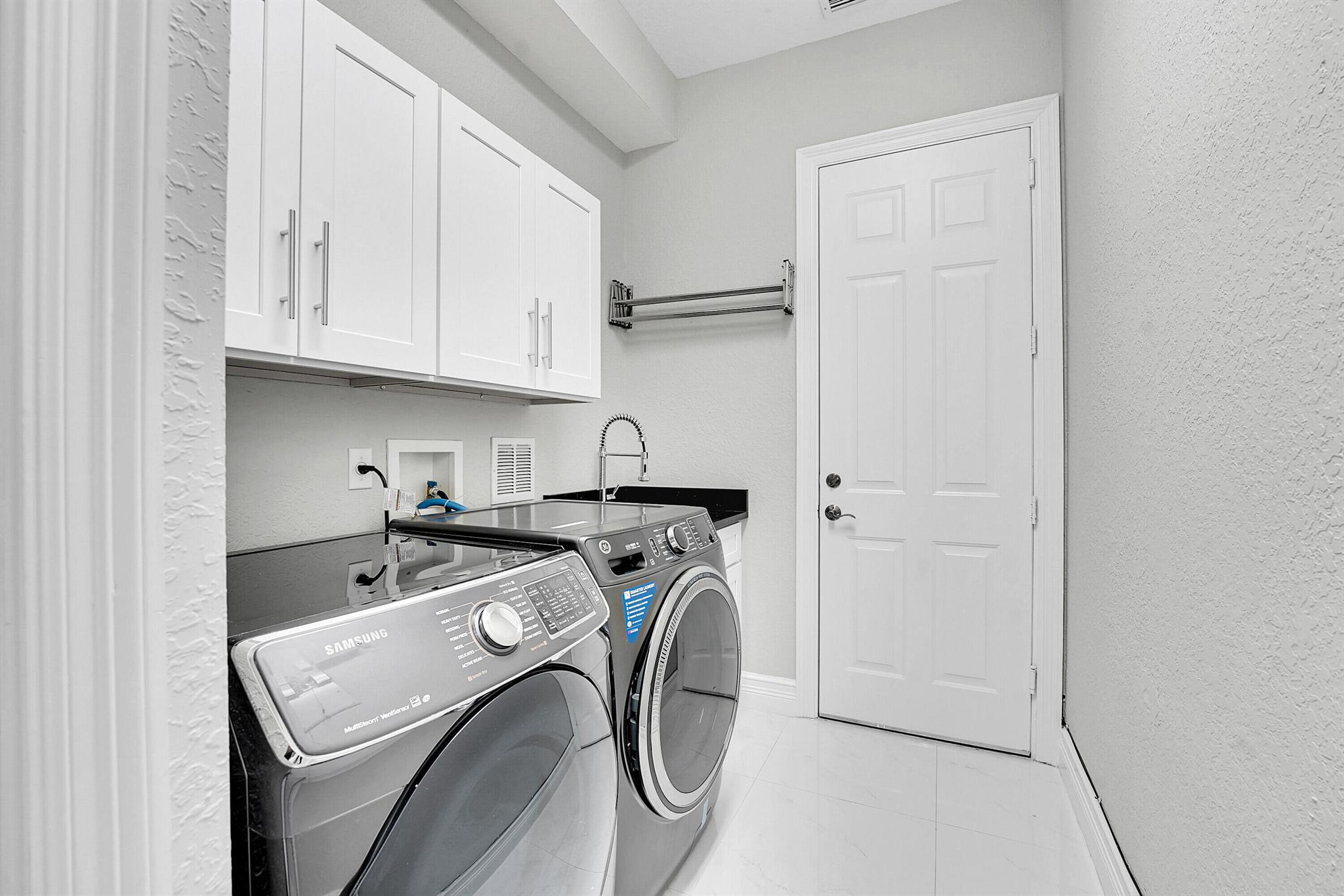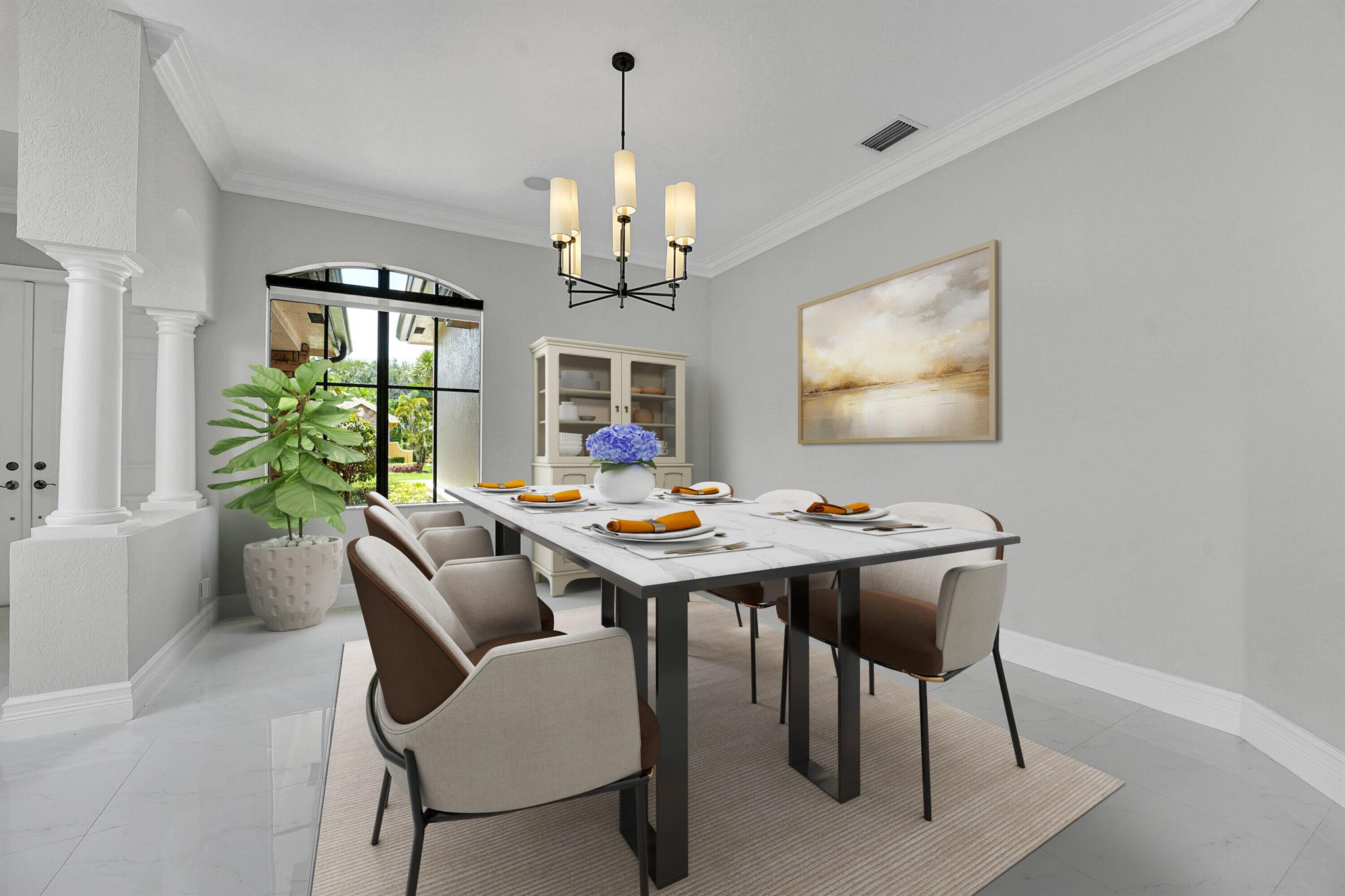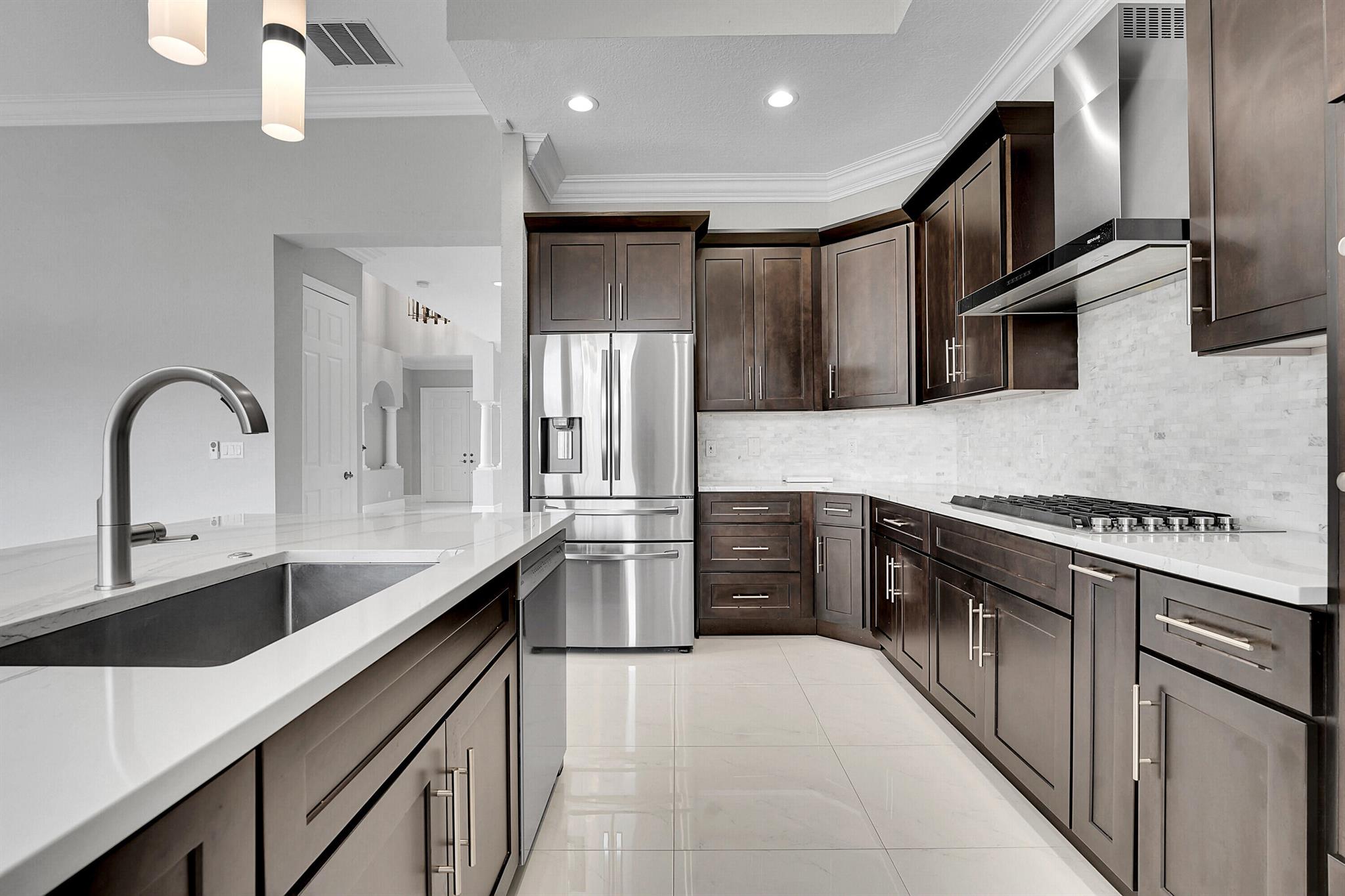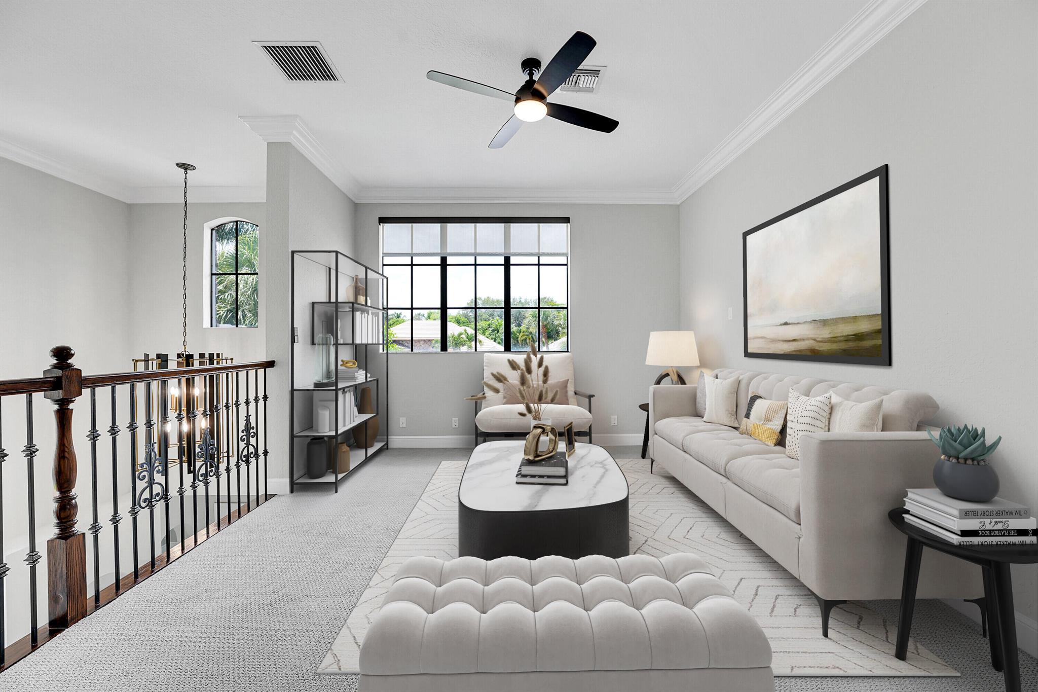 Step into timeless elegance with this meticulously maintained 5-bedroom, 5.5 bath lake-view residence with a spacious loft, located in the prestigious gated community of Versailles in Wellington.This stunning home boasts extensive upgrades including a new roof (2024), exterior repaint (2025), and a permitted renovation (2018) featuring Cambria quartz countertops, a marble backsplash, and premium appliances such as a new Samsung refrigerator, Jenn-Air oven/microwave combo, Bosch kitchen hood, and dishwasher. The open-concept kitchen centers around a large custom islanda"perfect for entertaining.