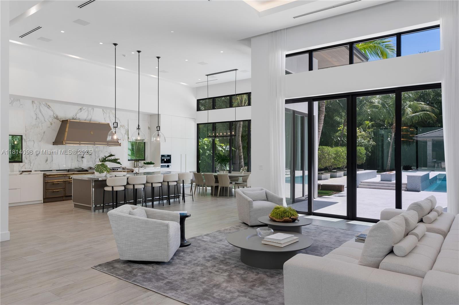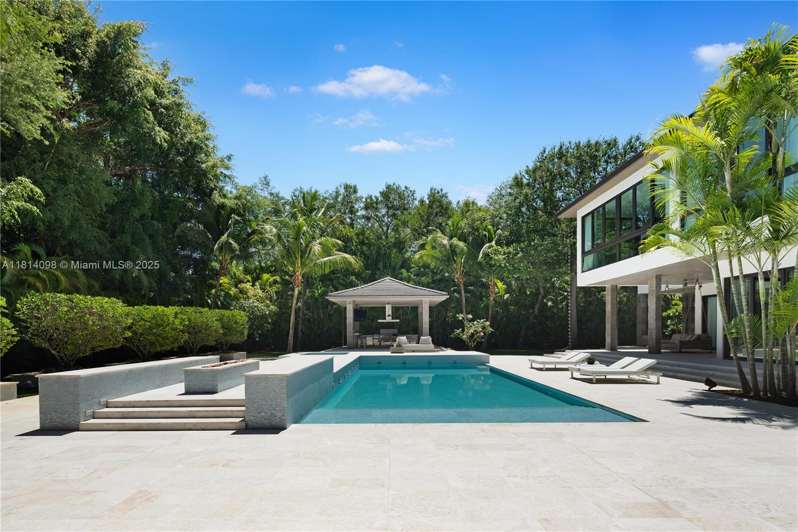 Custom N. Pinecrest 2019 build, that exudes modern style, family functionality and a lounge that is sure to impress any sports enthusiast. Sitting on an acre+, drive thru the gated entry and be greeted to fire and water features. Stunning open floor plan that showcases the Officine Gullo kitchen, walk-in pantry and wall-to-wall glass to overlook your own tropical paradise backyard. Pool/Spa and covered terraces with summer kitchen. 4 Bedrooms upstairs, each connecting to its own sitting area on the first level. Luxe primary suite w/boutique closet, spa bath, floating tub, and 16-ft shower. Home theatre with comfy recliners and wet bar, Sports Lounge with 9-screens and full bar, Elevator, maid’s ste, generator, 3-car gar. This home has it all, and is located near the top schools in Miami.