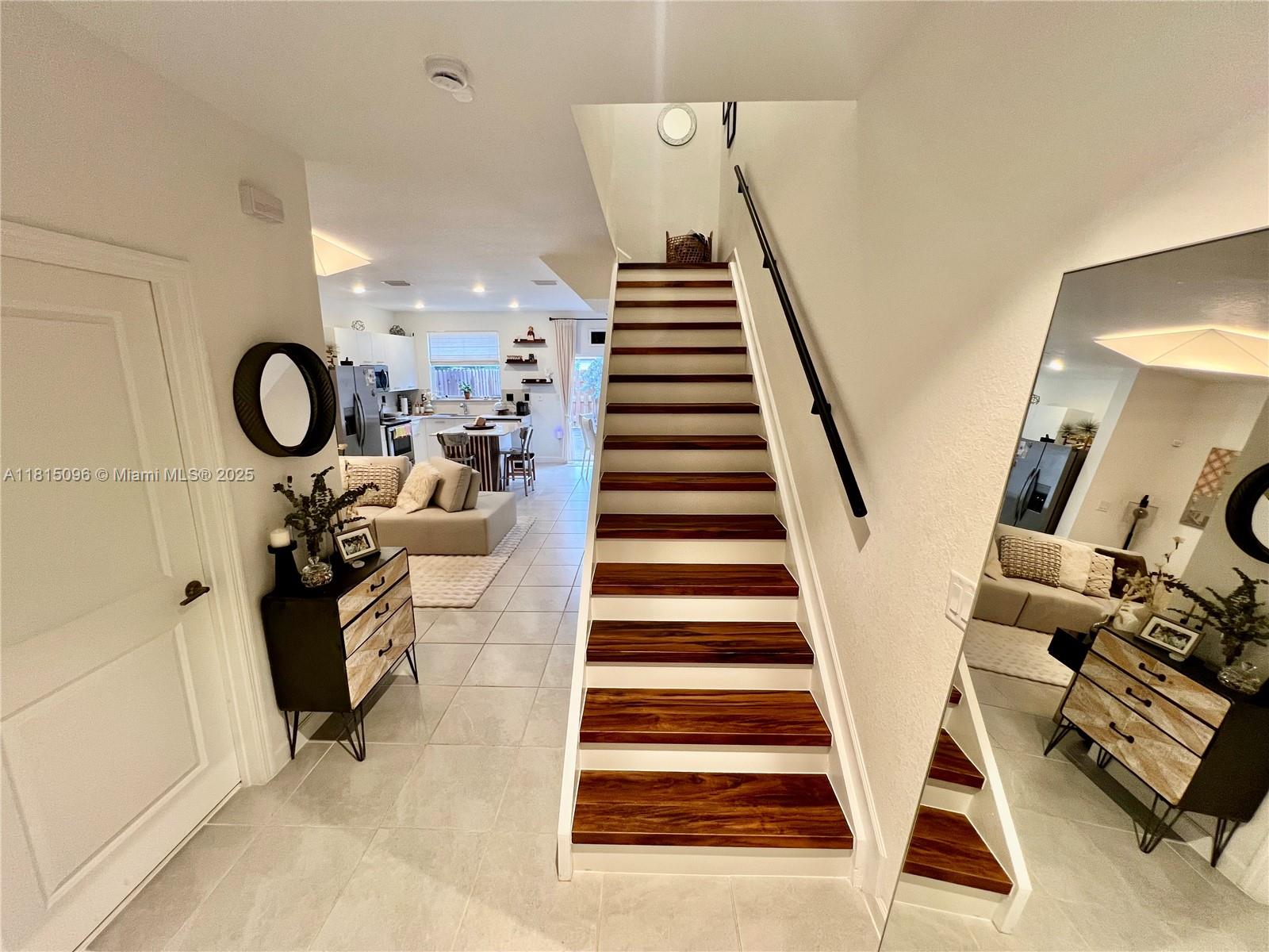 Beautiful 3 BD/3 BA townhouse in Westview ft. porcelain tile downstairs and waterproof laminate upstairs. The open-concept layout flows into a private backyard with an upgraded paver patio, ideal for relaxing or entertaining. The kitchen offers sleek stainless steel appliances and blends seamlessly with the living and dining areas. The spacious owner’s suite includes double sinks and a modern walk-in shower. Stylish porcelain tile finishes all bathrooms. Enjoy the convenience of an upstairs laundry area with washer and dryer included. Two assigned parking spaces are located directly in front of the home. With a low HOA and close proximity to shopping, schools, and major roadways, this home offers a perfect blend of comfort, style, and convenience. Furniture and accessories not included.