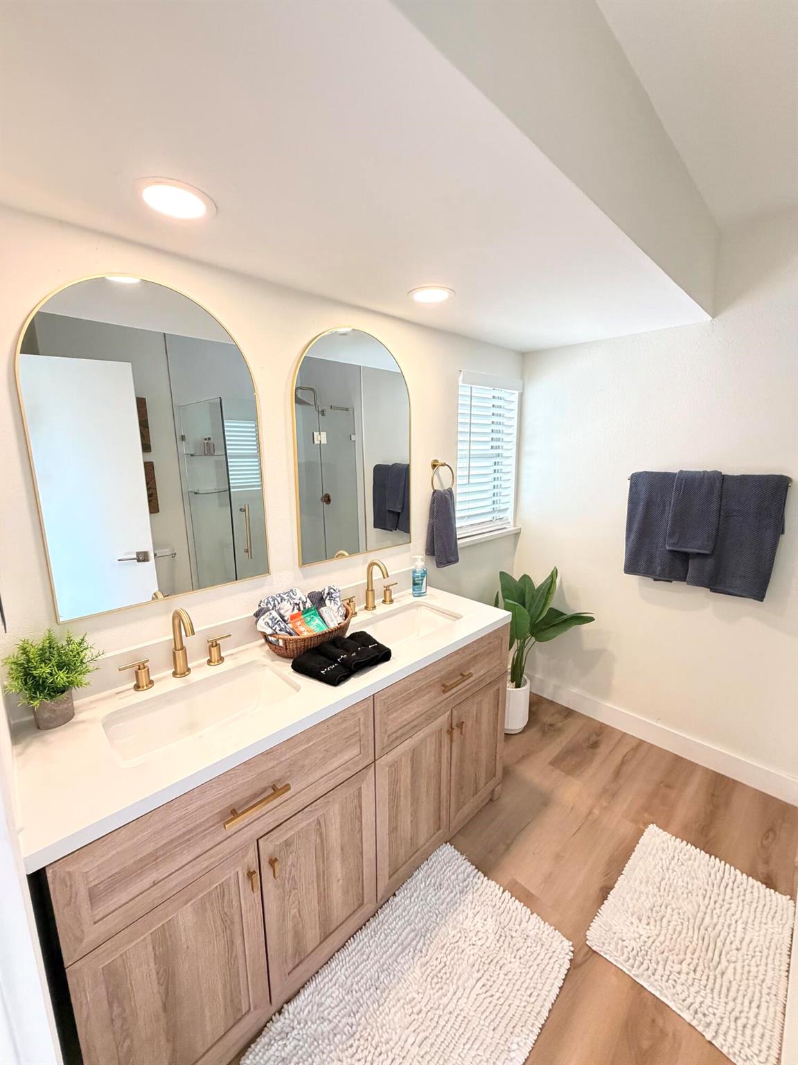 Welcome to this beautifully renovated 3-bedroom, 2-bathroom ,with a bonus room, that is perfectly positioned on an oversized corner. Step inside to find luxury vinyl flooring throughout, modern appliances, and a stylish kitchen featuring quartz countertops and a butcher block island--perfect for entertaining. The updated, natural stone fireplace adds warmth and charm to the spacious living area. Both bathrooms have been completely remodeled with spacious double vanities and contemporary finishes. Outside, enjoy your private backyard complete with an in ground pool, relaxing hot tub, and outdoor kitchen area. The home also includes a solar electric system for reduced electric bills! *This home is for sale or rent. *A recent appraisal has been done.