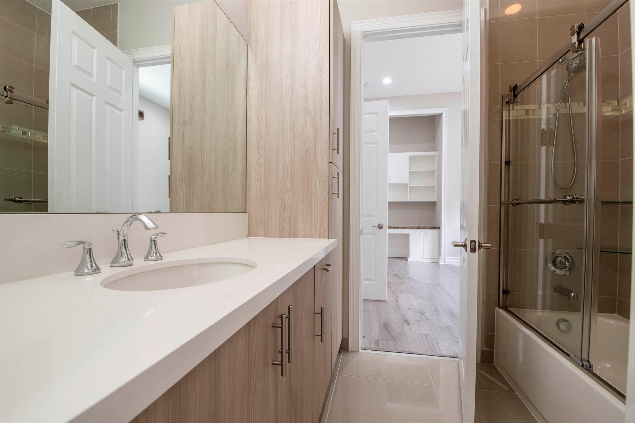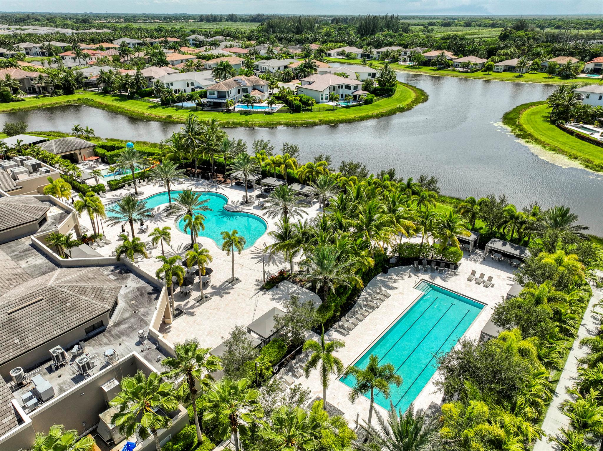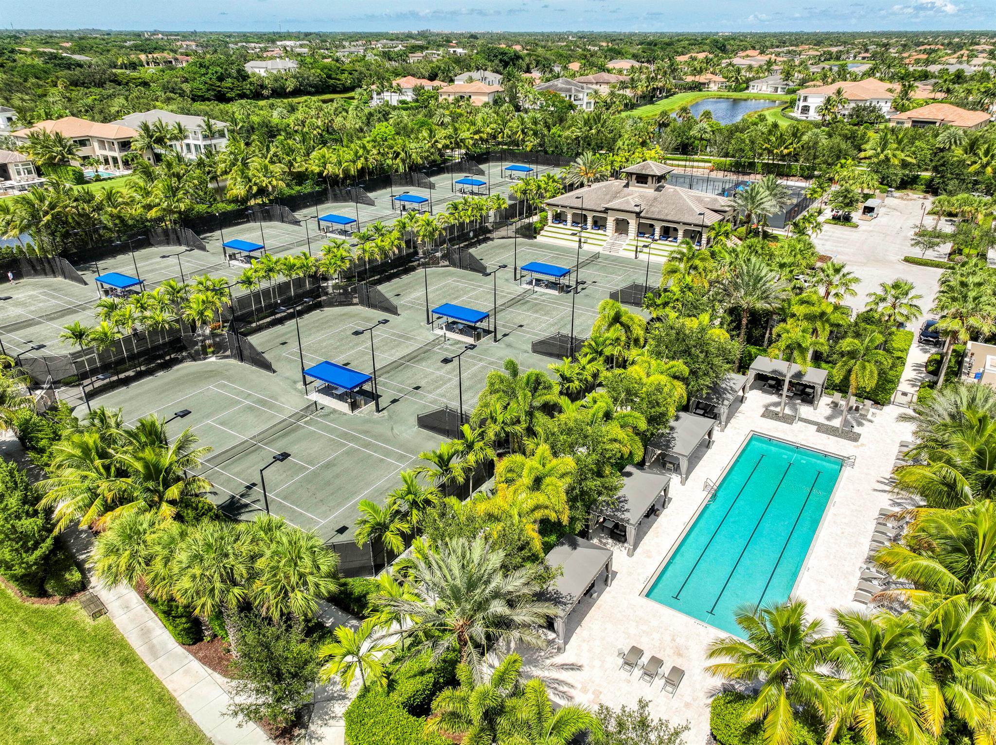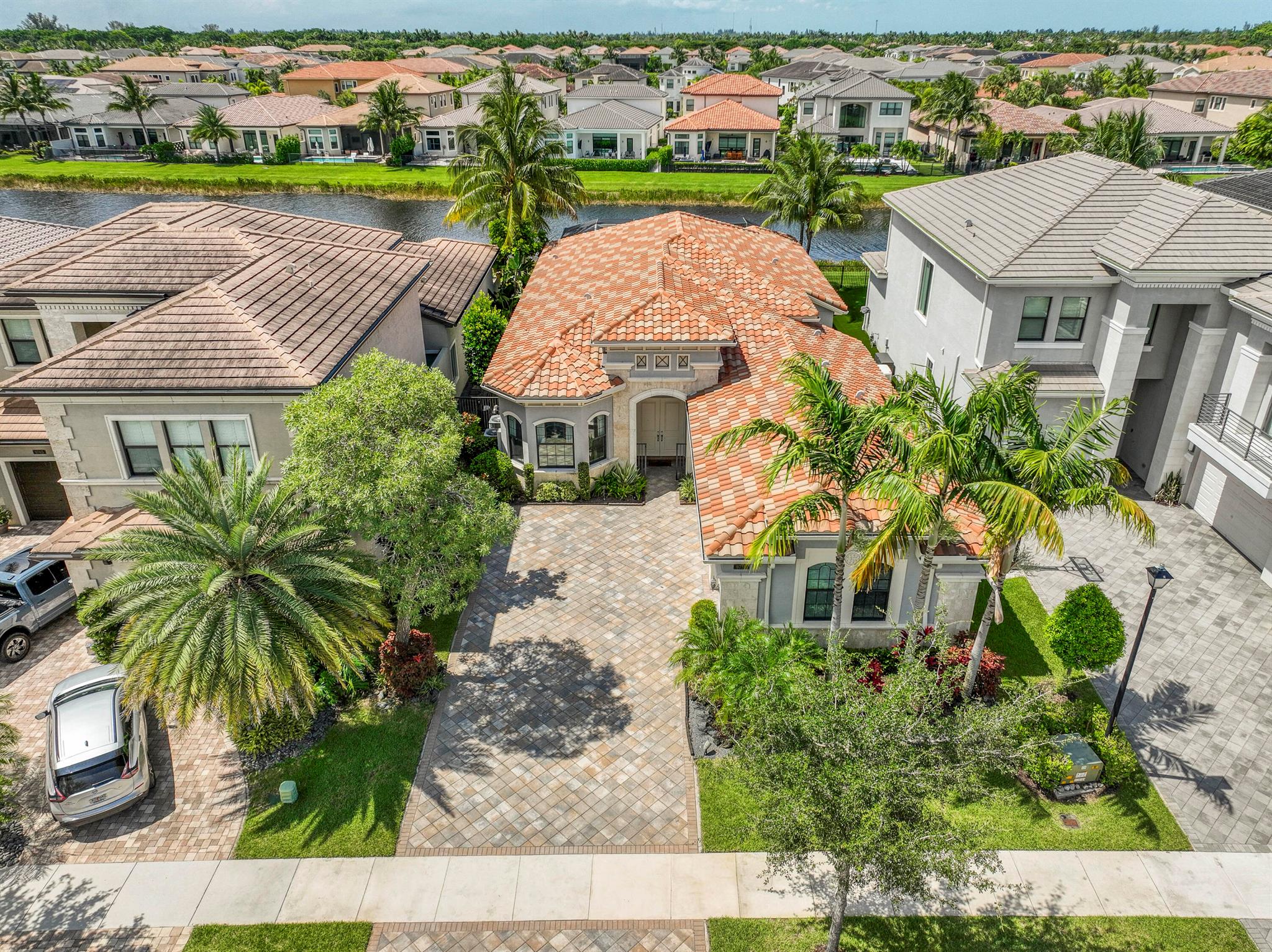 Beautiful and alluring lake views from this upgraded single-story home featuring 4 bedrooms and 3.5 bathrooms, with impact glass throughout. Highlights include coffered ceilings, crown moldings, a custom media center, built-in closets, a full home generator, and whole-house water filtration and purification. The chef's kitchen boasts quartz countertops, a gas range, and premium appliances. The primary suite has custom closets, European-style drapes, and a spa-like bathroom with dual vanities, a large shower, and a bidet. Relax by the heated pool or enjoy the summer kitchen and upgraded picture window screen enclosure. Marble-look tile, an EV car wall charger, and a 3-car garage complete the property. Seven Bridges offers an unparalleled lifestyle with its 30,000 sq ft clubhouse, modern