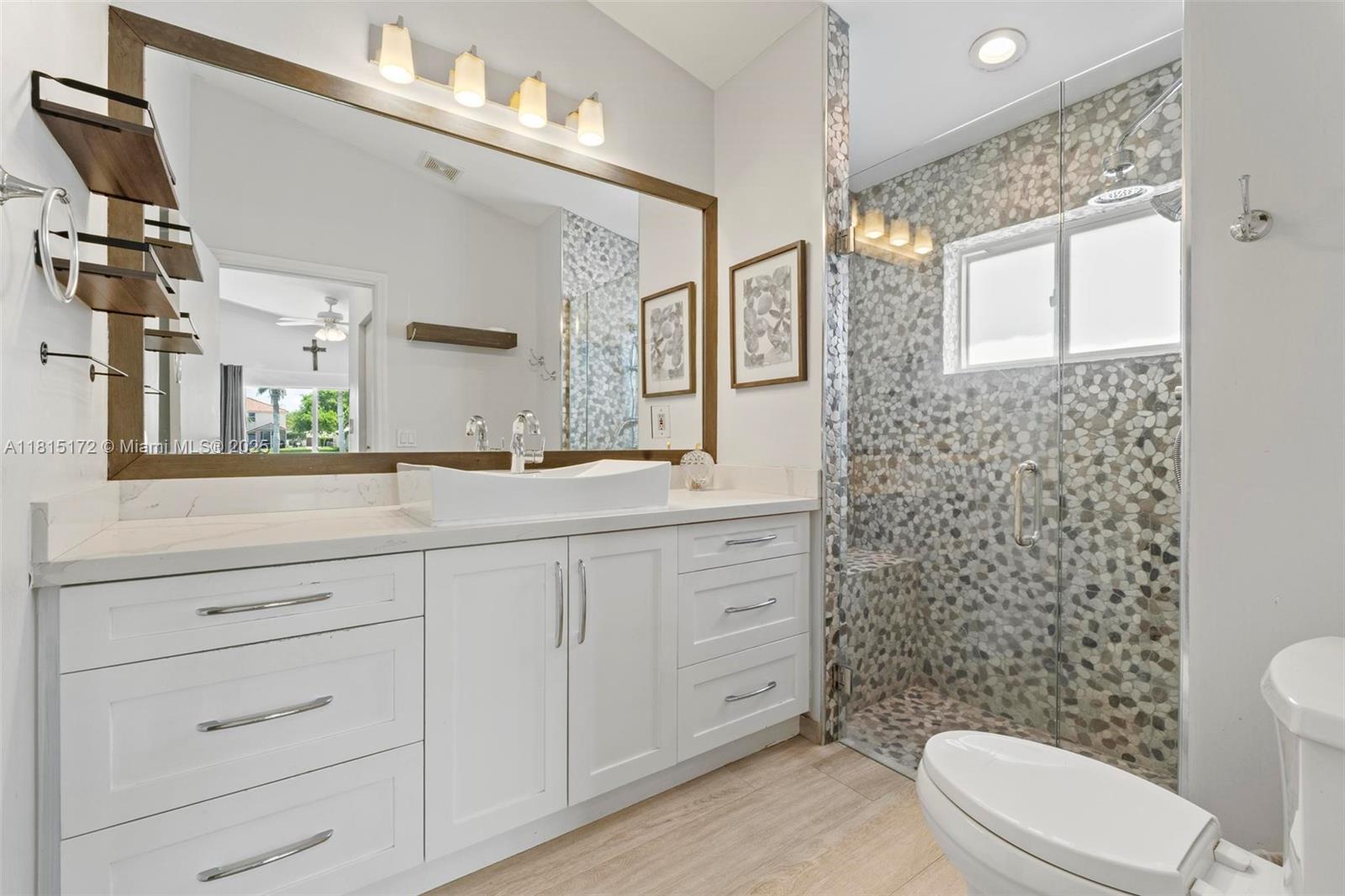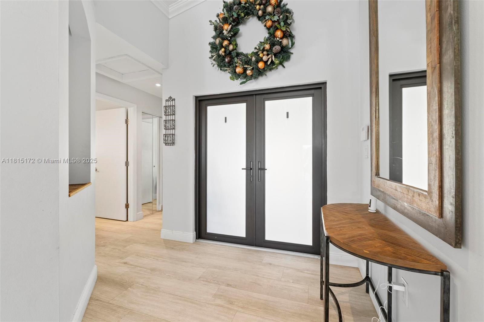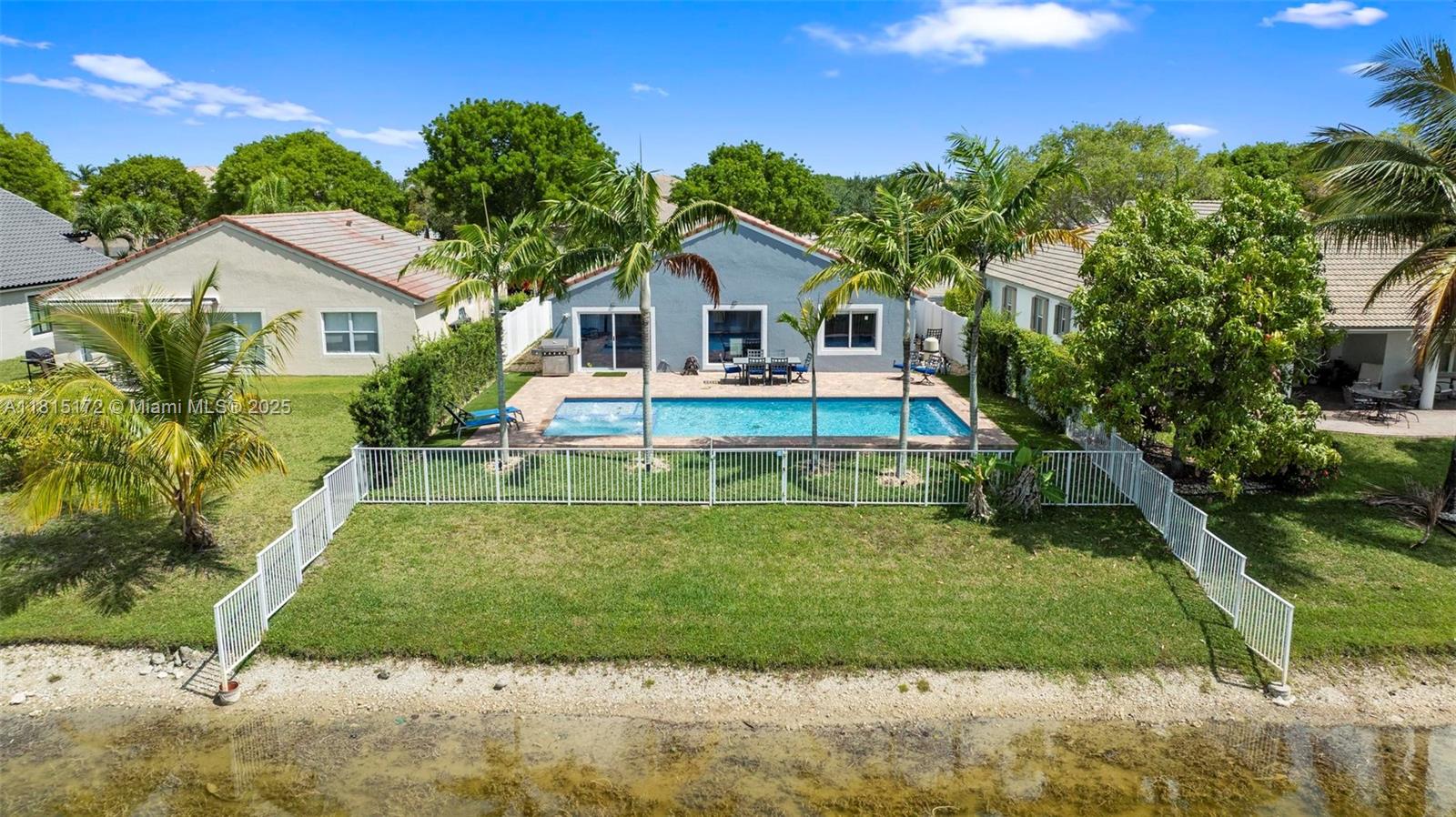 Modern and sleek, this 3-bedroom, 2-bath retreat in the exclusive gated community of Pembroke Falls offers plenty of natural light! This beautiful residence overlooks a shimmering lake. Step into a bright, open concept living space featuring high ceilings and large windows. The gourmet kitchen boasts stainless steel appliances and quartz countertops, ideal for gatherings. The dining area offers lovely views of the pool and lake. Retreat to the luxurious master suite with dual walk-in closets and serene en-suite bathroom. Outside, enjoy your private backyard oasis with an oversized sparkling pool designed with hand-crafted mosaics art and a hot tub for ultimate rejuvenation. The tranquil lake is perfect for fishing or kayaking. Experience a lifestyle of luxury—schedule your showing today!