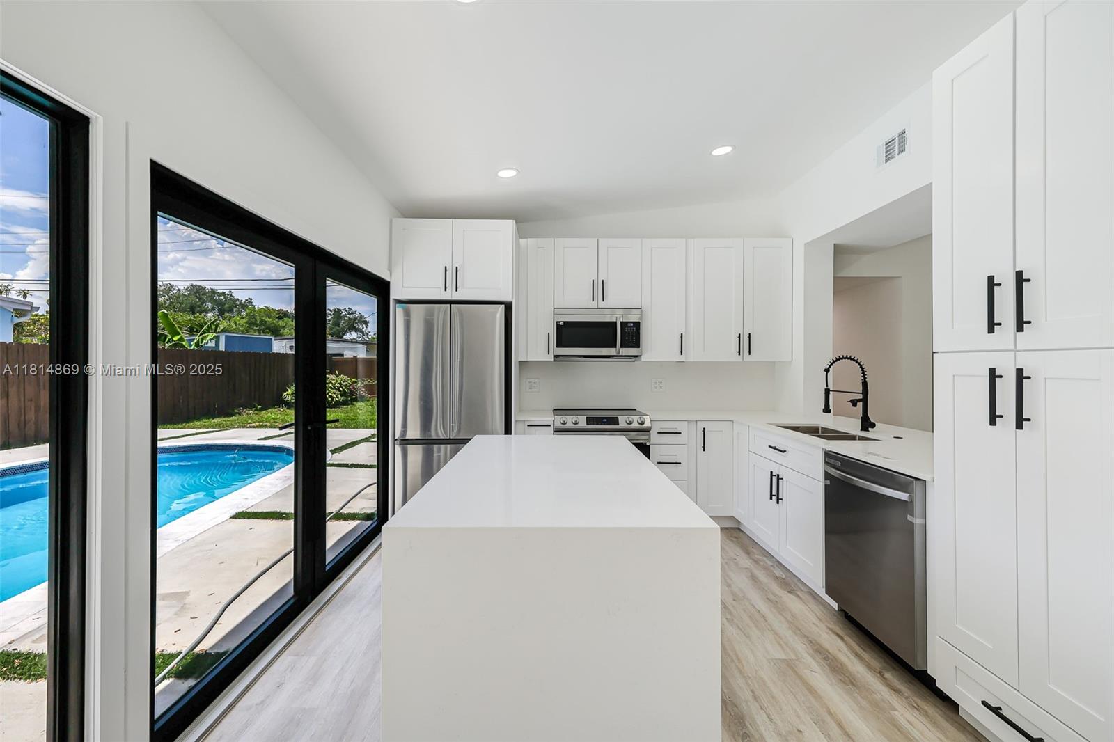 Welcome to this beautifully updated 4 bedroom, 2 bathroom residence, perfectly situated in a central Fort Lauderdale neighborhood. Thoughtfully designed for both comfort and privacy, this home features a motorized entry gate, impact windows, gutters, a brand-new A/C unit, updated electrical and plumbing, and a new water heater offering peace of mind and modern convenience. Step inside to an open-concept layout that seamlessly connects the living, dining, and kitchen areas—all with inviting views of the backyard and pool. With contemporary upgrades throughout, this move-in-ready home truly needs nothing—just bring your furniture and start living!