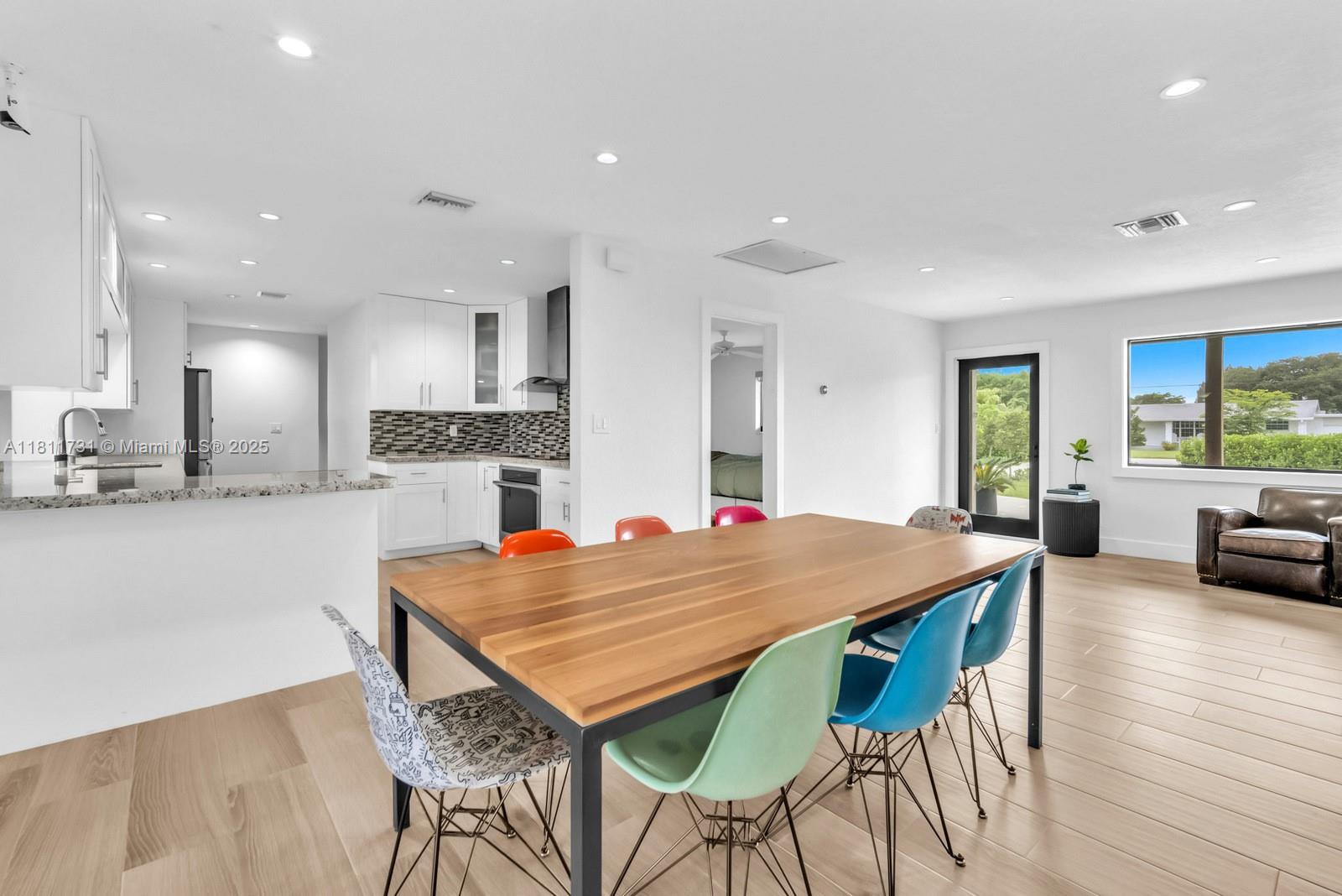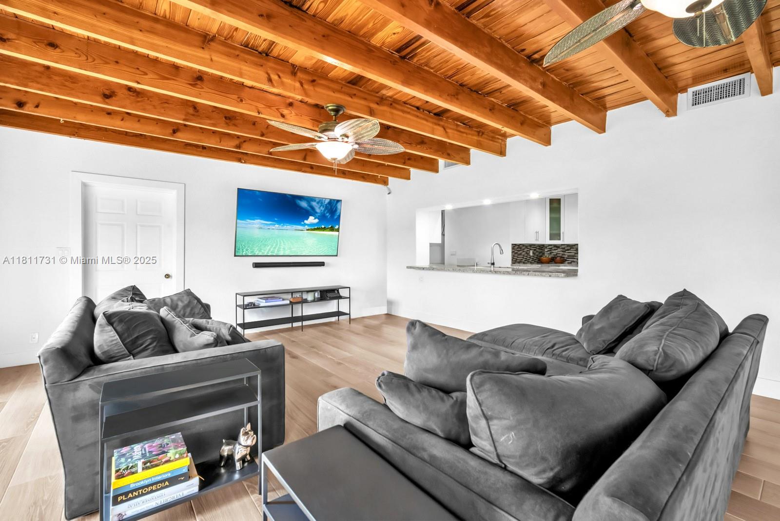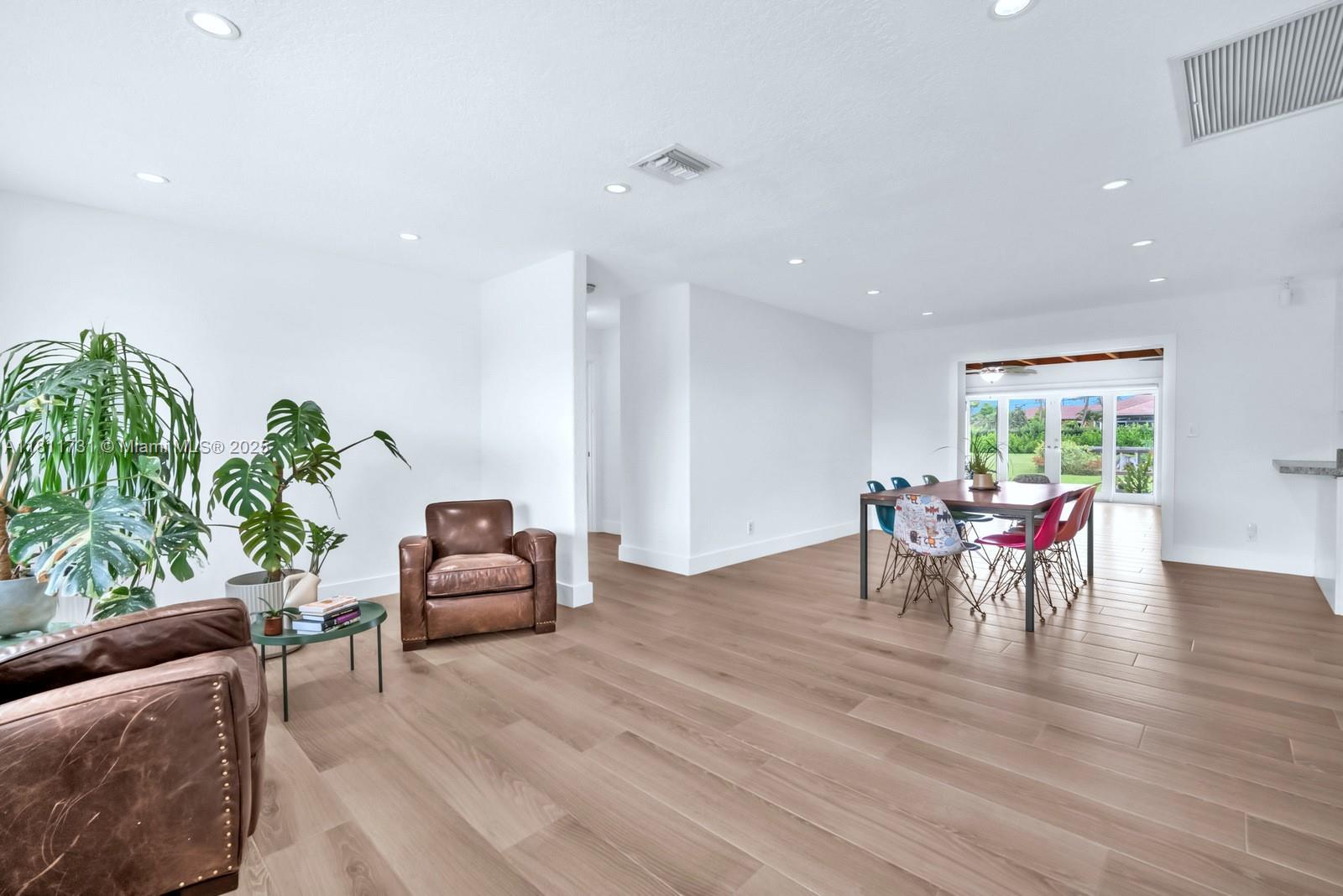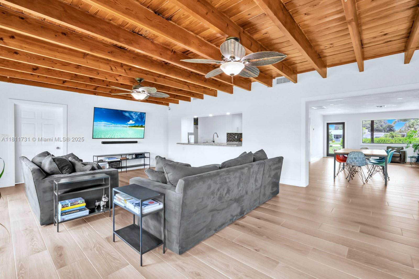 Gorgeous 4 bed 2.5 bath one-of-a-kind home nestled on spectacular 2 acre premium lot on charming street in the heart of equestrian friendly city of Davie. Tastefully updated home features new floors throughout. Kitchen has sleek cabinets w glass accent doors, stainless appliances & range hood. Spacious living room and family room that showcases a wood beam ceiling w 2 sets of french doors to an expansive fully fenced backyard. Triple split floor plan is desirable & versatile. Large primary bedroom w en-suite & view of the grounds. Freshly painted inside & stylish paint outside. Welcoming curb appeal, landscaping is so pretty, including private grove w a variety of fruit trees. Additional highlights: large laundry room, impact doors & windows, metal roof, new ac and water heater.