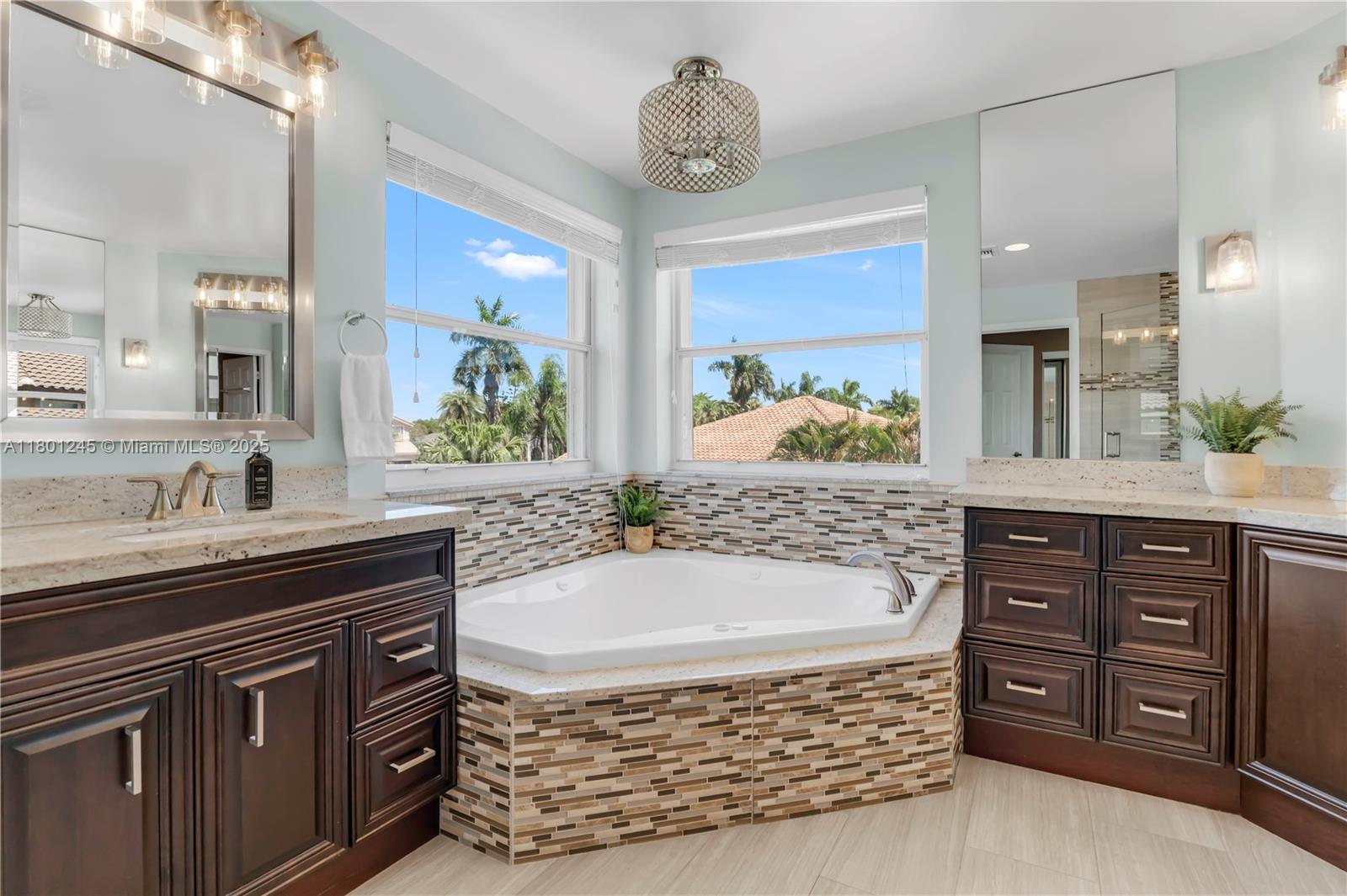 Welcome to the home of your dreams. This 5-bedroom, 3-bath home offers the perfect blend of comfort and style. A desirable layout includes 1 bedroom and a full bath on the main level. The home also features a mudroom with laundry and a generous walk-in pantry. The open-concept gourmet kitchen overlooks the inviting family room, where expansive windows provide spectacular views of the sparkling, newly built pool and spa—perfect for sunny summer days. Step outside to a large covered patio, ideal for entertaining. Upstairs, you'll find 4 additional bedrooms, including a luxurious primary suite that serves as a peaceful retreat. The en-suite bathroom offers a soaking tub, separate shower, and large walk-in closet. All bedrooms are generously sized and there is plenty of storage throughout.