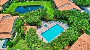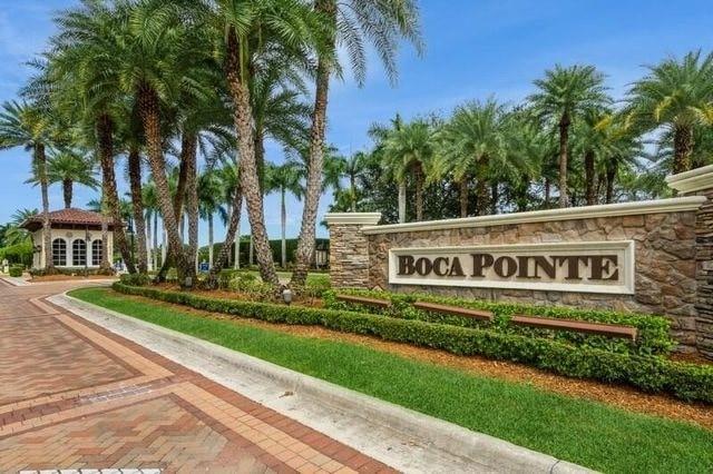 Motivated seller. Boca Pointe condo (main community), corner unit w/ a tranquil water/golf course view on the enclosed glass patio. It has 2 large bedrooms (+ den), the master has a walk-in closet w/ built-ins & hurricane proof windows. The den has French doors, w/ a built-in desk + storage. The kitchen has new stainless-steel appliances. The laundry room has a new machines & AC unit. The layout has high ceilings (hurricane proof sky lights), much natural light, & split bedrooms. The driveway is lengthy. Come visit the La Mirada development, w/ private pool. A+ school district, w/ in walking distance of house of worship. 1 of only 2 country clubs in Boca with optional membership. Located centrally, near all 3 highways & east Boca known for the beach & downtown. EV Ready.