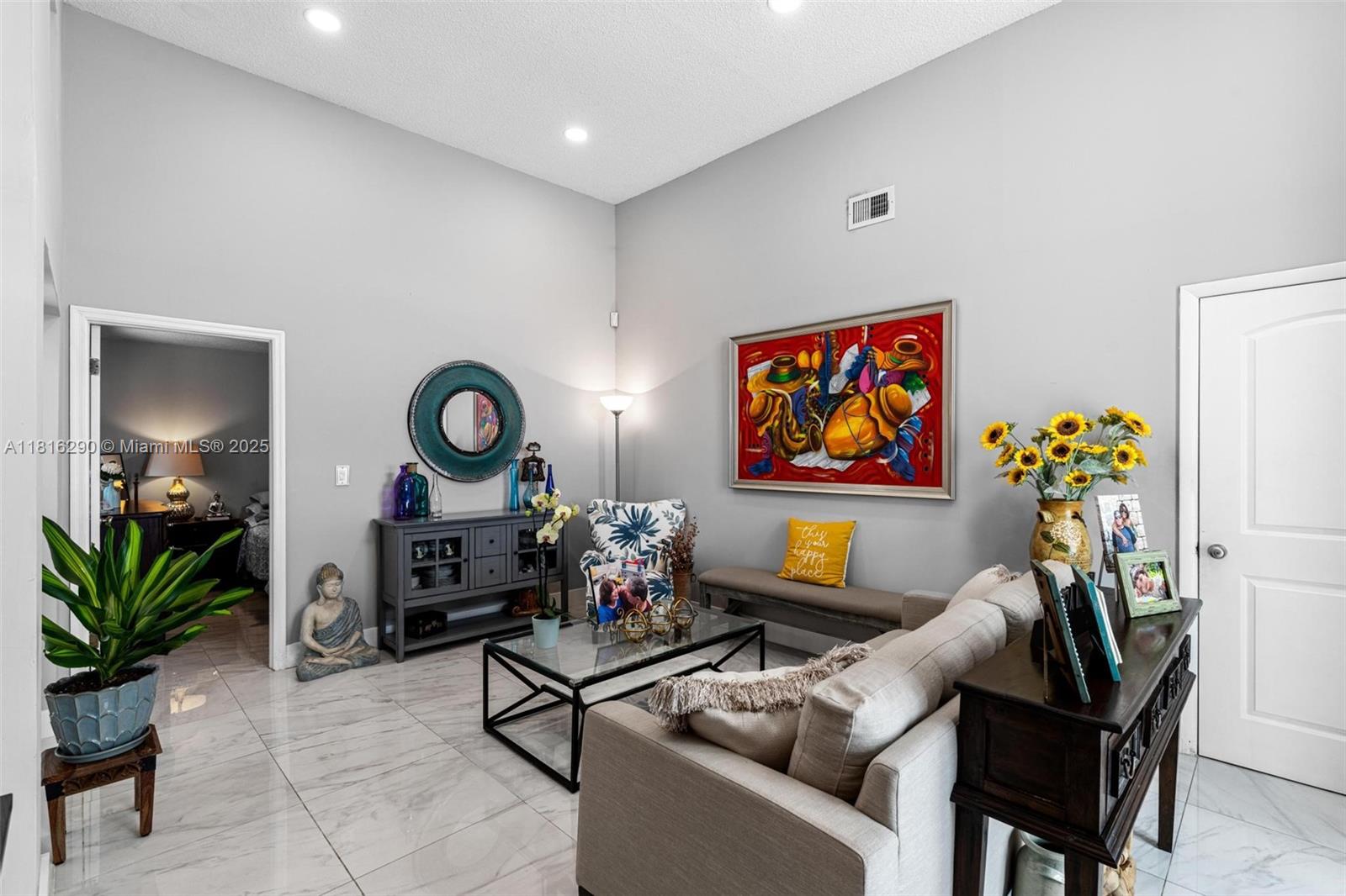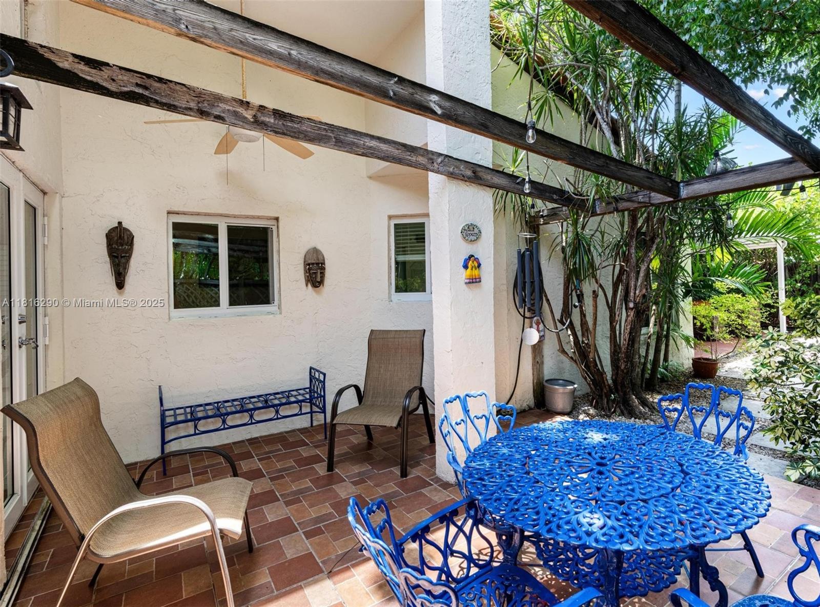 Beautifully renovated 3-bedroom, 2-bathroom Art Deco-style home, in serene, gated community. Open-concept layout featuring brand-new flooring, doors, lighting, updated bathrooms. The French-style kitchen upgraded refrigerator, stove, and dishwasher. This move-in ready home offers impact windows and doors, a roof just four years young, and a recently replaced AC, water heater, washer, and dryer. The spacious garage can easily be transformed into a fourth bedroom or an inspiring office space, already equipped with a generous wall-to-wall closet. Two terraces that open to a sprawling backyard — one of the largest in the community. Parking for 4 cars in front. Well-maintained neighborhood ,low $130/month HOA fee that includes 24/7 security & front lawn maintenance.