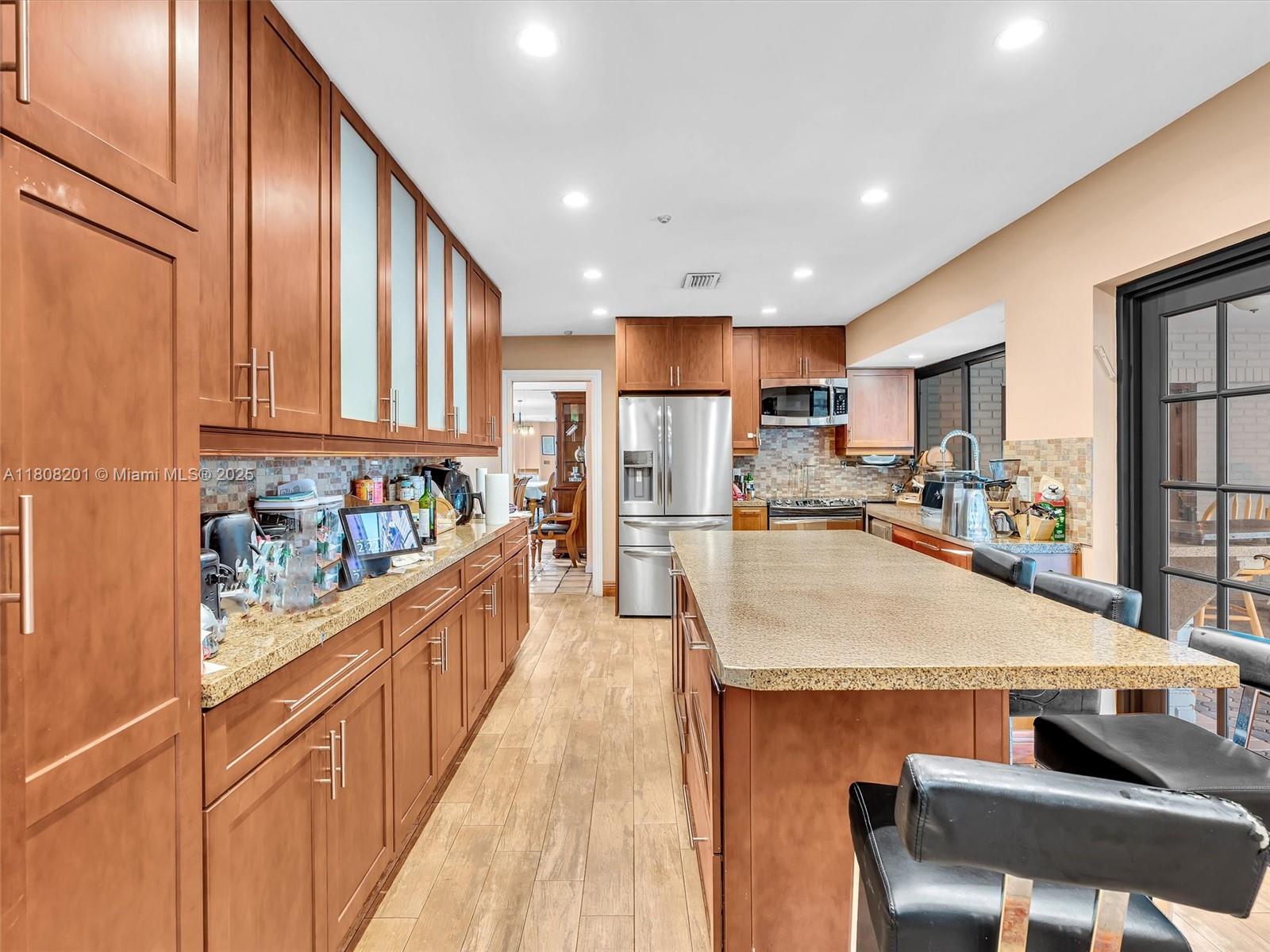 ** RARELY AVAILABLE IN EMERALD HILLS ** This elegant 5 Bedroom 4 Bathroom estate offers 3,800 SF space, a fully functional two car garage, and a separate laundry room blending timeless charm with modern upgrades. Home offers Hurricane-impact windows & doors, 2 renovated bathrooms and a standby generator. Double French doors open to a serene backyard oasis with an eat-in poolside nook and seamless indoor-outdoor flow. A Charming Wrought iron staircase and custom library walkway elevate the home's character. Walking distance to houses of worship. Close to all shopping, restaurants, and easily accessible to all Major Highways.