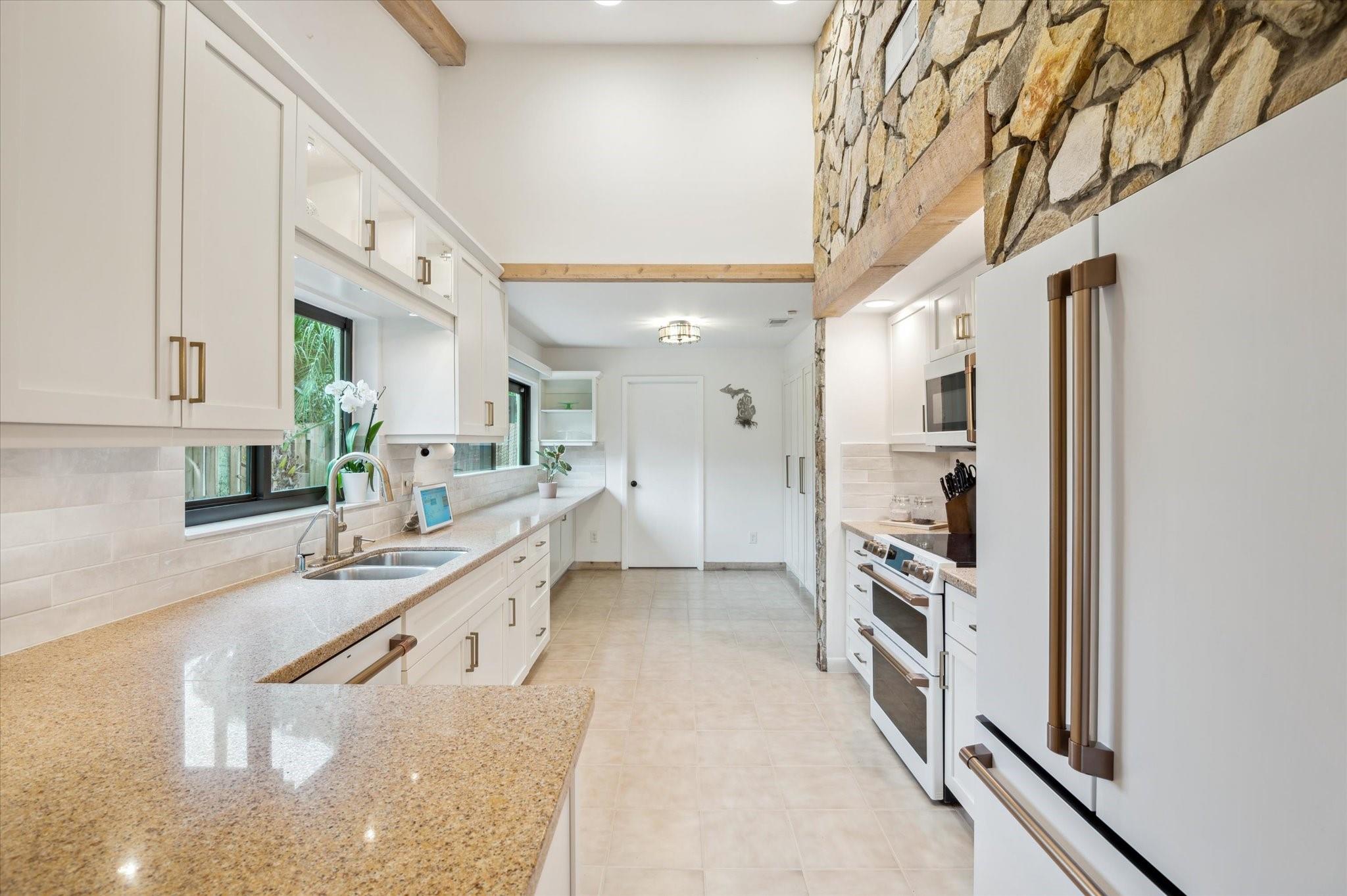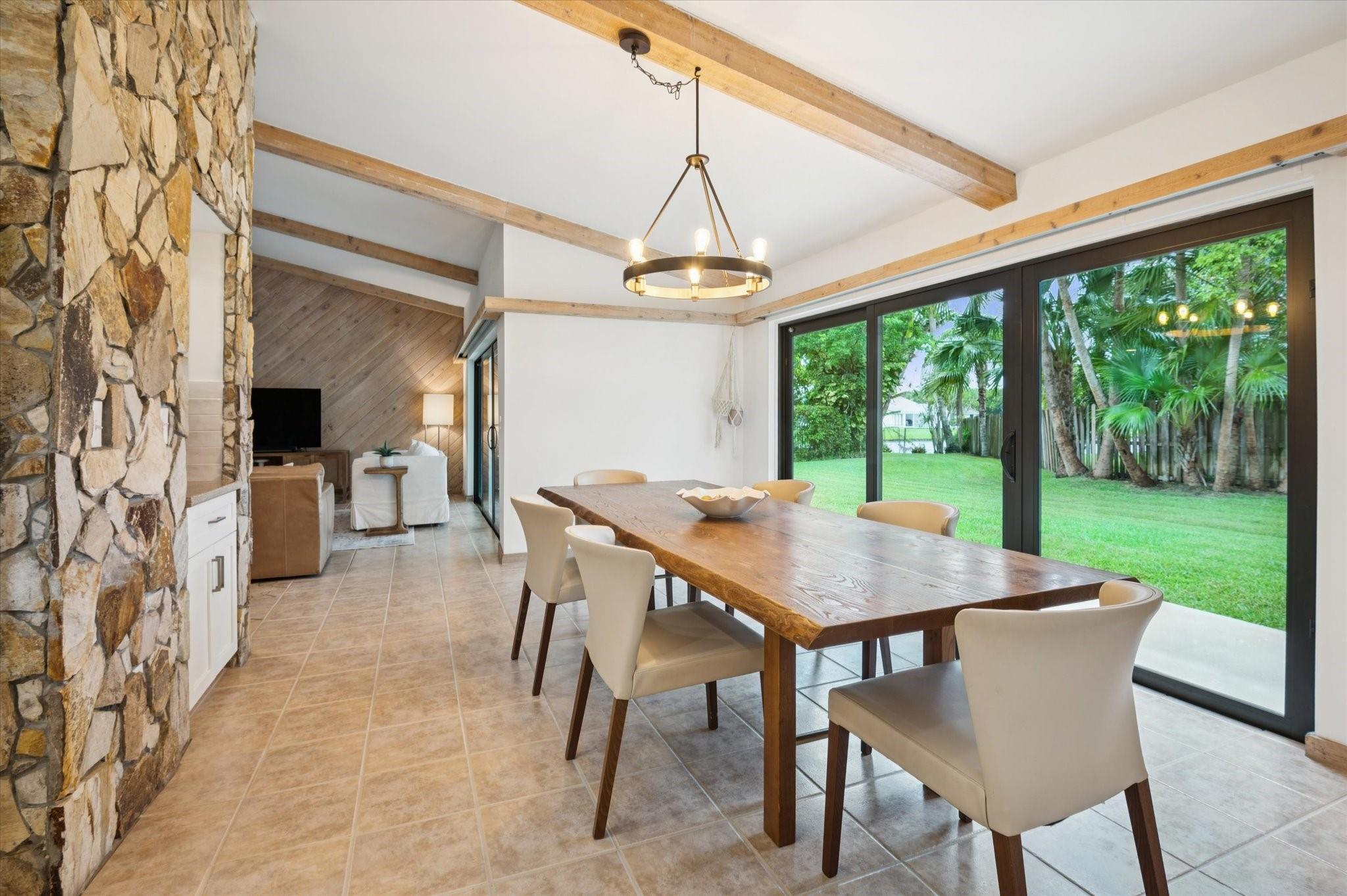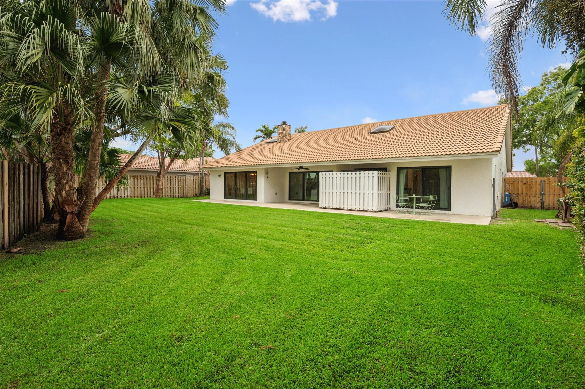 This home in Jacaranda Lakes has great curb appeal, is immaculate & move-in condition. Located at the end of 11th St. with only 7 owners of homes accessing it. From the moment you enter thru the double impact doors the living area is wide open w/vaulted & popcorn free ceilings accented by pickled cedar beams. Across the room you see the view of the lush back, fenced yard. The wide galley kitchen is bright w/white cabinets and rose-colored fixtures. A brand-new kitchen faucet was installed. The counter was extended into the breakfast area offering more storage. White appliances complement the white shaker cabinets. Impact windows and doors throughout, New A/C as of Nov. '24, new water heater as of May '25, fireplace, 3 skylights, & soaking tub in 2nd bath. Hurry this home will sell fast!