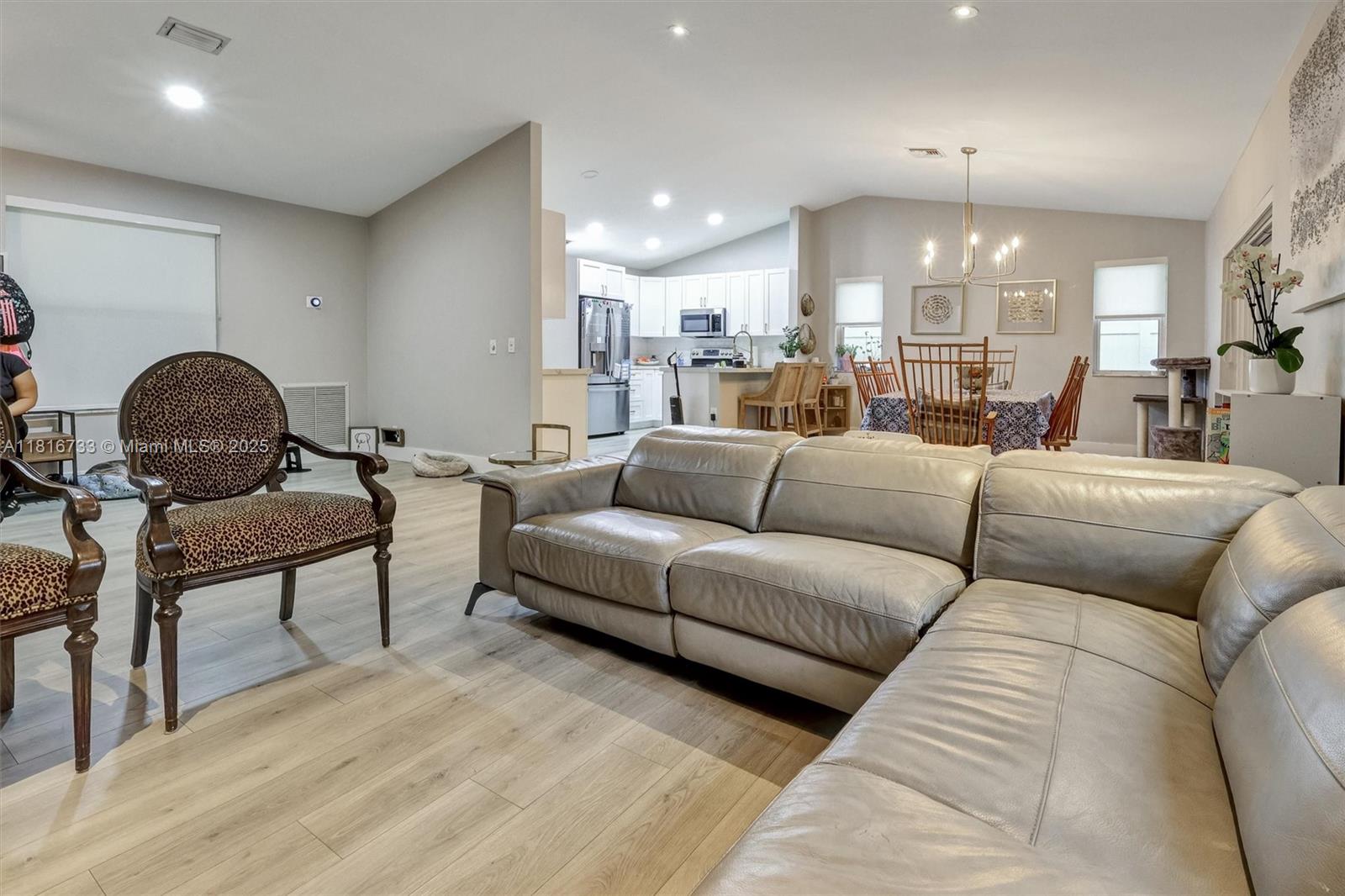 VERY CLEAN TURNKEY 3/2 WITH NEW ROOF IN 2018, NEW A/C IN 2016, NEW SPRINKLER PUMP IN 2019 AND UPDATED BATHROOMS WITH GRANITE. TILE THROUGHOUT WITH CARPET IN BEDROOMS. NEW KITCHEN 2024. OPEN CONCEPT WITH VAULTED CEILINGS IN MAIN LIVING AREA. SECURITY SYSTEM, FENCED YARD THAT BACKS UP TO GROVE OF FRUIT TREES. NEW HURRICANE WITNDOWS AND DOORS. XTRA FRIDGE/FREEZER IN GARAGE. NEWER FULL-SIZE WASHER DRYER. WELL WATER SPINKLERS.