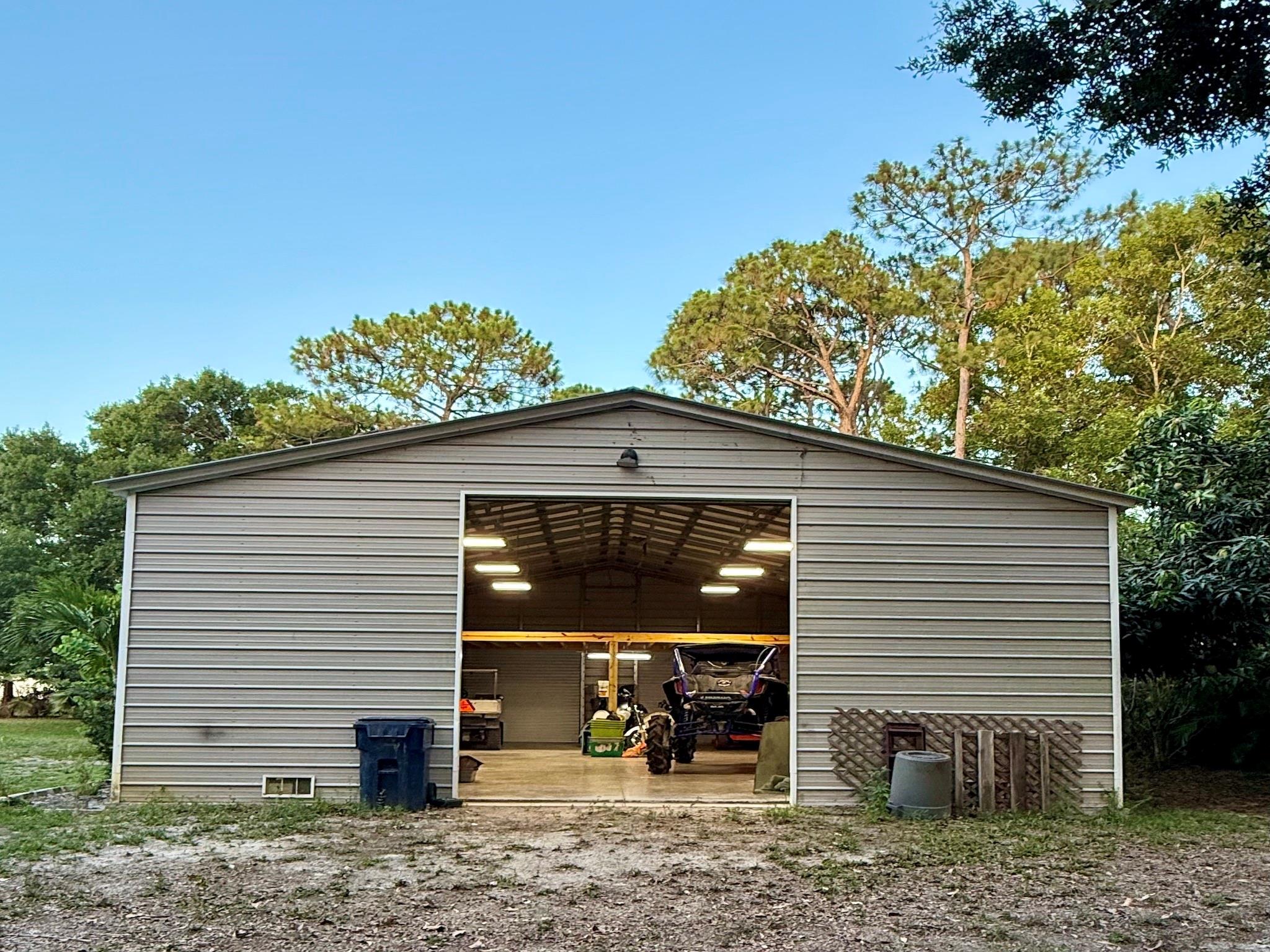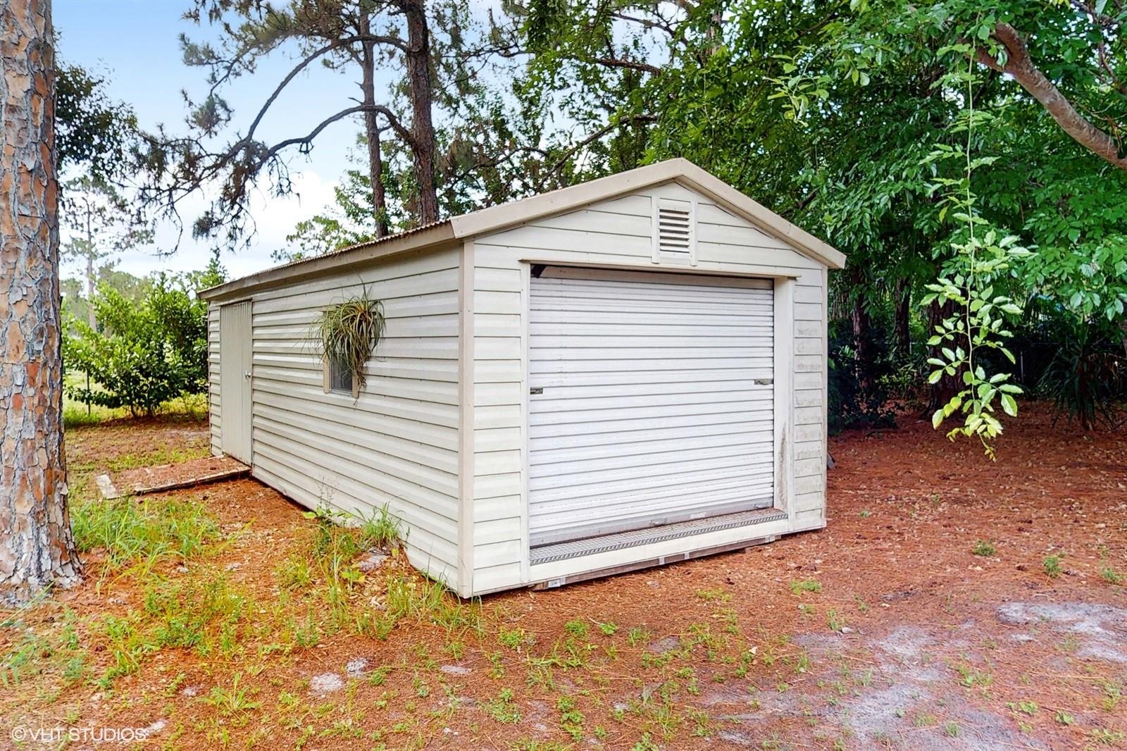 Tucked away on 1.25 acres of beautifully landscaped grounds, this remodeled 3-bedroom, 2-bath home offers the perfect blend of comfort, space, and privacy. Set in a secluded area of The Acreage, surrounded by mature trees, the property provides a peaceful retreat from the hustle and bustle—ideal for those who value serene outdoor living. The grounds are fully landscaped with lush greenery, native plants, and a private fire pit area—ideal for quiet evenings under the stars. A 30 x 40 metal building provides ample space for a workshop, RV/Boat storage, or business use, while an insulated storage shed offers additional space! With a 2-car garage, plenty of extra parking, this home is a rare find for those seeking space and privacy in a beautiful setting.