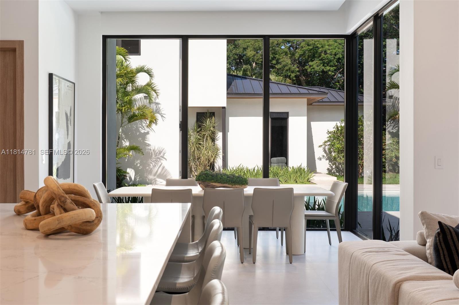 This brand-new transitional masterpiece in the heart of Pinecrest exudes sophistication and elegance. Boasting 8 bedrooms & 9.1 bathrooms across 11,375 SF, it features 2 primary suites, a home theater & a private home office. A separate guest house with a kitchenette adds flexibility for visitors or extended family. The gourmet kitchen is equipped with Subzero refrigeration, Wolf & Al Fresco appliances & custom wood cabinetry. Floor-to-ceiling windows flood the open living spaces with natural light & panoramic views. Enjoy seamless indoor-outdoor living with covered terraces, a heated pool & a summer kitchen. Smart home technology, Control4 automation, full house generator & elevator-ready design & premium finishes complete this rare opportunity to own a truly luxurious Pinecrest estate.