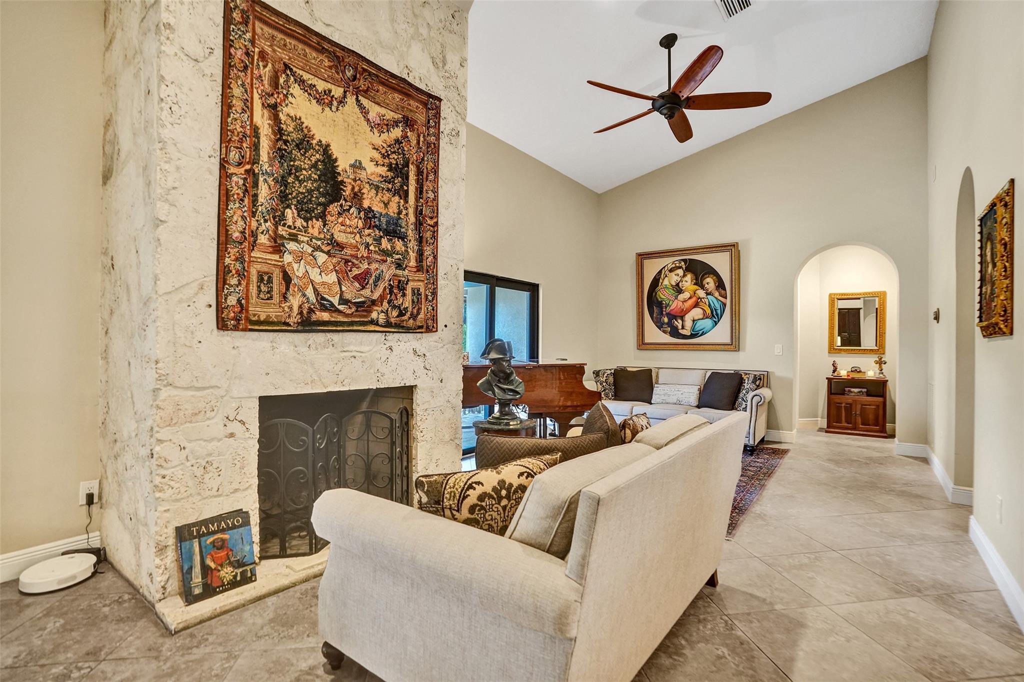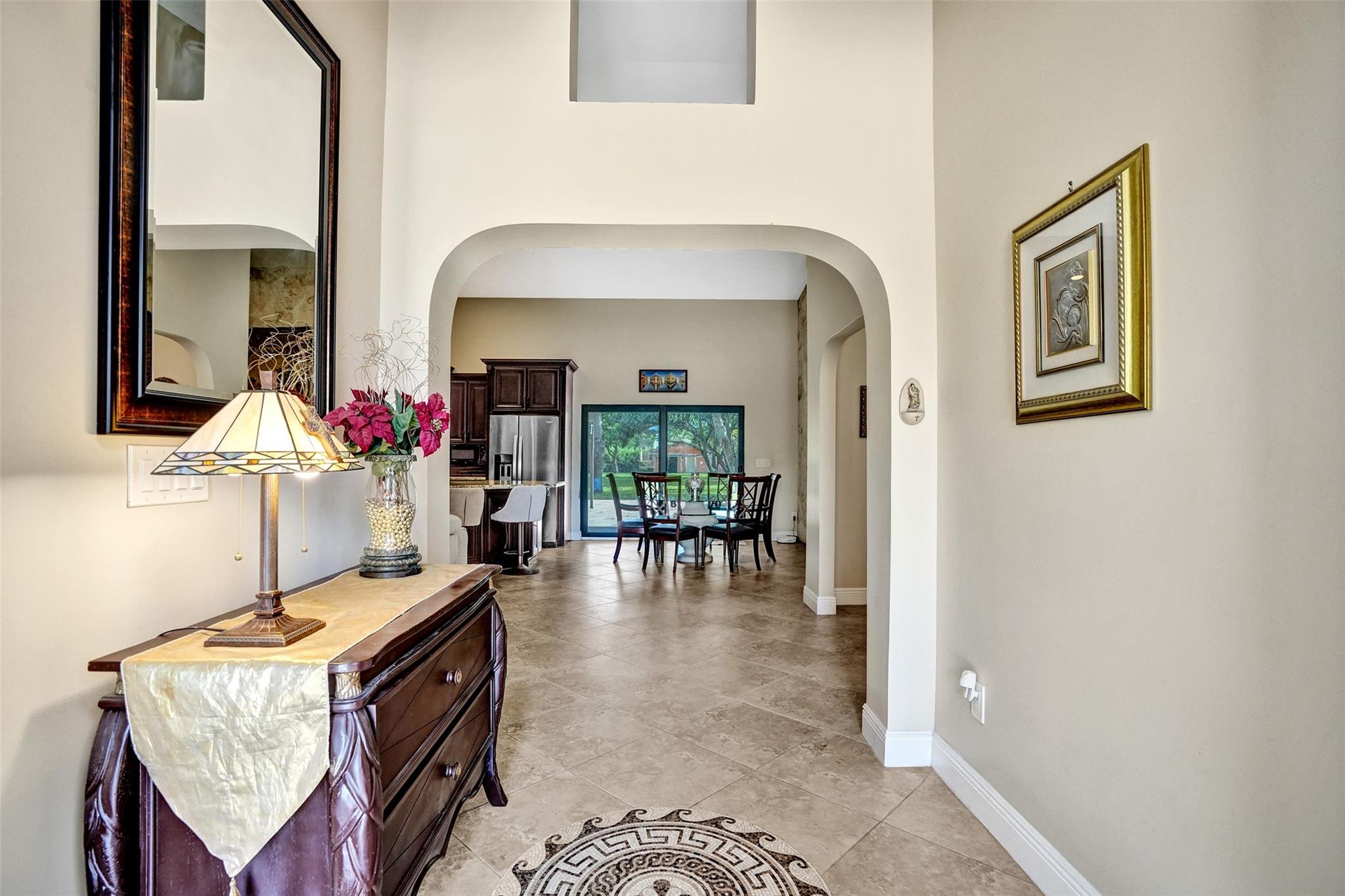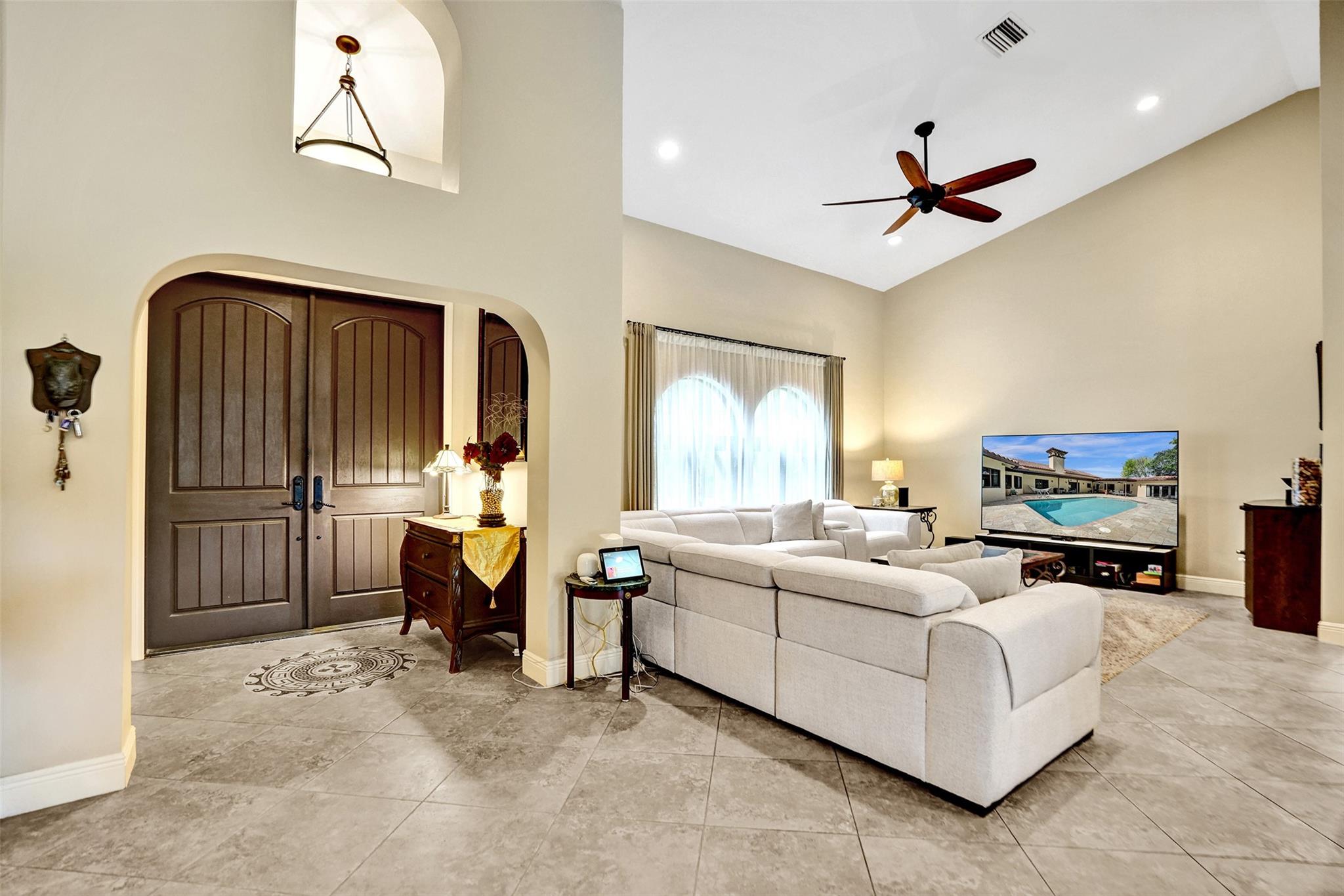 STUNNING CORAL GABLES-STYLE ESTATE ON 1.23 ACRES! This 6 bed/5 bath residence impresses with soaring 12–14 ft ceilings and a dramatic 20-ft tower entryway. Elegant travertine flooring in the front porch and the spacious poolside patio deck—perfect for entertaining. 2 luxurious master suites, one of which can function as a private guest suite with its own entrance. Impact windows and doors throughout offer peace of mind. Enjoy the bounty of nature with a variety of mature fruit trees, including 7 mango, 1 lychee, 1 avocado, and 6 coconut palms—9-zone sprinkler system sourced by a private well. Oversized 2-car garage with impact windows. Expansive paved driveway. 22KW generator. Fully fenced yard and a 10-ft clusia hedge for maximum privacy. NO HOA, in a quiet and desirable neighborhood
