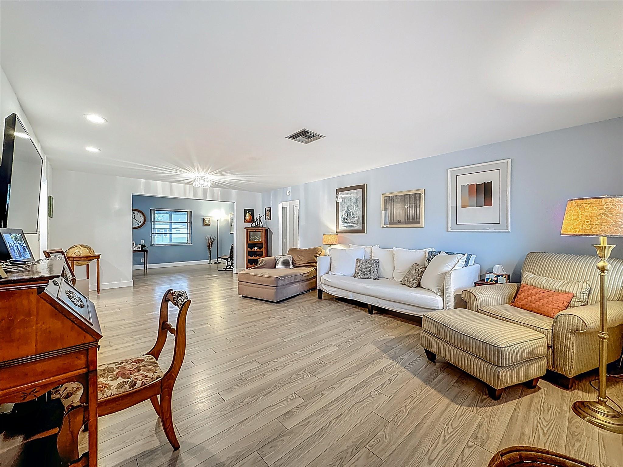 **WATER VIEW**UPDATED KITCHEN & BATHS**BEAUTIFUL OPEN FLOOR PLAN**ADMIRAL MODEL: 2 BEDROOM/2 BATH**1 CG WITH ELECTRIC GARAGE OPENER & DOUBLE WIDE DRIVEWAY**FRONT PORCH**ENCLOSED SCREEN REAR PATIO OVERLOOKING CALM SERENE WATER**LAMINATE FLOORING THROUGHOUT WITH SOME TILE IN KITCHEN**UPDATED KITCHEN WITH HI-HAT LIGHTING & EXTRA PANTRY**UPDATED BATHROOMS**UPDATED NON-TEXTURED CEILINGS**PRIMARY BEDROOM WITH WALK IN CLOSET**LOTS OF CLOSET SPACE-LINEN, COAT, PANTRY**FULL WASHER/DRYER WITH SLOP SINK**HURRICANE ACCORDION PROTECTION**PROPERTY WON’T LAST LONG**55+ COMMUNITY, 20% DOWN, 720 CREDIT SCORE**ASSOC. FEE INCL: FIBER OPTIC HD TV & INTERNET, COURTESY BUS, LAWN SERV, ROOFS, EXTERIOR PAINTING, CLUBHOUSE, 2 POOLS, TENNIS, POOL TABLES, PING PONG, CARD ROOMS, SHOWS, FITNESS CENTER...