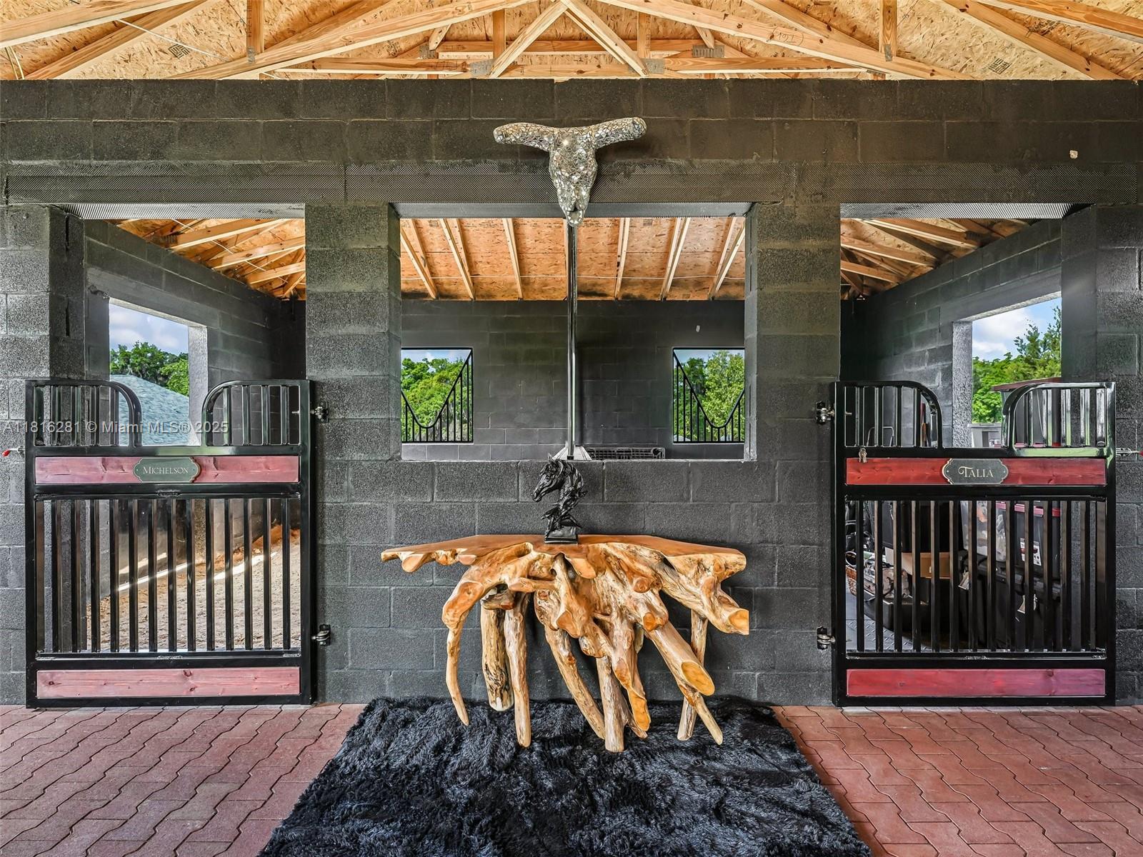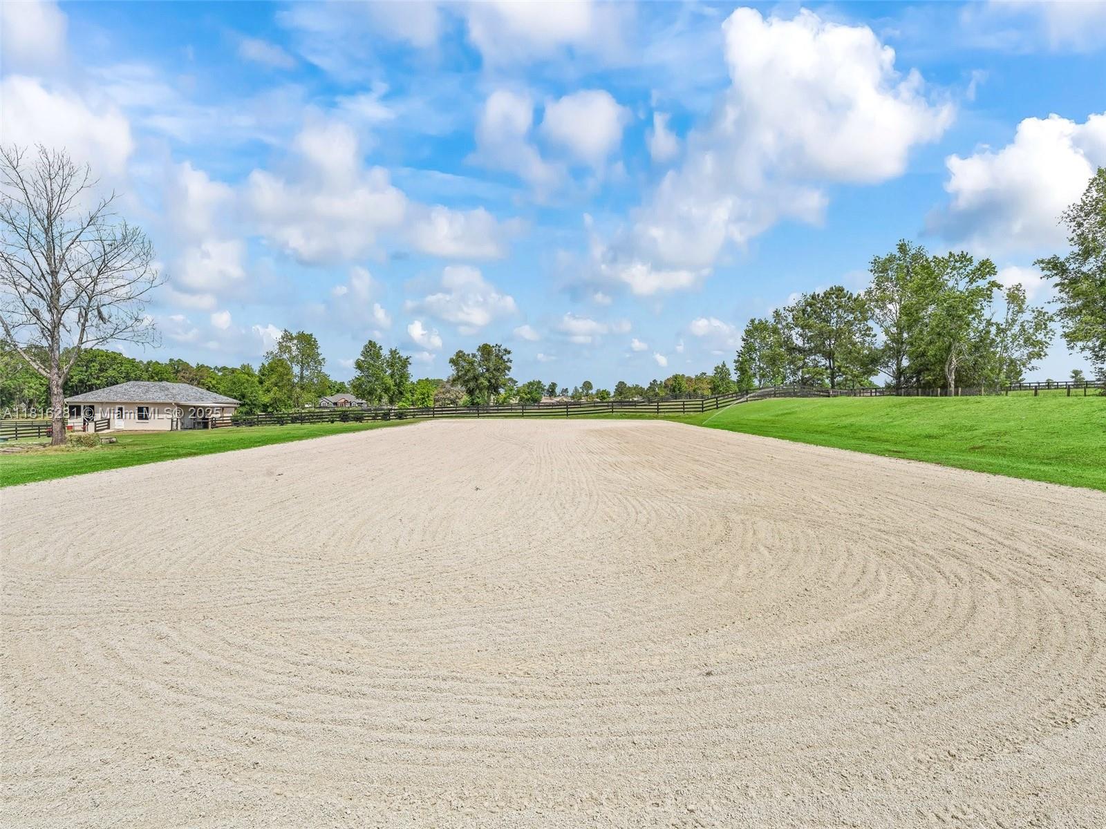 Since its last purchase, this 5.25-acre Ocala property has been extensively upgraded with major land, equestrian, and residential improvements. The entire rear portion of the property was professionally regraded, and an approximately 80’ x 220’ riding arena was added with a full irrigation and sprinkler system. All fencing throughout the property has been replaced, and a solar-powered gated entrance was installed. A 2023 custom concrete block barn was constructed, featuring oversized stalls, an air-conditioned tack room, wash stall, luxury rubber pavers, and designer RH chandeliers. Additional exterior upgrades include new exterior paint, a whole-house generator with a 500-gallon propane tank, added electrical panels, RV hookup, POE security system, Tesla EV charger, and water softener system, contributing to low utility costs. Interior improvements include fresh interior paint throughout, updated light fixtures and chandeliers, and handicap-accessible French entry doors. Outdoor living was further enhanced with the addition of a 2022 saltwater pool with dual waterfalls and a screened lanai overlooking the riding arena and rolling pastures. Conveniently located just minutes from downtown Ocala and under 20 minutes from the World Equestrian Center.