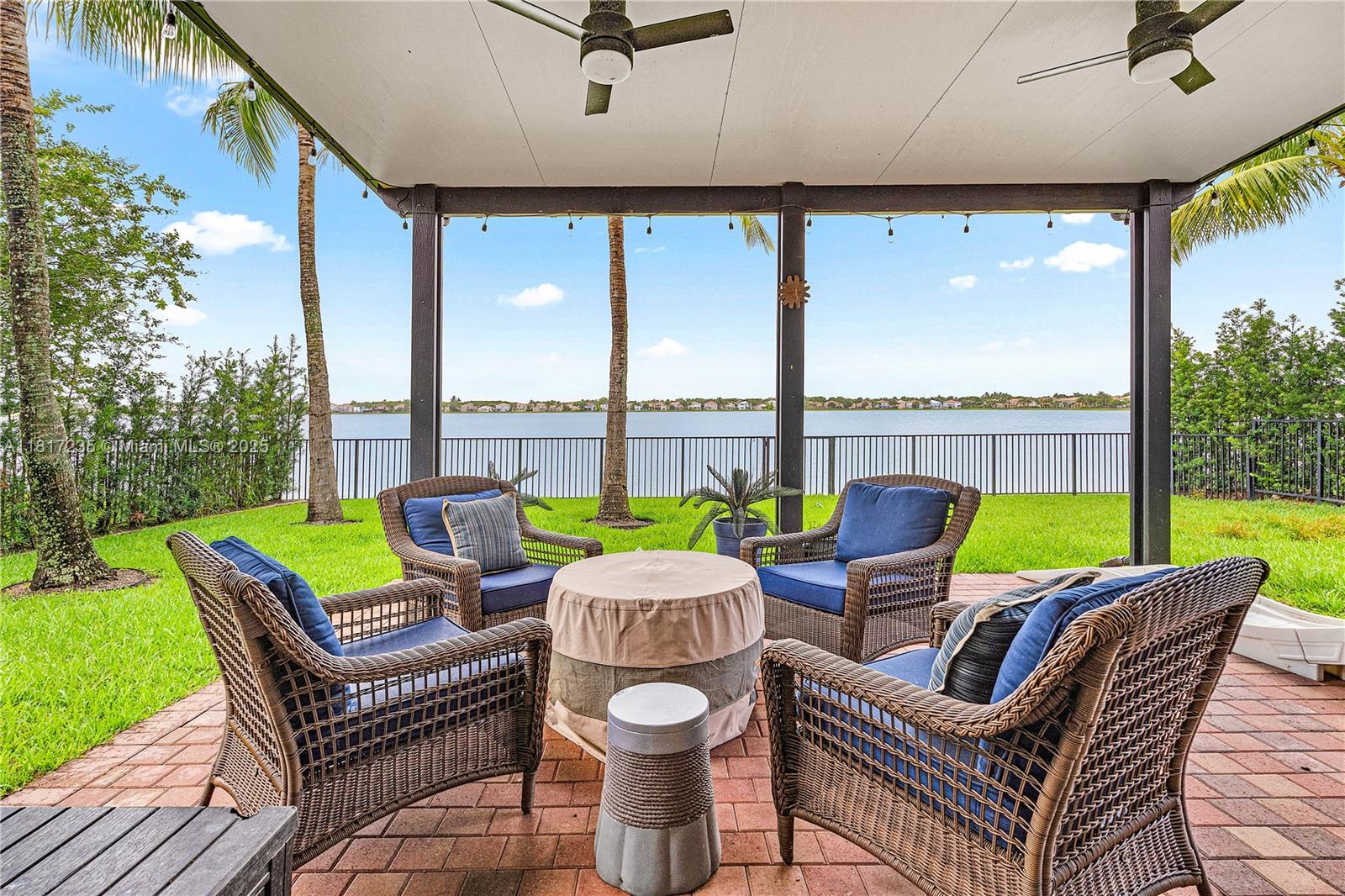 Waterfront Sunset Falls home. Two Story home w/lake views from most every window. Featuring newly remodeled contemporary kitchen cabinetry & appliances, island quartz waterfall top, new flooring throughout, new water heater + freshly painted. This home is designed w/open concept kitchen, breakfast nook & family room. Formal living room & dining room. Main floor guest bedroom & bath. Upper-level Master Bedroom w/separate sitting area, 2 large walk-in closets, his/hers baths w/germ resistant door hardware, oversized lake view balcony. Upper Laundry. Fully fenced lakefront yard w/outdoor extended covered waterfront gathering area w/room for outdoor kitchen. Outdoor BUG Swat System. Roof Maintained. Sunset Falls is prof. managed w/amenities, resort style poos, tennis, basketball, fitness.