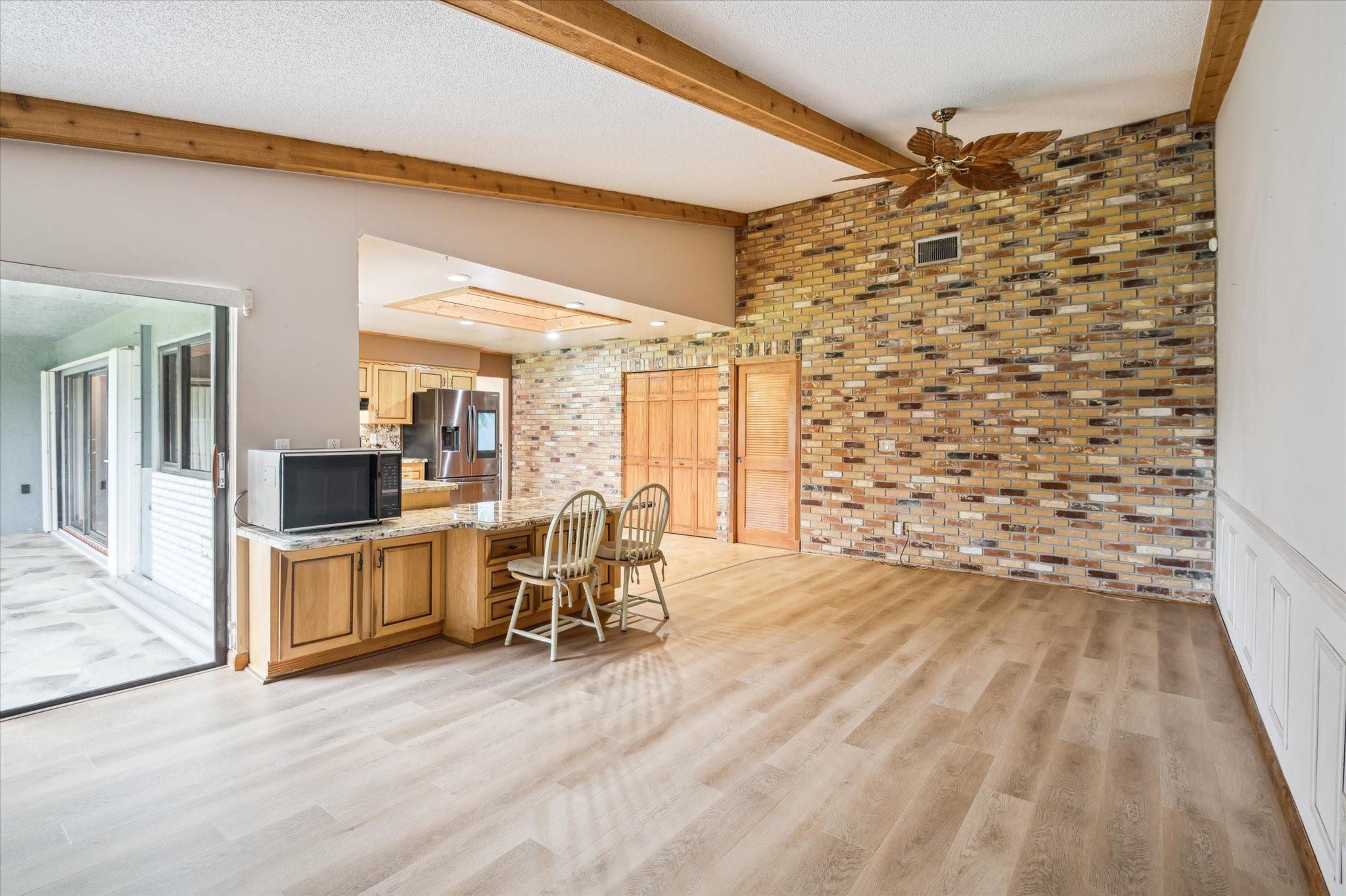 Reduced $50,000.00 in Jacaranda Lakes! This split/stacked four bedroom two bathroom home has 2,478 square feet under air and is located on an interior wide canal lot with no home directly behind the canal. This home overlooks a canal then a cul-de-sac. The living area is very spacious with a family room off the large kitchen-new vinyl flooring as of 5/25 in FR, skylight in kitchen brings in a lot of natural light, sunken living room, formal dining room overlooks screened patio and back yard. Bedrooms are all good sizes. Whole house propane gas generator installed in 2017, roof is 16 years old, hot water heater is 7 years old, paver driveway and patio. Accordian hurricane shutters throughout. Great square footage for the money! Needs updating but priced to Sell! So, hurry & see now!