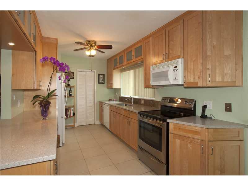Fabulous 4 bed/3 bath family home. Beautiful move-in condition. Maple kitchen w/breakfast bar, new appliances & pantry, porcelain floors. Every room is sunny & bright with 3 sets of French doors to landscaped yard, including a private bricked courtyard off family room. Master bedroom with glass tiled bath & Jacuzzi & separate shower. Custom built-ins, walk-in closets thru-out home. All windows and doors hurricane proof. Home is located one block from the community pool.