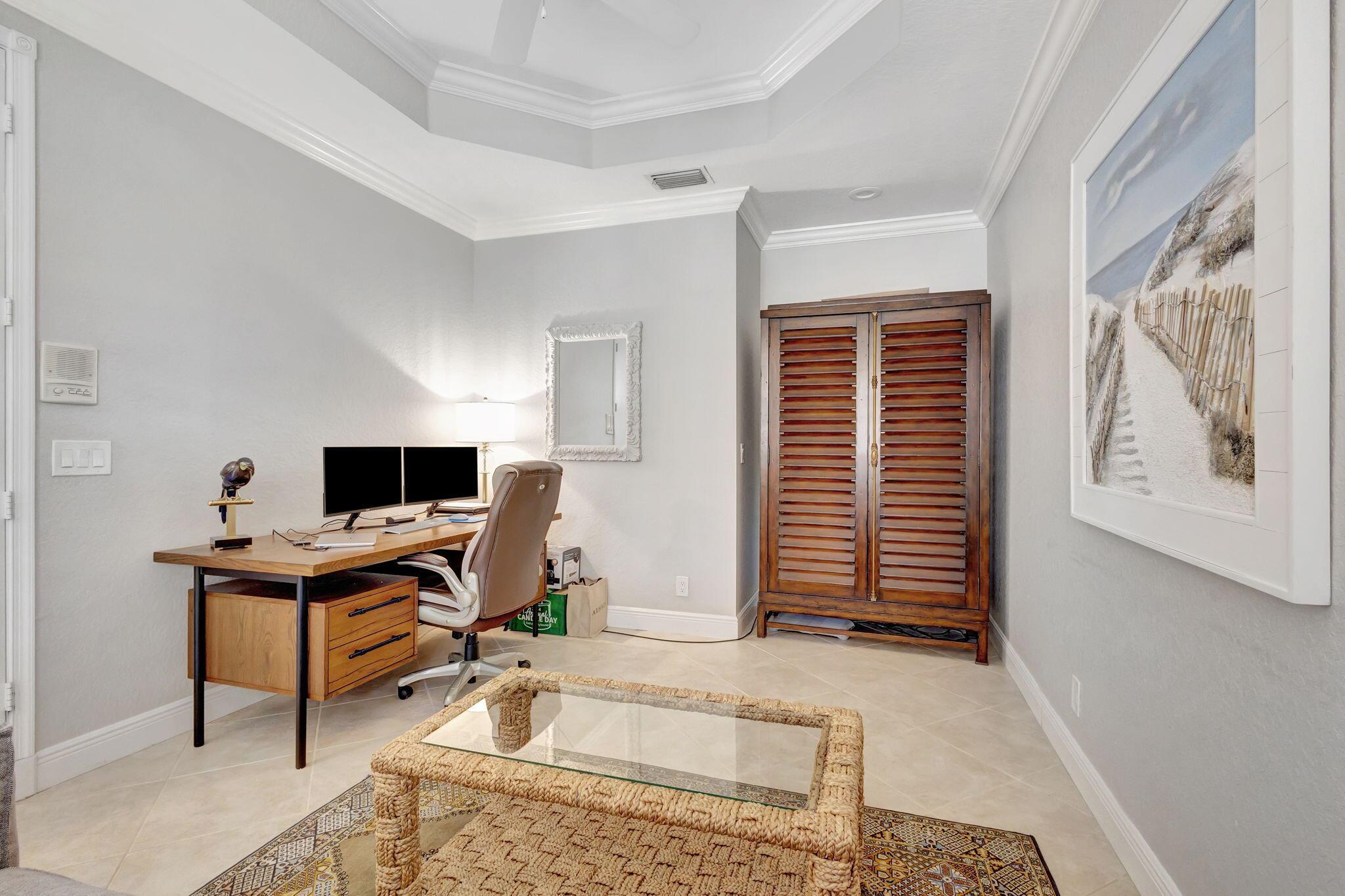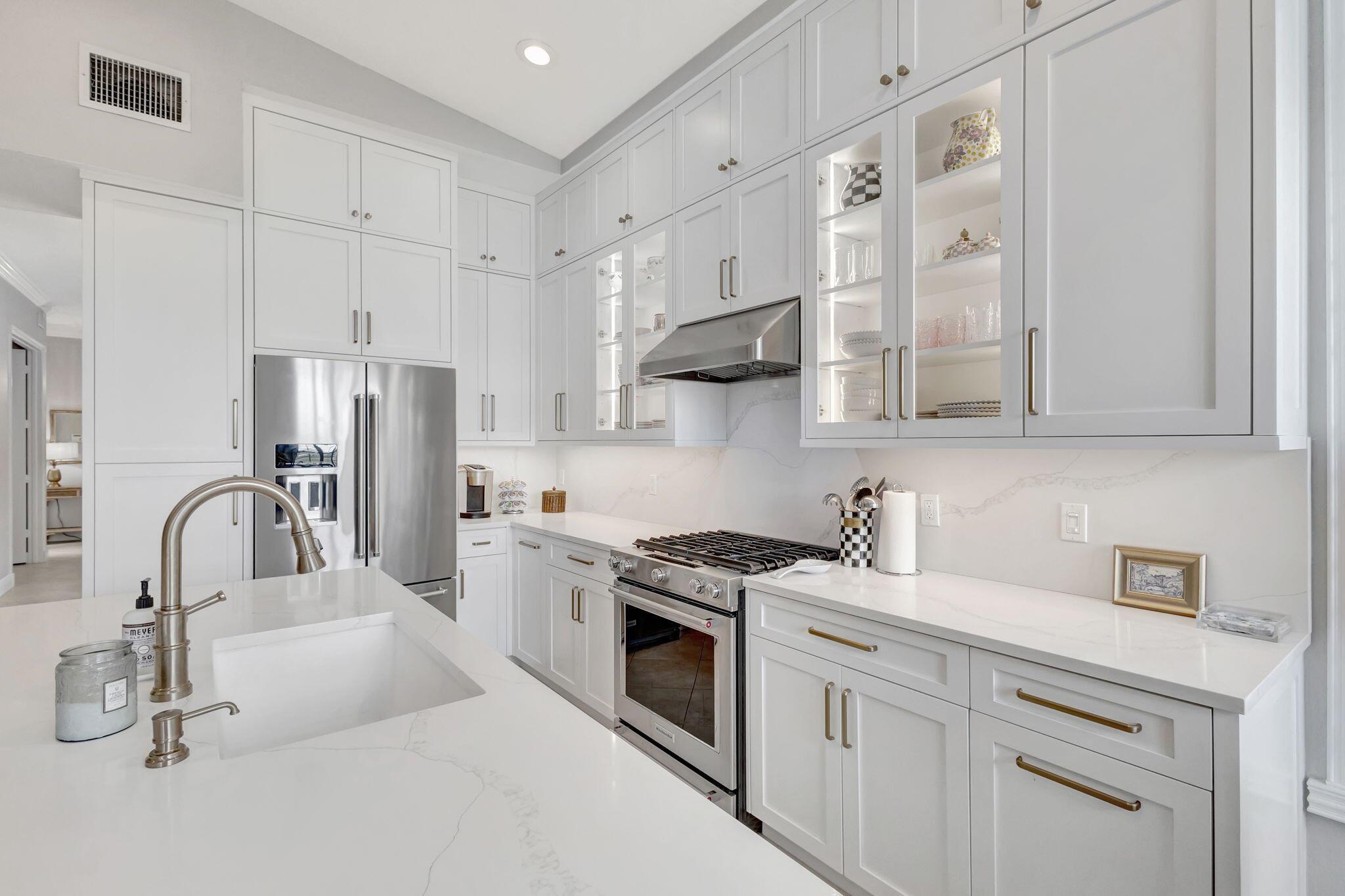 Nestled within the prestigious, guard-gated enclave of Mirabella, this exquisitely upgraded residence offers four spacious bedrooms plus a versatile den--ideally positioned on the main level with an adjacent full bath, easily convertible to a fifth bedroom--encompassing over 3,270 square feet of elegantly appointed living space tailored to today's discerning buyer. A grand two-story layout combines timeless architectural details with sophisticated, contemporary renovations, creating a home that is both inviting and impressive. The heart of the home is a fully reimagined gourmet kitchen, completed in late 2022. No detail was overlooked--from custom cabinetry and premium KitchenAid appliances to soft under-cabinet lighting and striking glass-front cabinets with illuminated interiors.