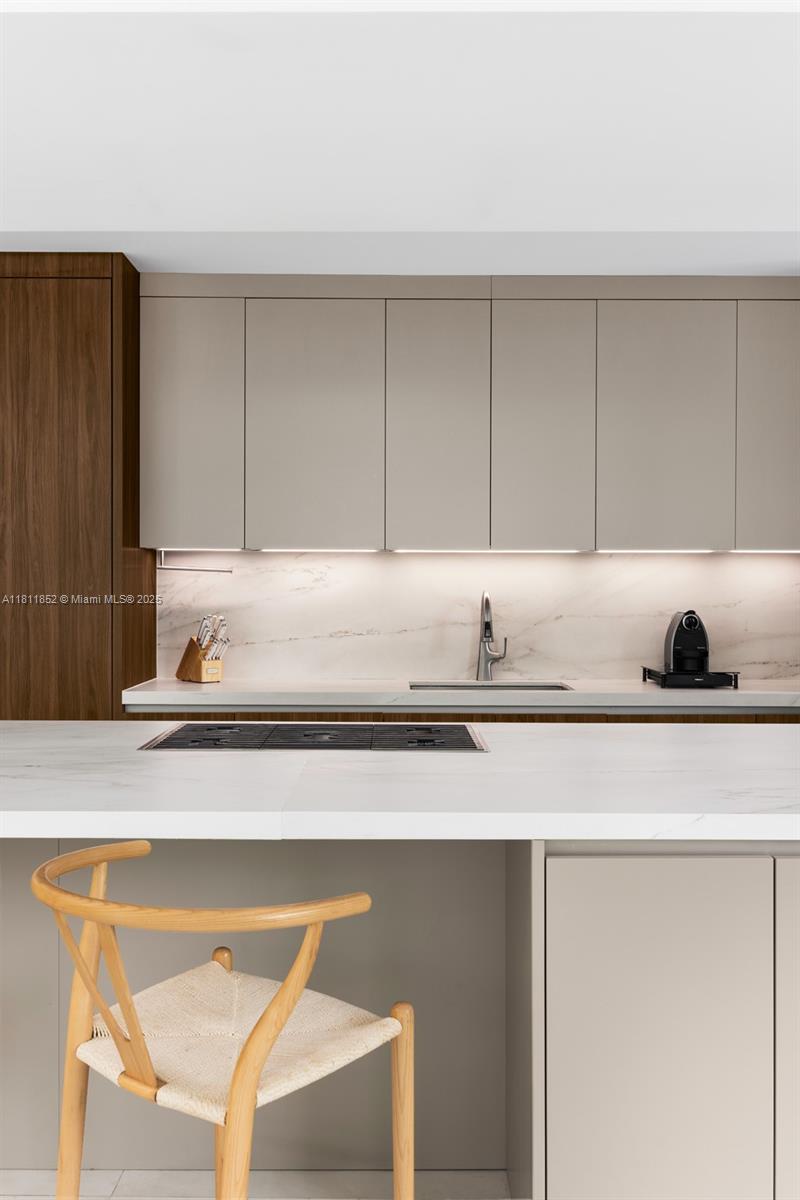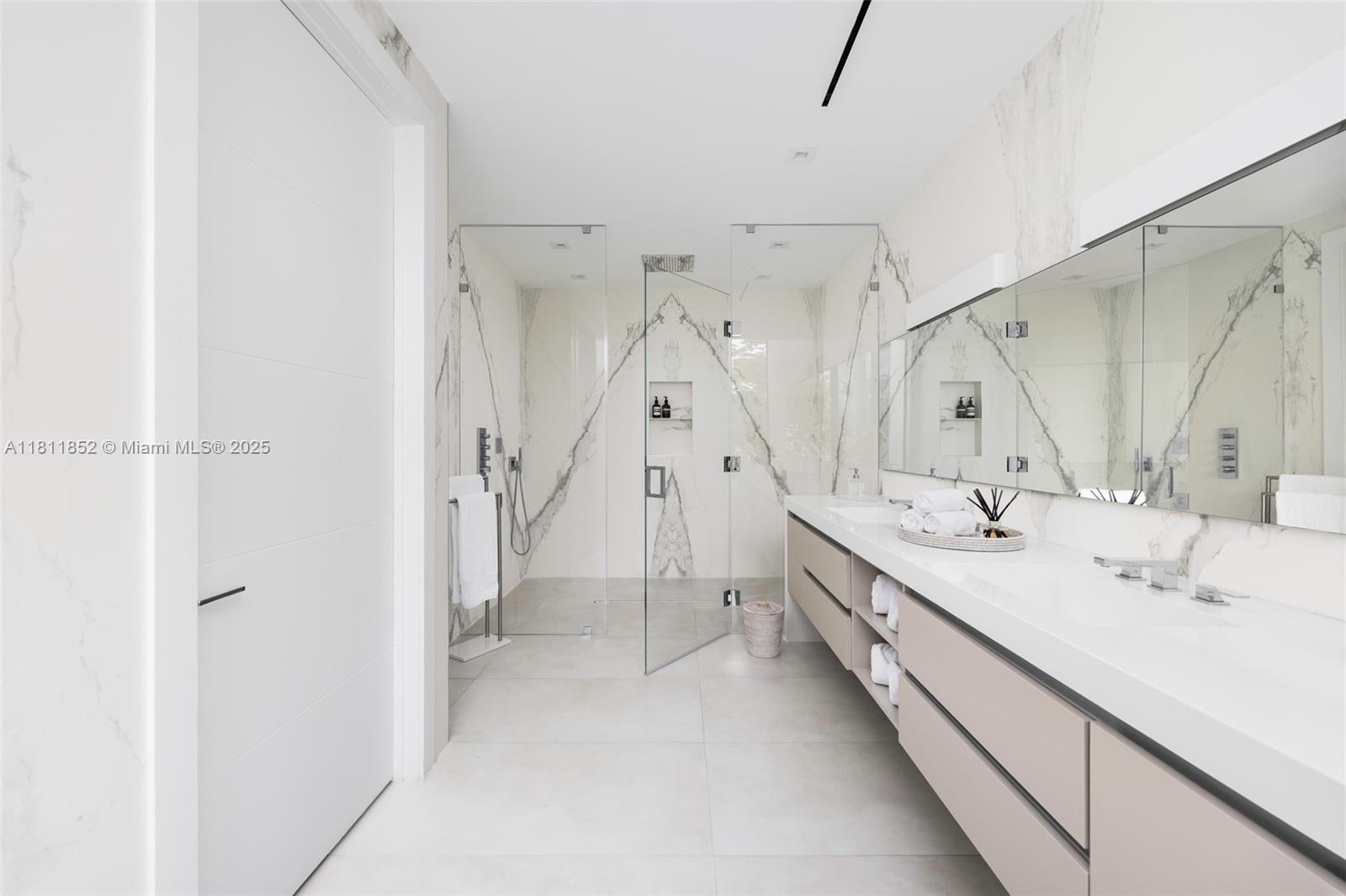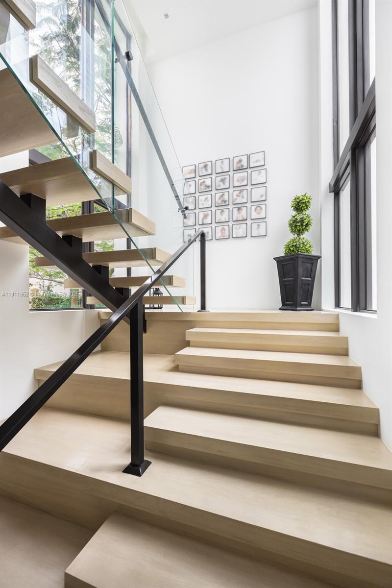 Exquisite 2022 built home is a 4,062 sq ft designer tropical retreat, nestled on prestigious Pine Tree Drive in Miami Beach. A short distance to beaches, world-class dining, and elite shopping. This resort style 5 beds, 5.5 baths residence offers a private pool, heated spa, and rooftop terrace. Spacious open layout with dramatic 10–22 ft ceilings, sleek Italian flooring, linear air diffusers, and impact-rated glass windows and doors. Gourmet Italkraft kitchen features Consentino countertops, Sub-Zero appliances, and premium gas cooktop. Outdoor kitchen has gas BBQ, shower, and lush landscaping. Floating oak staircase leads to expansive bedrooms with en-suite baths. This home features custom vanities and premium Hansgrohe-Axor fixtures. A sophisticated sanctuary in the heart of Miami Beach.