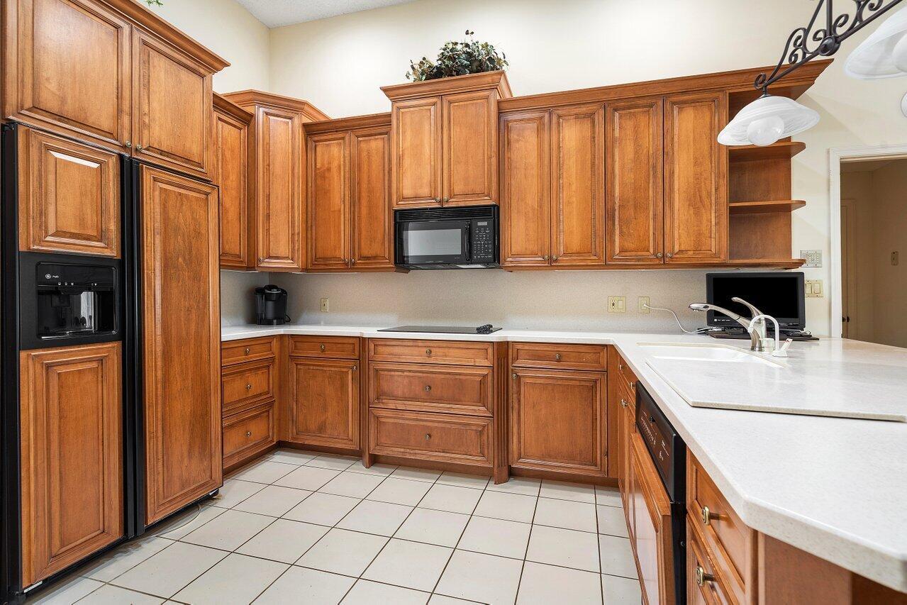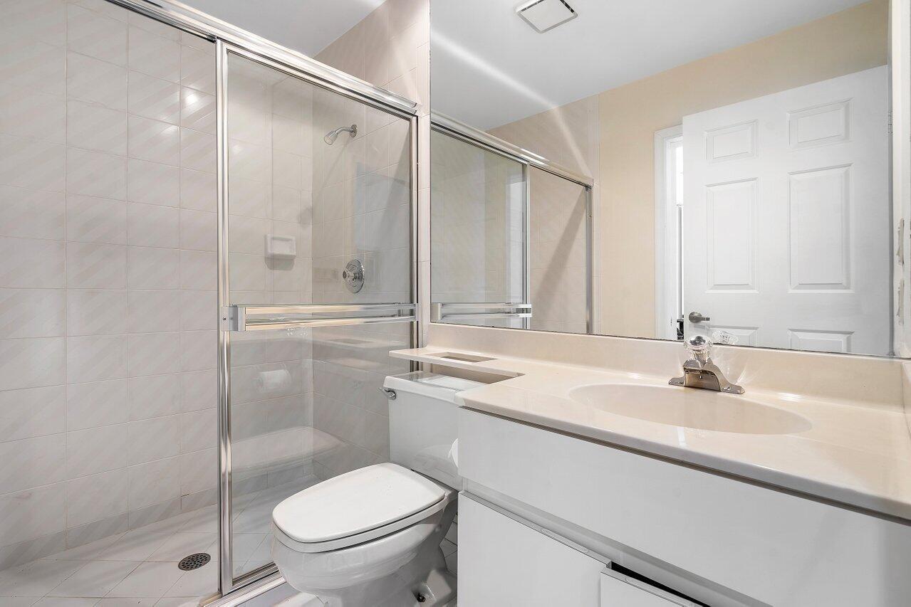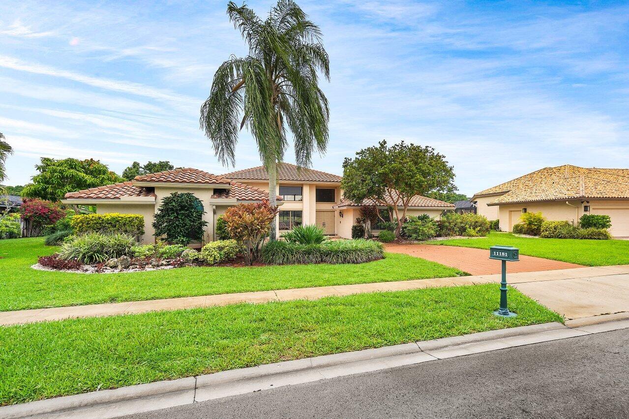 Spectacular golf course views from this 2-bedroom, 3.5-bath home featuring two expansive primary suites and a versatile office/den that can easily serve as a third bedroom. The open-concept layout boasts soaring 16-ft ceilings and dramatic double-height windows, flooding the home with natural light. Additional features include a separate golf cart entrance, two-car garage, laundry room, and a generous lot with mature fruit trees and panoramic fairway views. Roof replaced in 2018. Boca Woods Country Club Community offers resort style amenities, including two championship golf courses, Har Tru tennis courts, pickleball courts, state of the art fitness center, spa, game room, fully renovated clubhouse with fine dining and much more! Mandatory Country Club membership required $120,000.