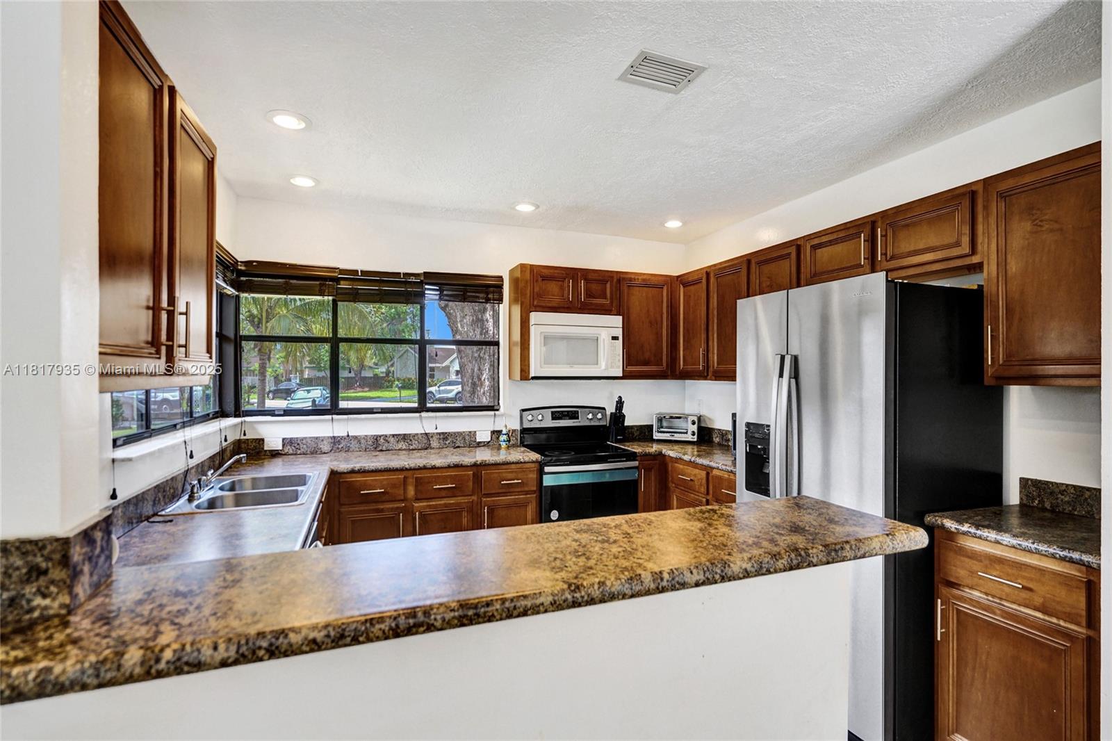 Culdesac living in Coral Springs with No HOA! New Roof 2025! Enjoy a large fully fenced yard with room for a pool!, 3 sets of sliding doors from the family room, living room & owners room that lead to a patios—perfect for entertaining! Split bedroom design. Updated kitchen with stainless steel appliances, remodeled baths, newer washer/dryer and new A/C in 2020. Features include well-fed sprinkler system, tinted windows, 5 ceiling fans, and 2-car garage with interior laundry and storage. Great location for commuting! A Must See in northwest Coral Springs!