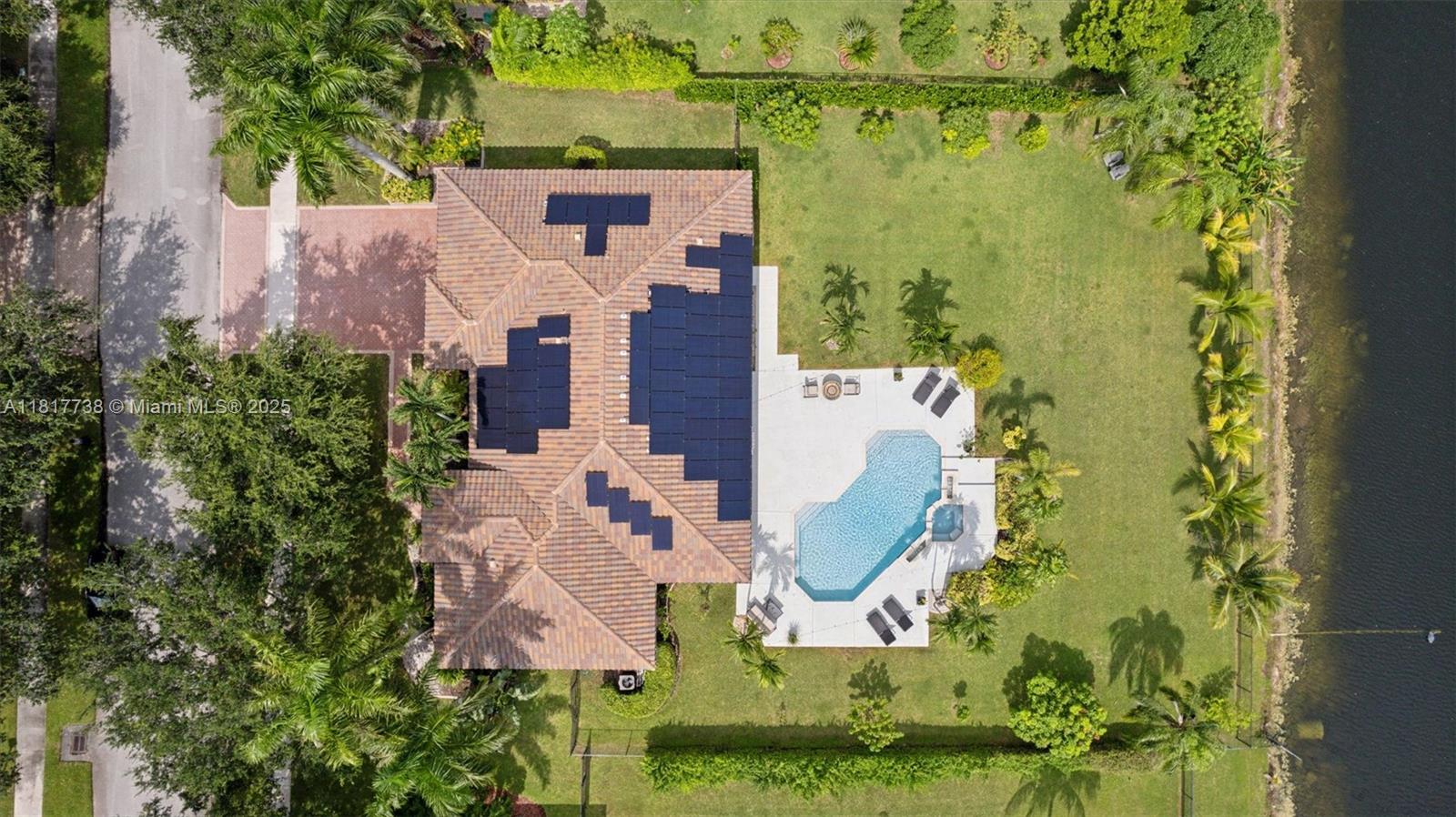 Take advantage of this AMAZING DEAL! Stunning updated self-powered 4BR/3BA/3-CAR garage smart home on a fenced builder’s acre lot, featuring serene lake views and breathtaking sunsets. SOLAR PANELS and high-power TESLA BATTERY system ensure energy efficiency and hurricane readiness. Over $250K in upgrades include a NEW ROOF, IMPACT WINDOWS, and new pool heater, offering significant savings. The open floor plan boasts high ceilings, Plantation shutters, hardwood floors, and natural light. The kitchen features espresso cabinets, granite countertops and a walk-in pantry. The main suite overlooks a resort-style SALT-WATER POOL w/custom lighting. Perfect for those who appreciate beautiful sunsets, modern technology & entertaining. Low HOA fee. 24-hour guard gate. BEST DEAL IN IMAGINATIONS FARMS