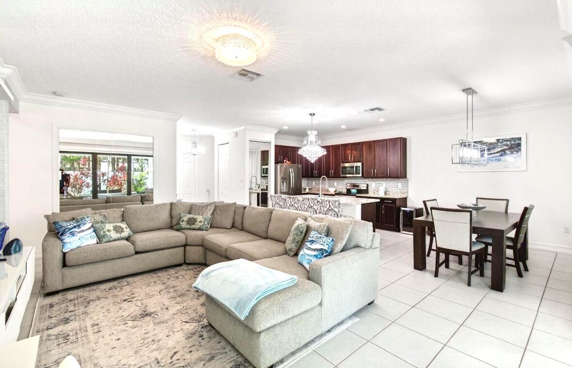 Former Snowbird's Single Family Home-Meticulously Maintained-Effortlessly Blends Warm Classic Design & Inviting Modern Touches-Welcoming Foyer Leads to a Spacious, Open Floor Plan Filled with Natural Light from Large Impact Windows, Overlooking a Private, Extended Patio with a Tropical Garden-Every Detail in the Home has been Thoughtfully Curated Boasting Crown Molding, Elegant Fixtures, Plantation Shutters & Electric Blinds, Wood Kitchen Cabinets, Stainless Steel Appliances, Granite Countertops & Large Island with a Cozy Breakfast Bar-The First Floor also Features a Bright & Airy Guest Room & Bathroom-While the Upstairs Offers an Bonus Loft Space that's highly Versatile & Additional Rooms that Show like a Model-Chic Primary Room with an Enormous Custom Built-in Closet-Two More Bathrooms