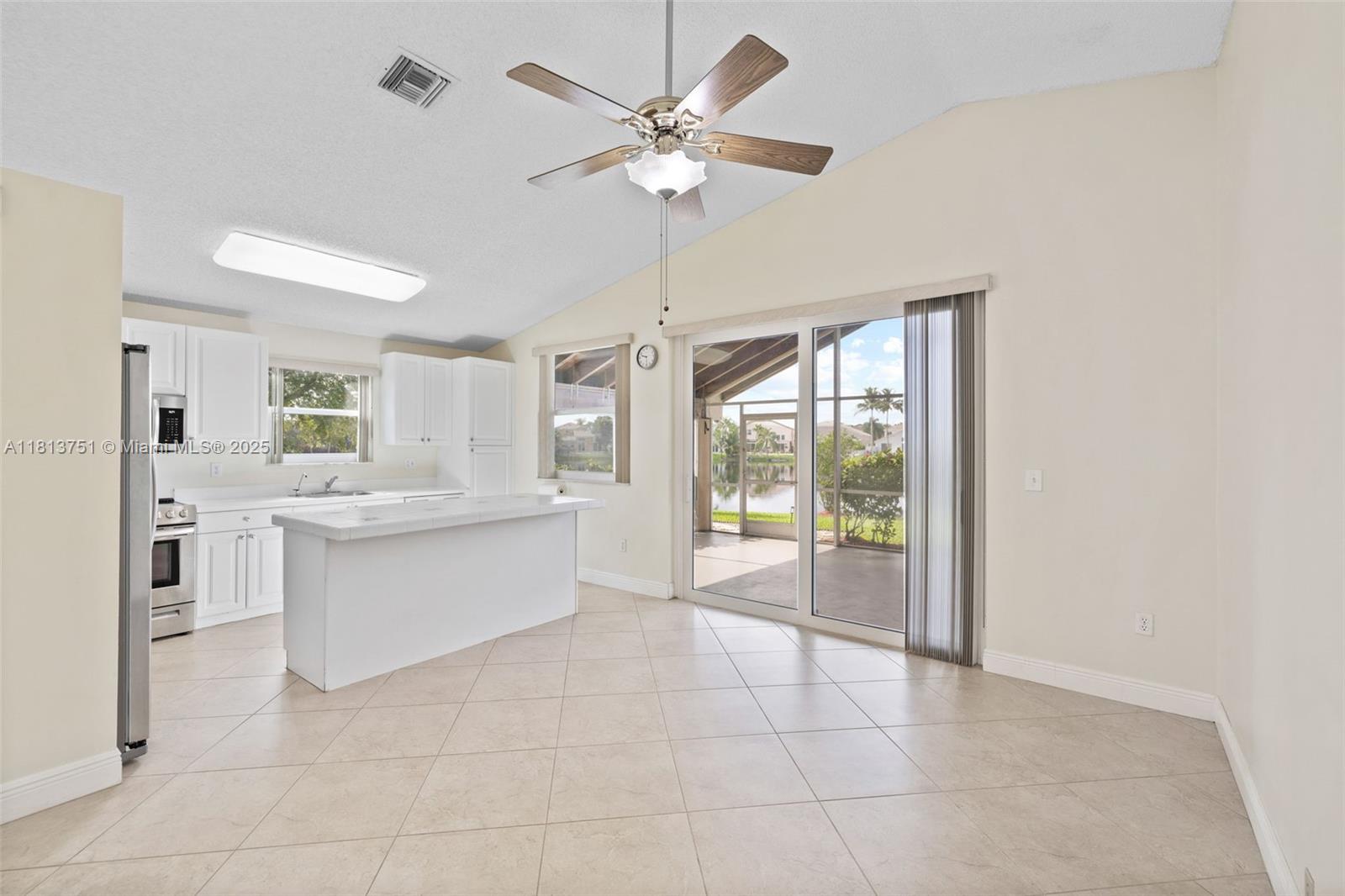 Welcome to this beautifully maintained home in a gated community, offering privacy, space, and stunning views! Set on an 8,000+ sq ft lot with 90 feet of lake frontage, this property blends natural beauty with modern convenience. Enjoy a NEW ROOF, impact windows and doors, impact garage door, and a NEW 4-ton A/C. The screened patio provides serene lake views and can be converted into a living area extension or outdoor kitchen. Recent upgrades also include a NEW fence, garage door opener, and sprinkler motor. The kitchen features stainless steel appliances, and the yard includes mango, ackee, avocado, and loquat trees—a true tropical treat! Located in a well-maintained community, just a short walk to the pool, this home offers style, space, and flexibility. Don’t miss your opportunity!