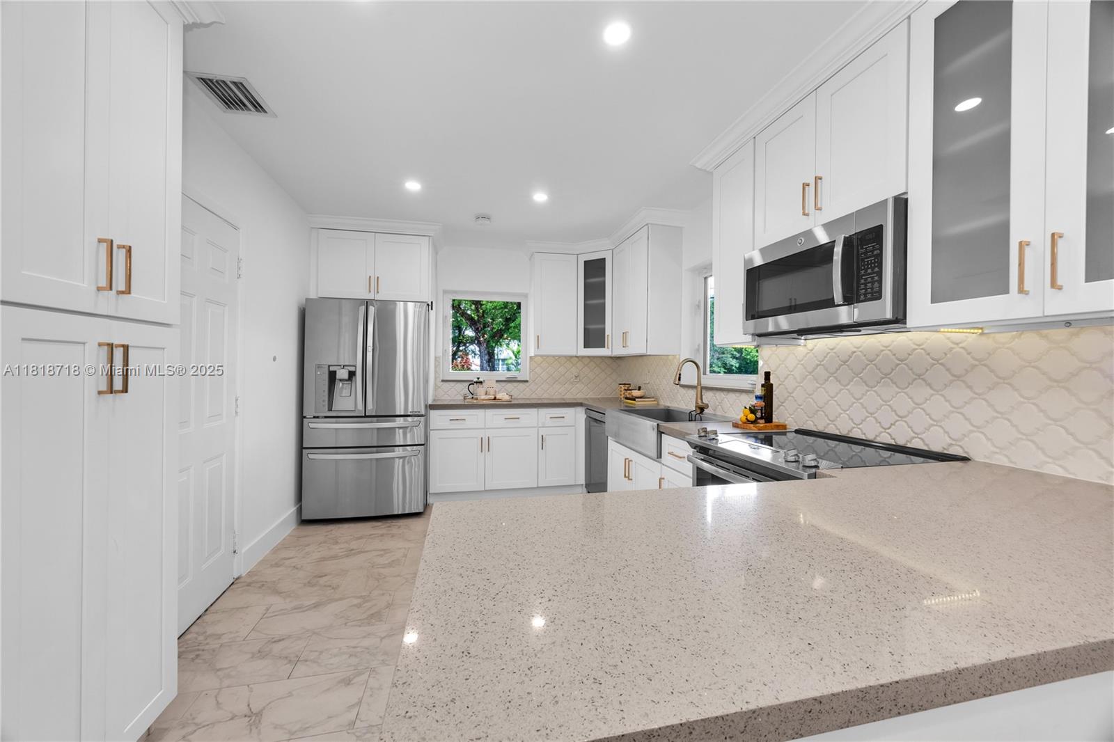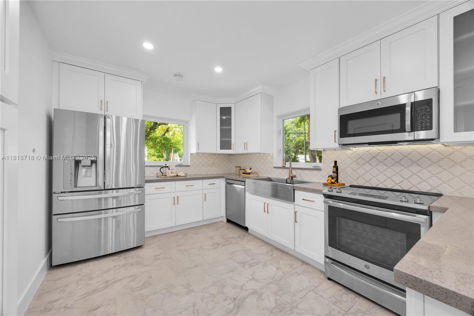 Ideally located near the Coral Gables Country Club, Granada Golf Course, and downtown Coral Gables, this updated one-story home offers 1,537 SF of living space on a 5,350 SF lot. Completely renovated in 2020, it features 3 sunny bedrooms and 2 sleek, modern bathrooms. The open floorplan provides sightlines from the stylish kitchen to the bright living and dining areas. Additional highlights include new appliances, rich wood floors, impact windows and doors, updated plumbing, AC, electric panel, and more. A 1-car garage with epoxy flooring completes this turnkey gem in one of Coral Gables’ most desirable neighborhoods.