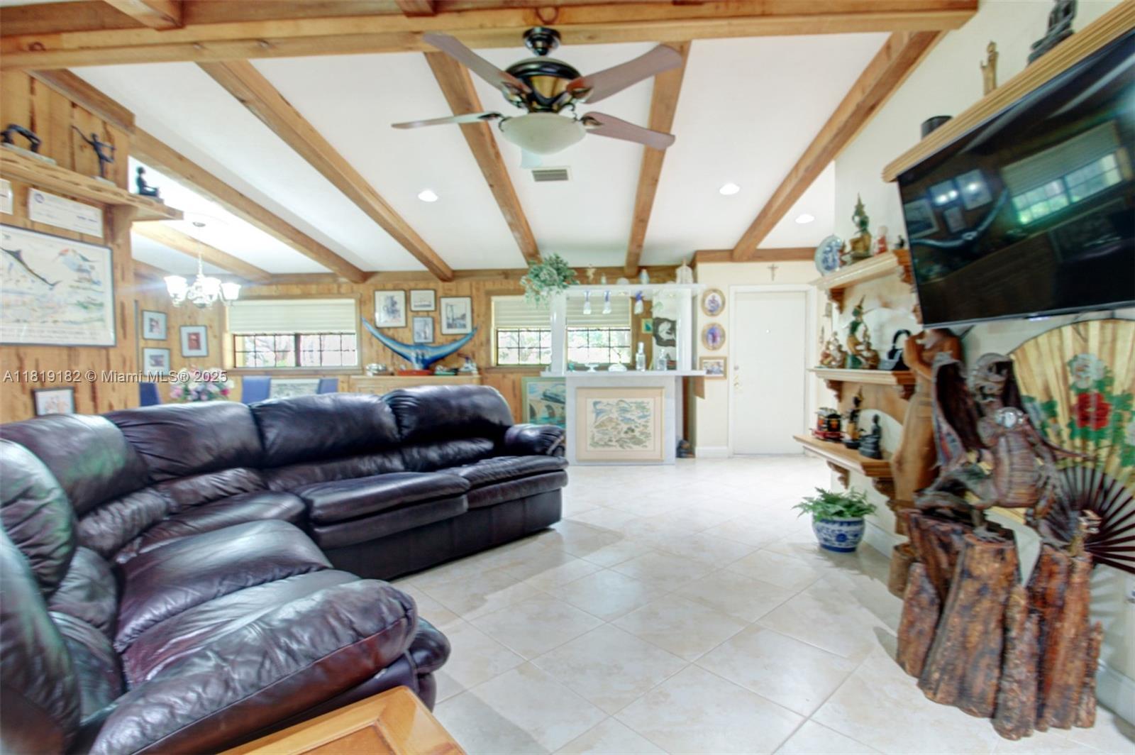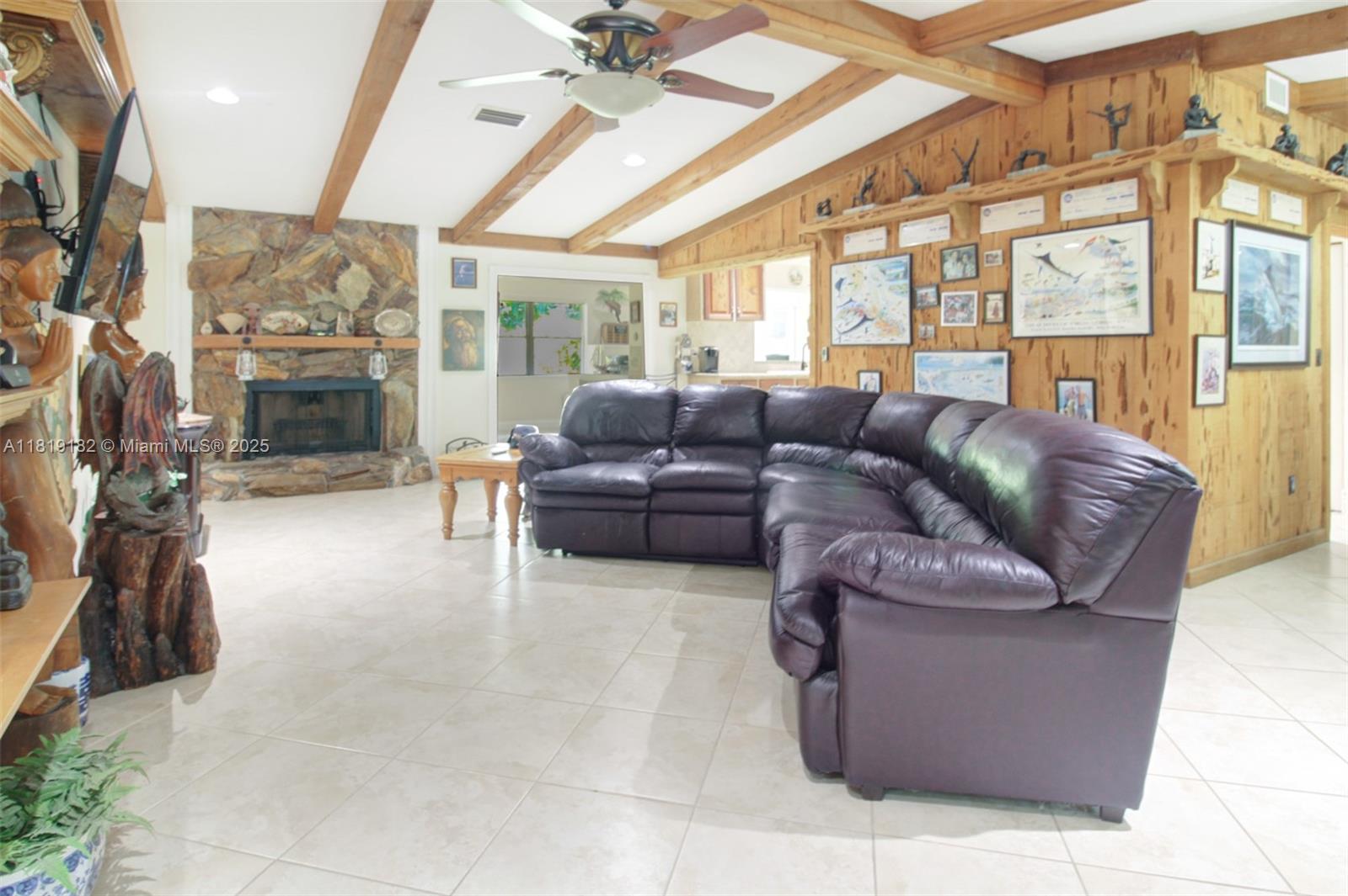 Rare find in Davie, FL—spacious 3-bed, 2-bath ranch-style home on a full acre of private, tropical land. With 2,317 sq ft under roof (including 2-car garage), this property offers an open floor plan, vaulted ceilings, a stone fireplace, large kitchen, Florida room, and a generous master suite with walk-in shower and Jacuzzi tub. Ideal for families needing space to grow or investors seeking land value and long-term upside. Located in a peaceful, equestrian-style neighborhood with no HOA, just minutes from major highways and top-rated schools. Includes 3 AC units, hurricane shutters, and a whole-home generator. Room to expand, room to breathe—don’t miss this one-acre opportunity!