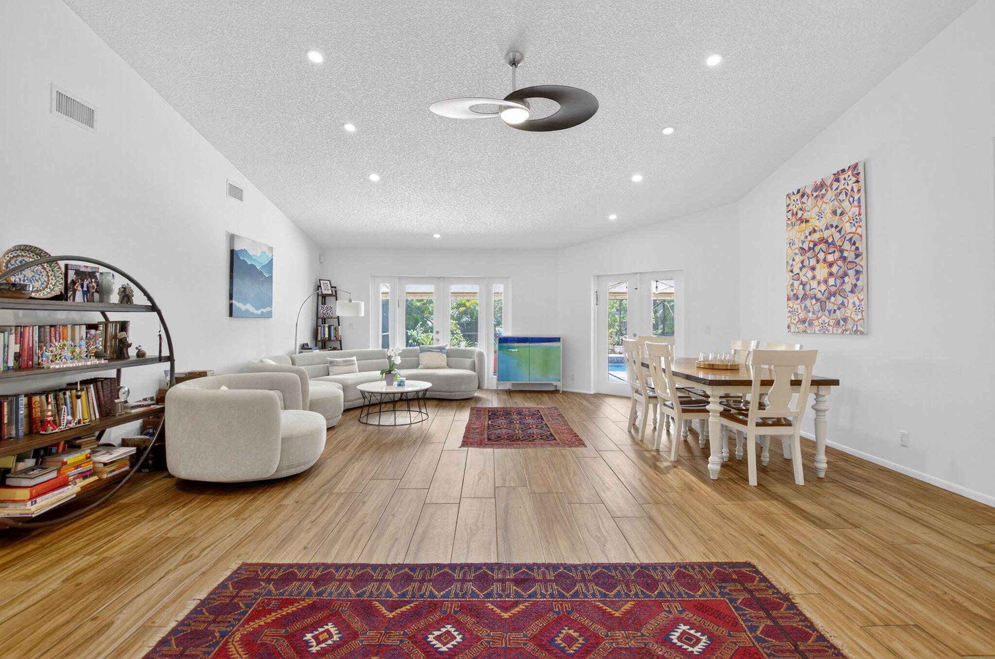 Stunning 3BR 2B + bonus home office/home gym, screen enclosed pool home sits on a 1/4-acre pie shaped fenced cul-de-sac lot. Lush tropical landscaping with many fruit trees. Pool with heated spa,Inground propane tank which can be used to power a generator. Exterior recently painted. Impact windows & multiple French doors that fill the house with natural light. New ceramic tile throughout living area to look like wood. Newer refrigerator, dishwasher & range w/double oven. A/C 3 yrs old. Large walk-in pantry for extra storage space. . Pull-down stairs for attic access which has been sprayed with extra insulation. Roof has been treated with a coating for longer sustainability.