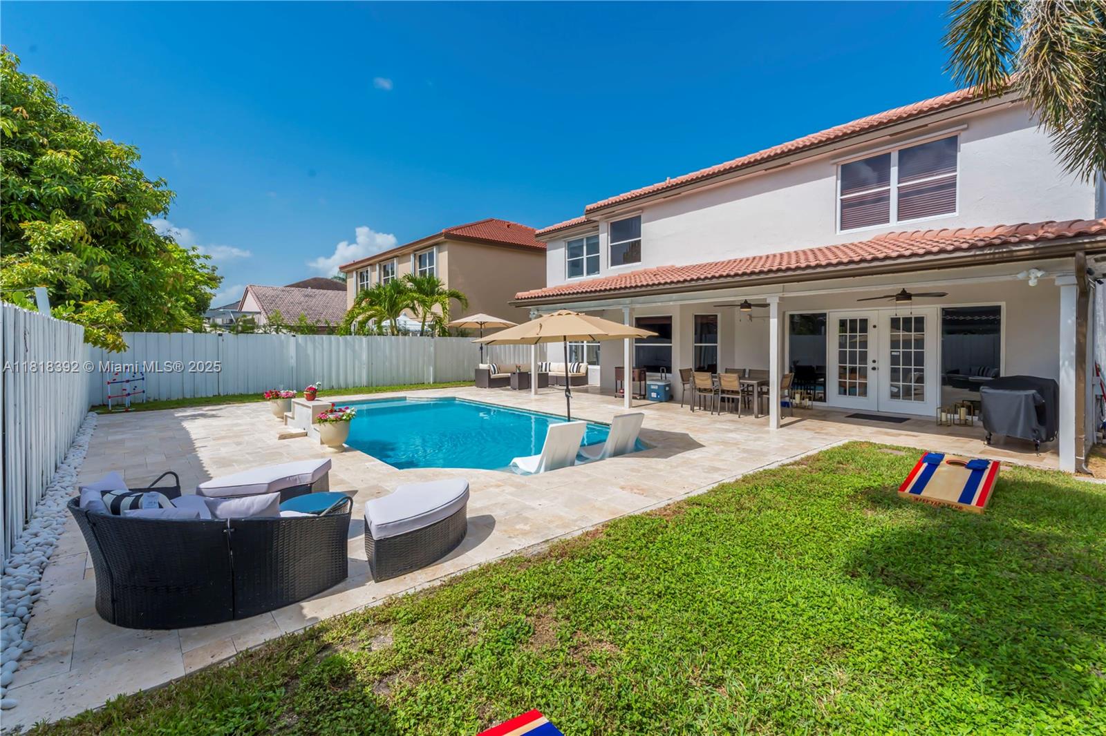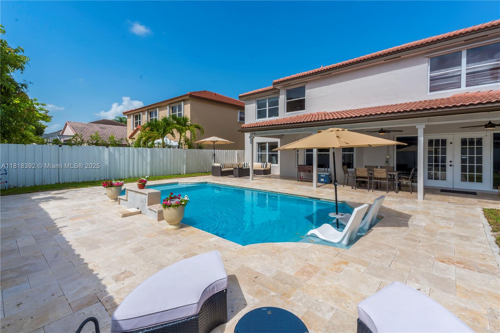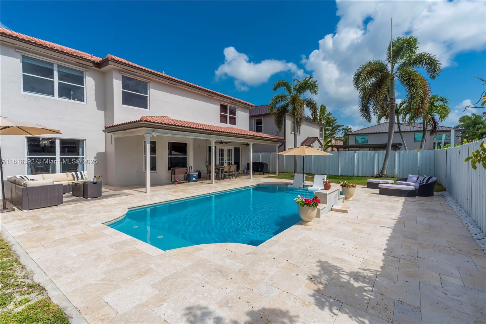 Welcome to this beautifully maintained 5-bedroom, 3-bathroom single-family home located in the sought-after gated community of Silver Lakes. This spacious two-story residence offers a functional floor plan with a full bedroom and bathroom on the first floor, perfect for guests or a home office. Enjoy outdoor living with a recently resurfaced pool and brand-new paver patio, ideal for entertaining. The fenced backyard adds privacy and is great for kids or pets. Additional features include a 2-car garage, tile flooring, wood flooring upstairs, and plenty of natural light throughout.