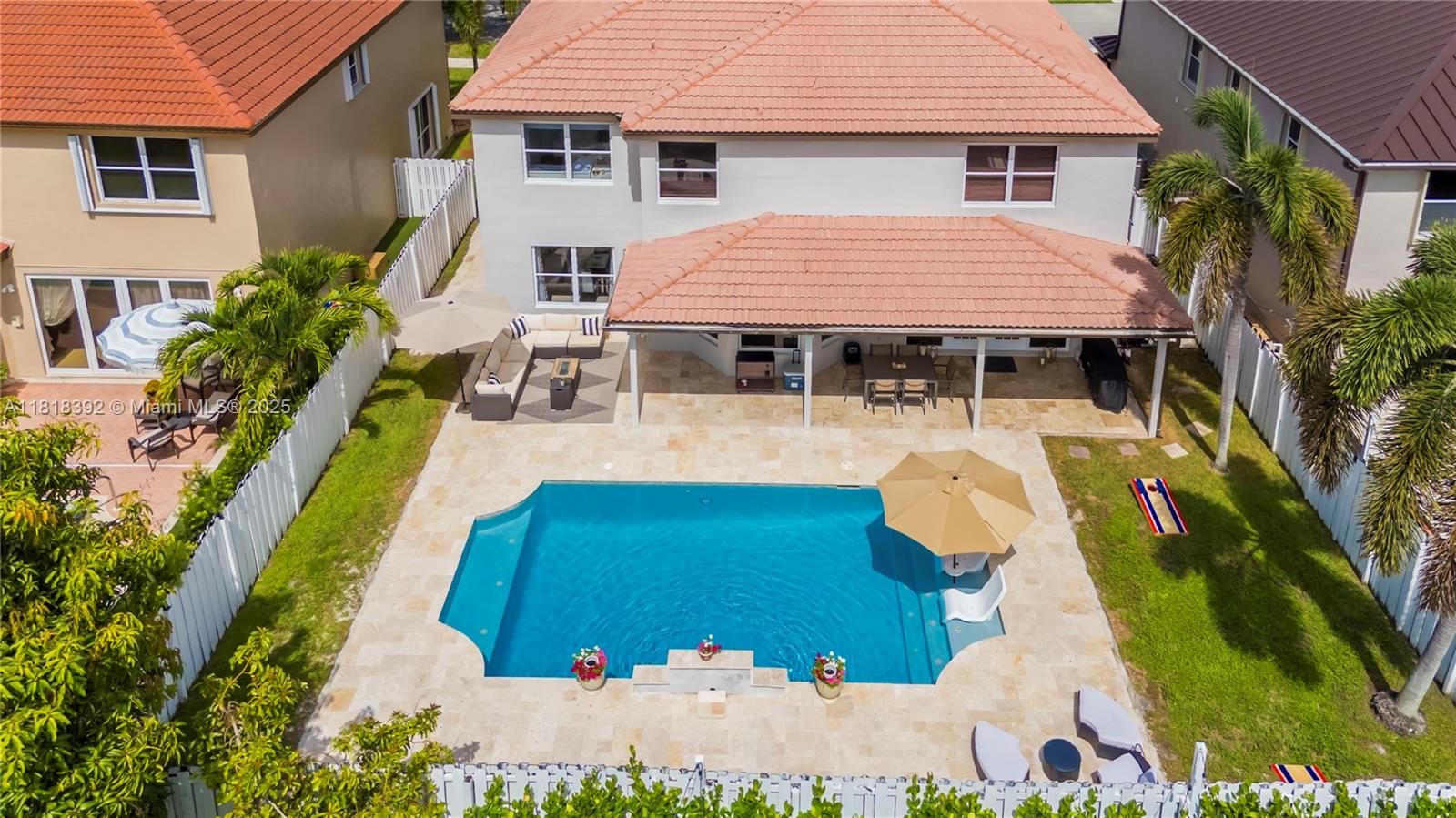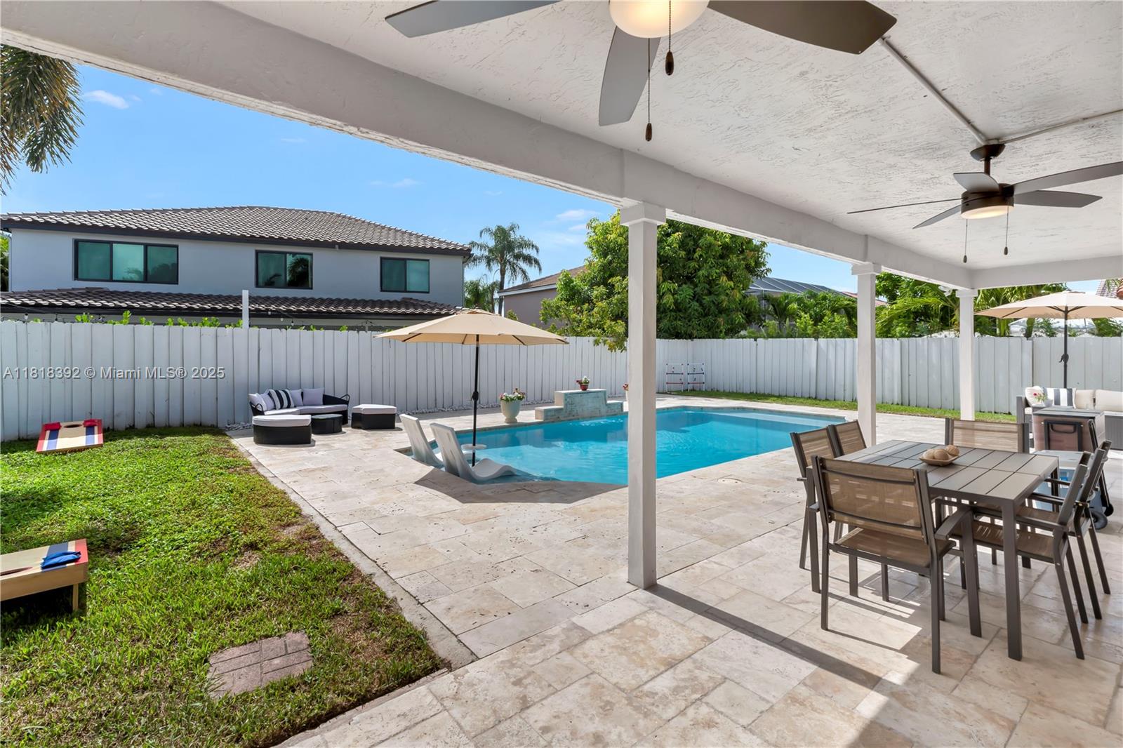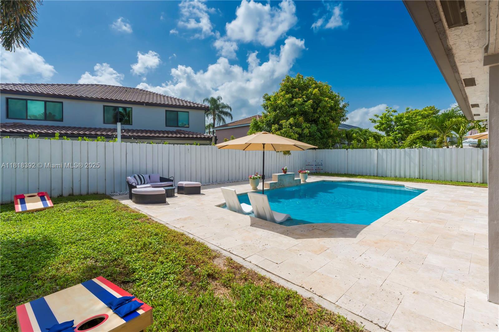 Welcome to this beautifully maintained 5-bedroom, 3-bathroom single-family home located in the sought-after gated community of Silver Lakes. This spacious two-story residence offers a functional floor plan with a full bedroom and bathroom on the first floor, perfect for guests or a home office. Enjoy outdoor living with a recently resurfaced pool and brand-new paver patio, ideal for entertaining. The fenced backyard adds privacy and is great for kids or pets. Additional features include a 2-car garage, tile flooring, wood flooring upstairs, and plenty of natural light throughout.