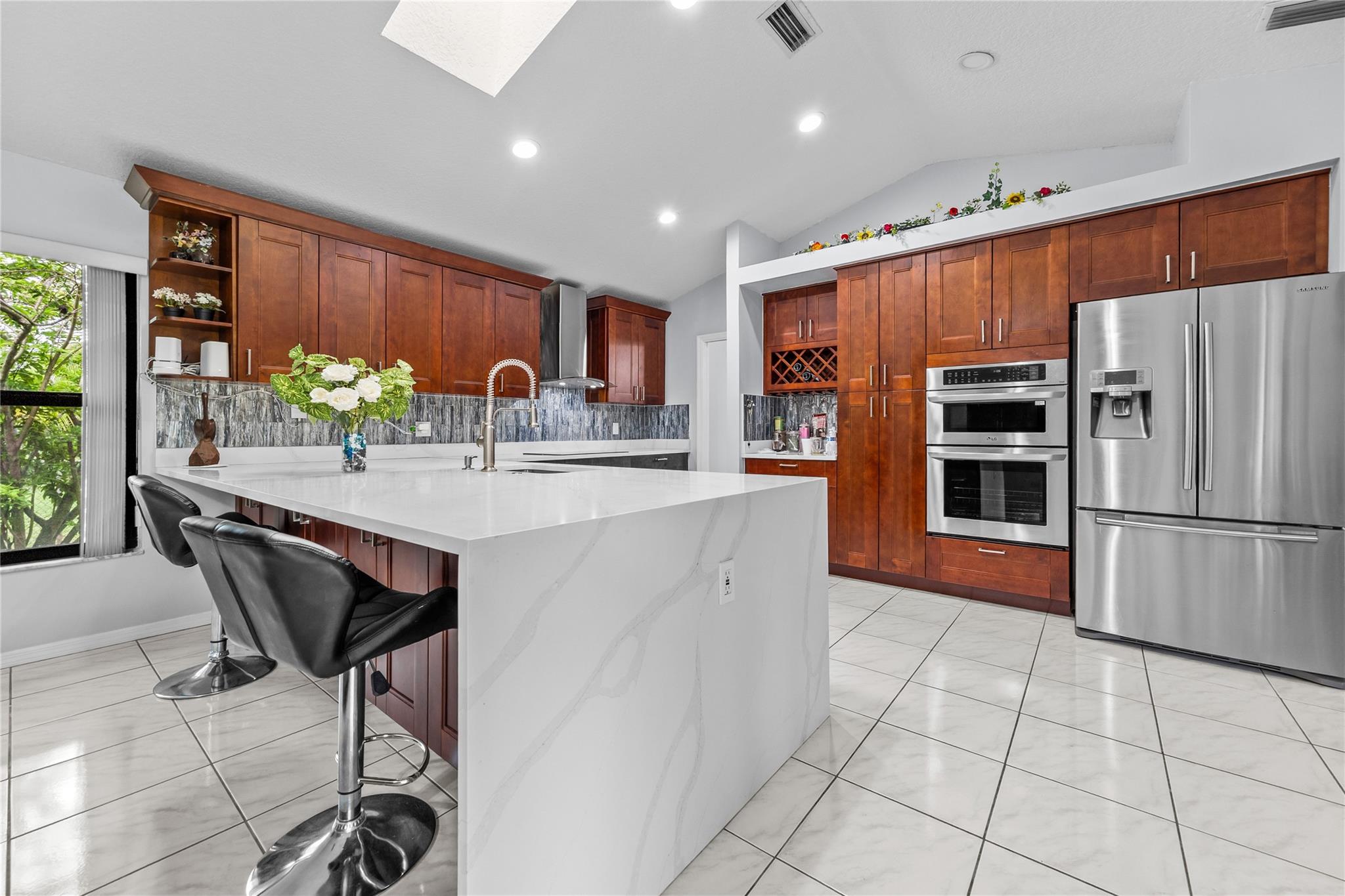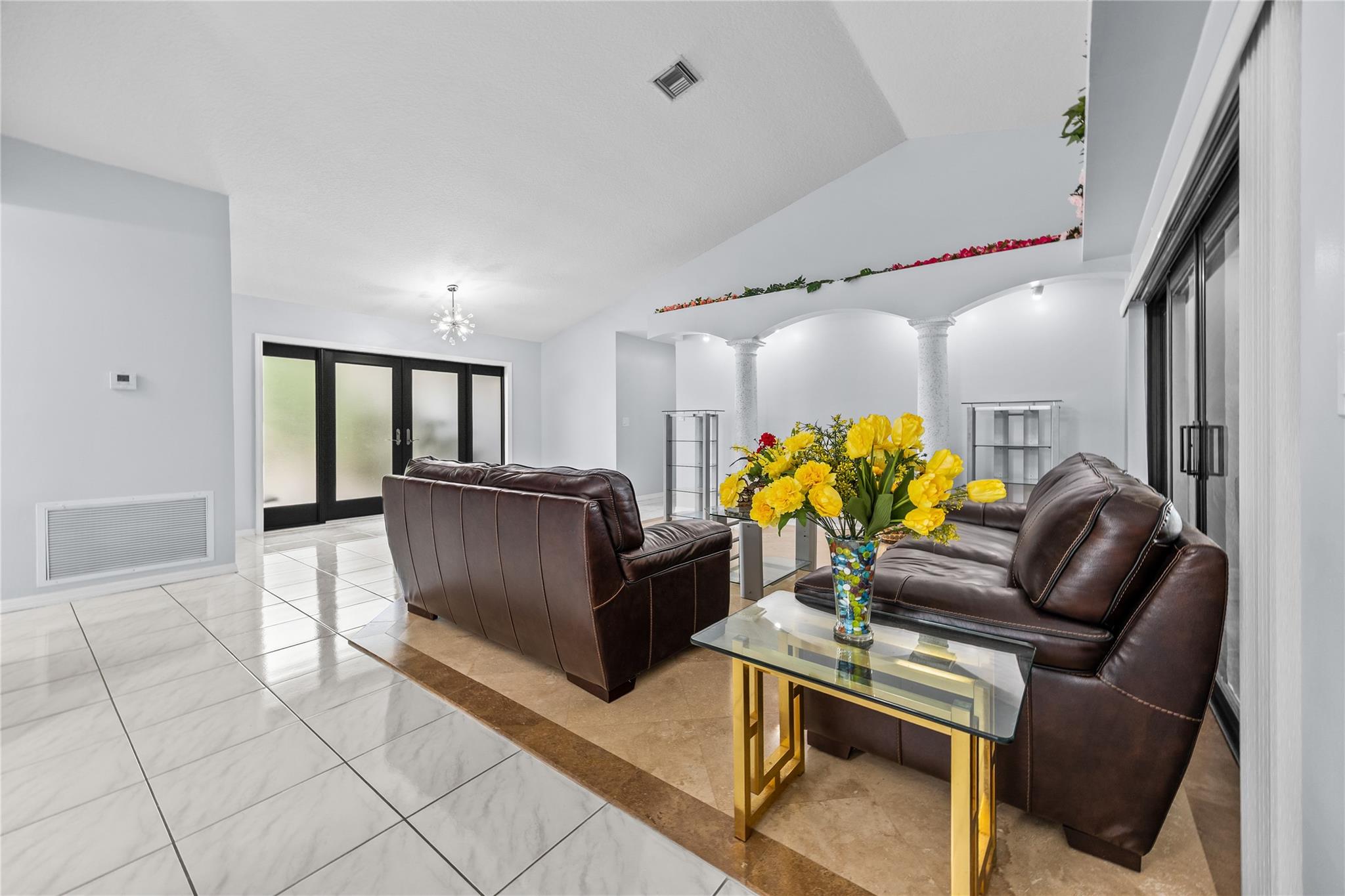Step into luxury with this beautifully renovated, modern one-story home offering 4 spacious bedrooms, 2.5 designer bathrooms and 2,566 sqft of living space located on a large 14,498 sq ft corner lot in a quiet cul-de-sac in the NO HOA Crossings community of Coral Springs. This home features a bright, open layout with vaulted ceilings, large living and dining areas, and oversized bedrooms throughout. Fully remodeled kitchen with modern cabinetry, ample counter space, and stainless steel appliances. This residence is move-in ready with NEW insulated impact windows and doors , an impact garage door, NEW AC unit, Water heater and Roof with lots of life. Enjoy great water views from your backyard oasis, complete with lush fruit trees and ample space to add your dream pool. This home has it all.
