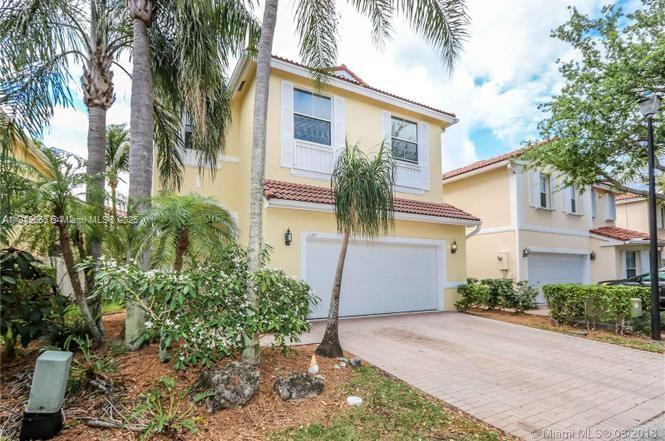 THIS 4/2.5 +LOFT SINGLE FAMILY HOME HAS A LARGE 2 CAR GARAGE IN A 24 HOUR GATED COMMUNITY JUST 1 MILE FROM THE OCEAN. BIG KITCHEN WITH TONS OF CABINETS AND STAINLESS STEEL APPLIANCES THAT OPENS UP TO THE FAMILY ROOM OR CAN BE A HUGE DINING AREA. ACCESS TO THE PRIVATE BRICK PAVED PATIO AREA FROM BOTH THE FAMILY ROOM AND LIVING ROOM. HIGH CEILINGS THROUGHOUT. TILE DOWNSTAIRS, AND WOOD UPSTAIRS. A/C 3-4 YEARS & NEW WATER HEATER. TESLA CHARGER INSTALLED. AMENITIES INCL TENNIS, SWIMMING, EXERCISE ROOM, CLUBHOUSE, AND KIDS PLAY AREA