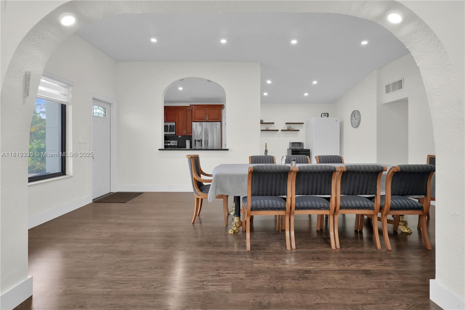 Spacious and full of charm, this beautifully maintained home features 5 generously sized bedrooms and 3 full bathrooms, including a luxurious master suite with a private jacuzzi. The updated kitchen opens into a large dining area with stunning cathedral ceilings—perfect for entertaining. A separate living room and dedicated laundry room add to the functionality. Enjoy a 6,000 sq ft lot with a circular driveway for ample parking. Located just minutes from I-95 and within walking distance to houses of worship, this property offers both comfort and convenience in the heart of North Miami Beach.