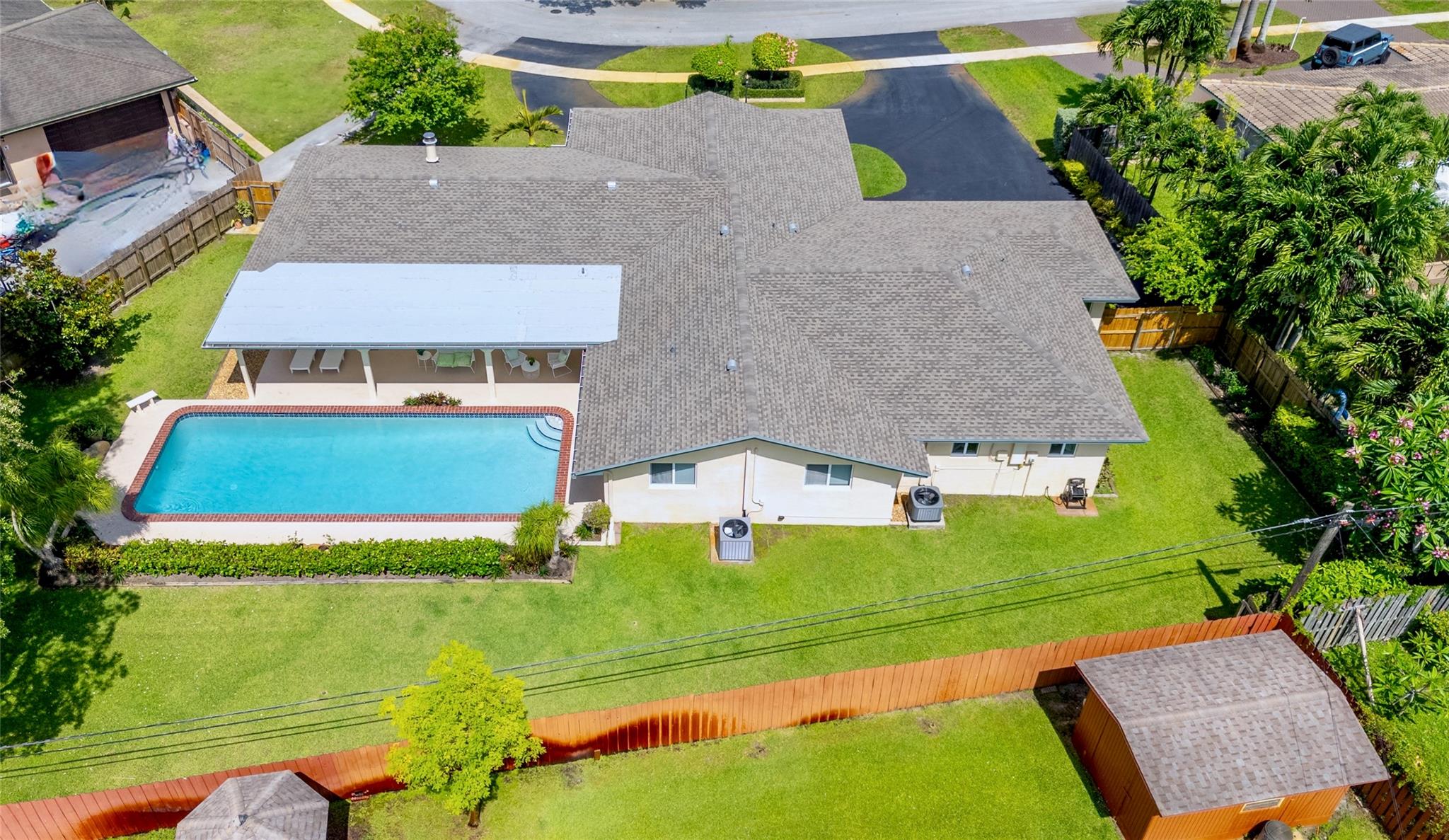 This is it! Home professionally expanded in 2012 w/ an 830sf addition complete w/ its own entrance (or blend with existing square footage) has its own family room,kitchen & primary room ideal for multigenerational living;this addition can adapt to your personal needs including quarters for in-laws, aupair, guest house,dual primary, etc. Huge 16,068sf lot w/ in ground pool & covered patio;new 2023 roof & flat roof w/ transferable warranty;2023 gutters;2022 new complete PVC sewer re-piping;impact windows;2016 fence;no popcorn ceilings;2019 vinyl plank flooring;2023 pool refinish &pump;2023 water heater;2023 resurfaced huge circular driveway;2024 new AC units; 2024 termite tent w/ warranty;bedroom #4 is currently used as a gym;garage is oversized at 598sf;Incredible landscape;no HOA;central