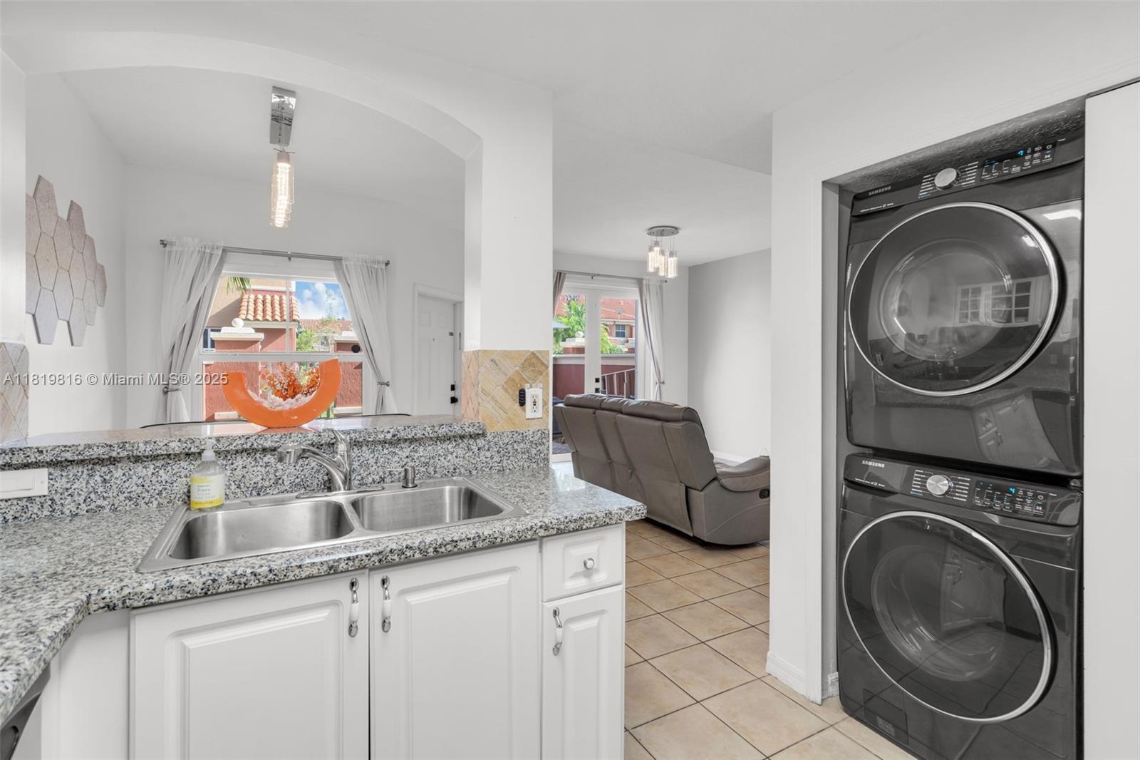 Spacious 2-story Condo/Townhome with private gate and charming oversized front porch/courtyard with pavers—perfect for outdoor living. IMPACT WINDOWS Features 2 bedrooms, 2.5 baths, tile & laminate wood floors, modern kitchen with stainless steel appliances, granite countertops & snack bar, plus full-size washer & dryer. NEW A/C units! 2-car maximum, ample guest parking. Enjoy community amenities: swimming pool, playground, interior park & more!