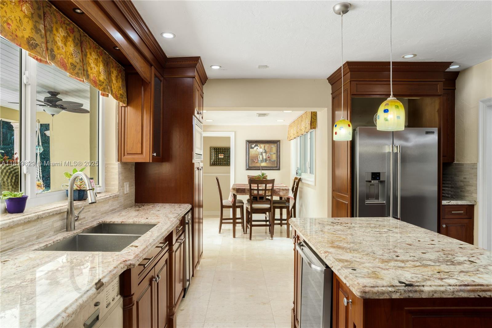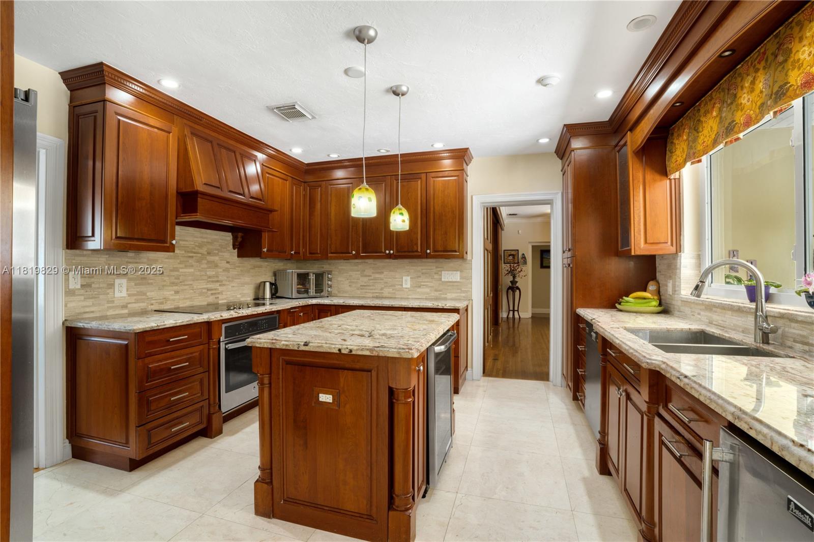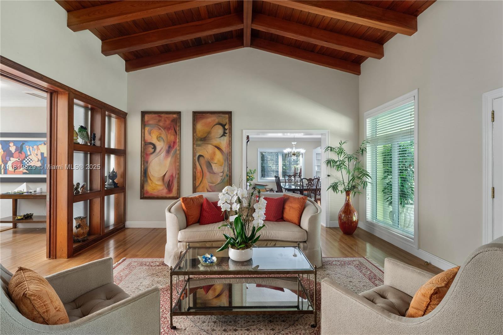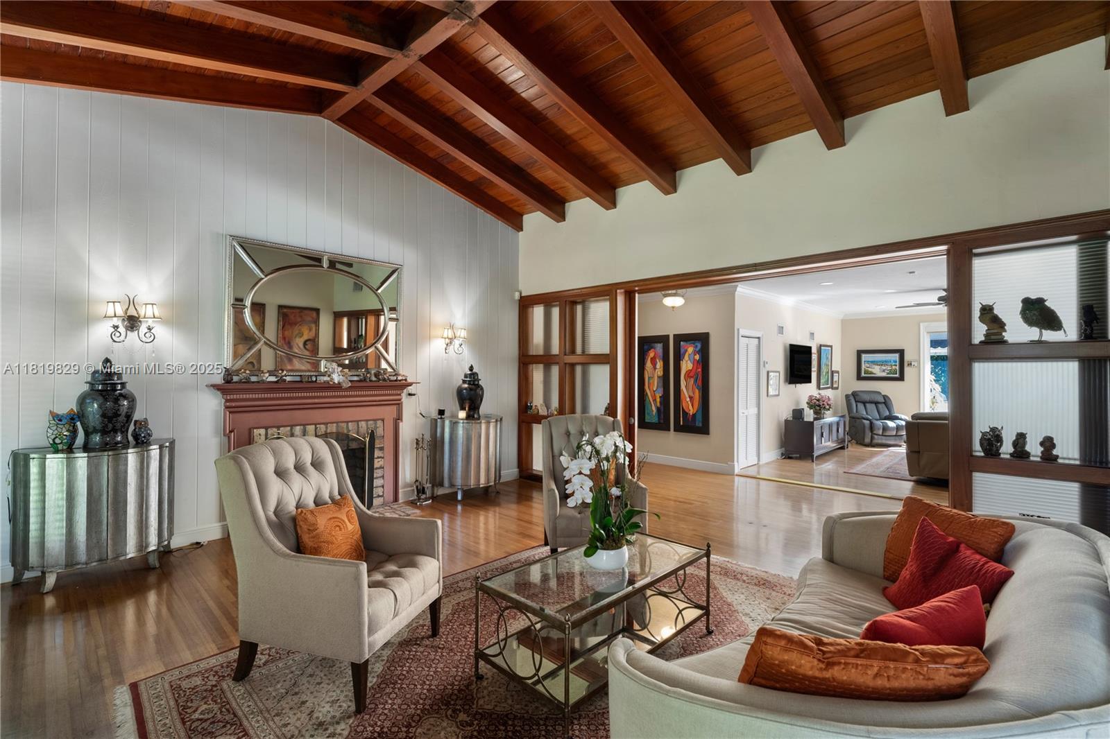 Situated on a double lot (18,000SF) across from the Biltmore Golf Course on Mariola Court, this exceptional home offers a blend of privacy and prime location on a peaceful street. Vaulted ceilings in the living room create an airy, open feel, while the expansive primary suite features a sitting area, two walk-in closets, double sinks, a soaking tub, and a spacious shower. Layout consists of the Primary Suite + 2 bedrooms, then 2 separate live-in quarters on service side of the home. Perfect for outdoor living, a private retreat with sparkling pool, a large covered terrace, and a detached gazebo with outdoor cooking. Impact windows and doors provide protection and efficiency, while a two-car garage adds convenience. A rare opportunity to enjoy Coral Gables living in a sought-after setting.