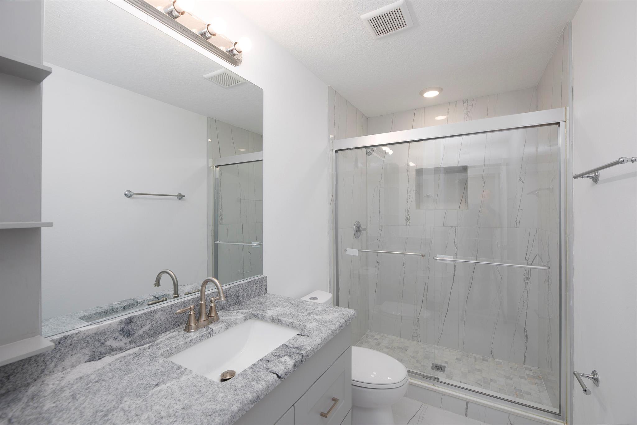 Completely remodeled from top to bottom, this stunning 4-bedroom, 4-bath with Den home features 3 full master suites, including a private guest room with its own bath. The gorgeous kitchen boasts modern finishes and stainless steel appliances. Beautiful flooring, elegant fixtures, and impact windows provide hurricane protection and energy efficiency. Located on a peaceful cul-de-sac with no HOA and no rear neighbors for true privacy. Just minutes from I-95, the Turnpike, beaches, top-rated schools, hospitals, colleges, restaurants, medical offices, and shopping. Move-in ready with a new 2024 roof, new water heater, and septic system. A rare find in a quiet, well-situated neighborhood--don't miss it!