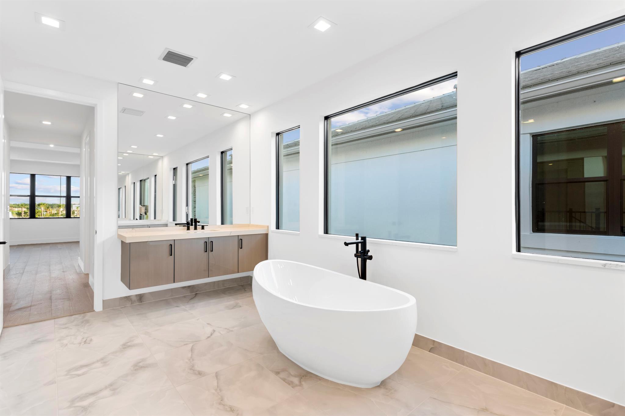 WOW! Over 560K worth of upgrades in this home! Large & spacious five-bedroom, five full bath, two half bath home featuring a 4-car garage with a POOL, situated in secure, manned gated community of Avenir! Brand new construction, ready to move in NOW & never lived in! Exceptional property located near cul-de-sac w/breathtaking lake views & privacy. Upgrades: extended veranda w/panoramic views, pool with spa, sun shelf & gas heater, electrical package C, level 5 wall & ceiling finish, solid core doors, Sub Zero & Wolf appliances, upgraded cabinets throughout, Frameless glass stair rail package, engineered wood & too many upgrades to name (ask for a list)! Entertainment Spaces: huge media room, office, & nicely sized game room. No builder closing costs!
